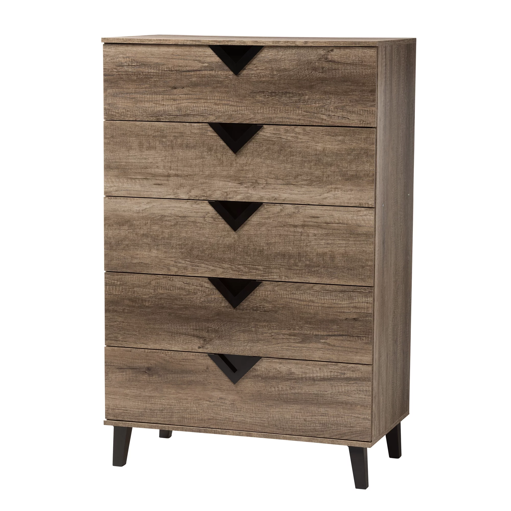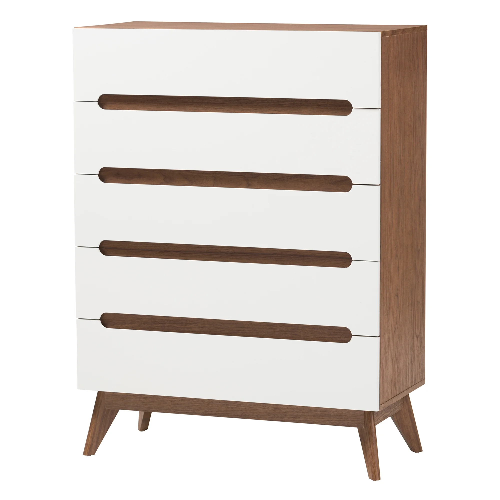 Baxton Studio Levron Brown and White Finished Wood 5-Drawer Storage Cabinet