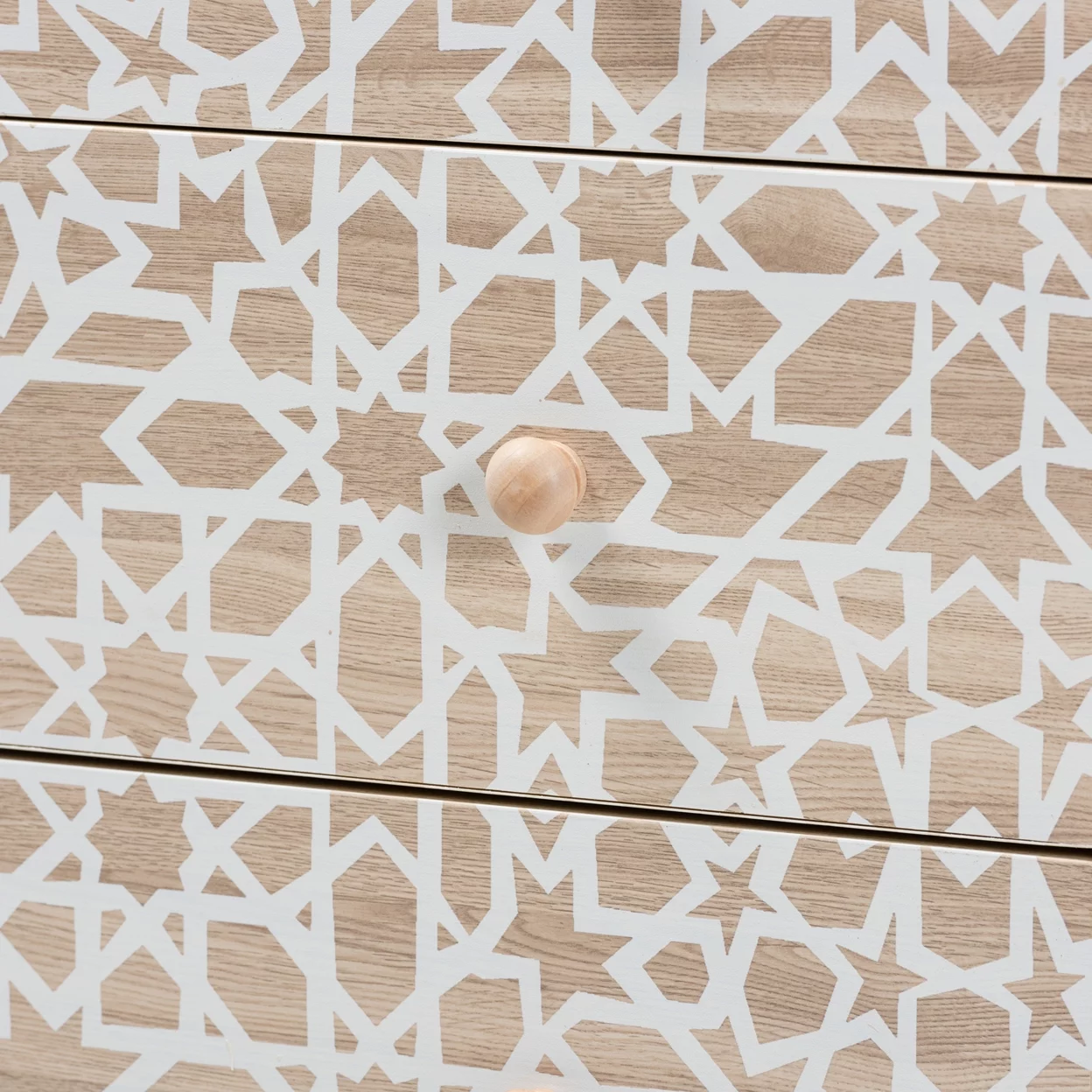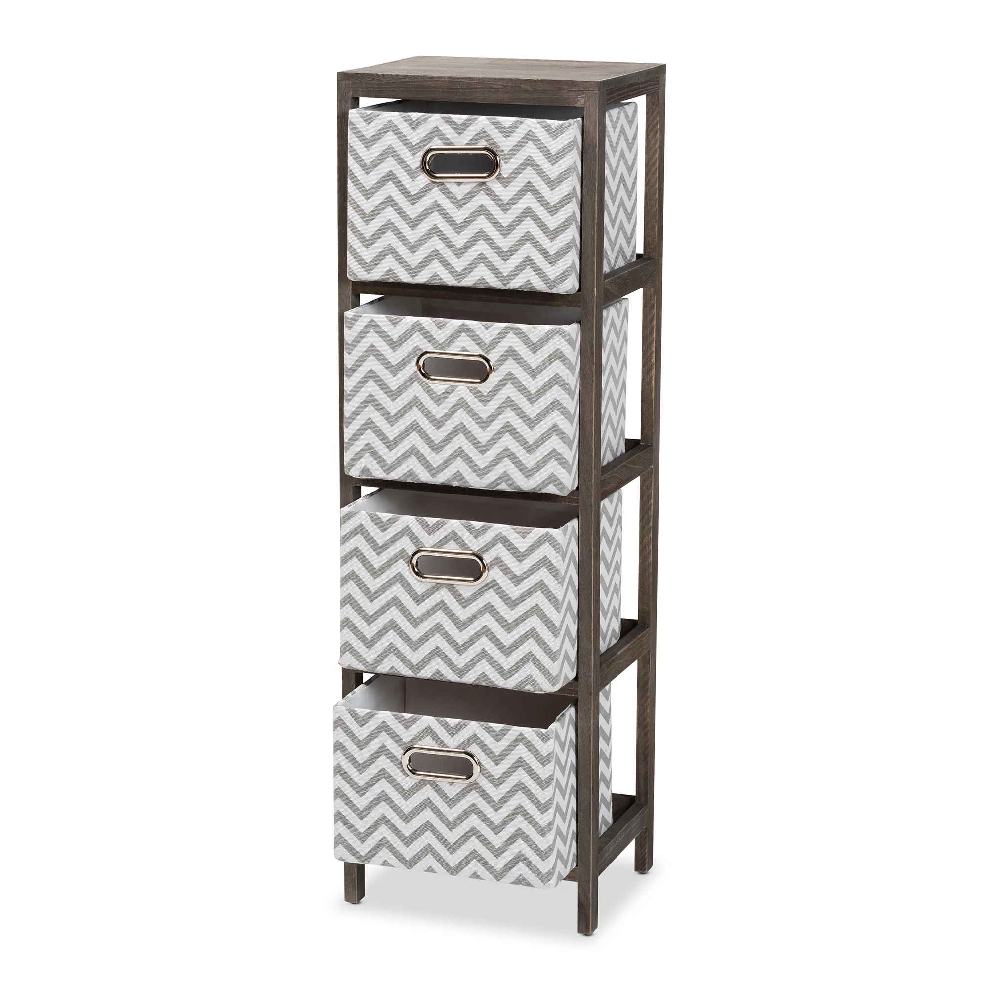 Baxton Studio Calandra Modern and Contemporary Oak Brown and Multi-Colored Wood 4-Drawer Storage Unit,Wholesale