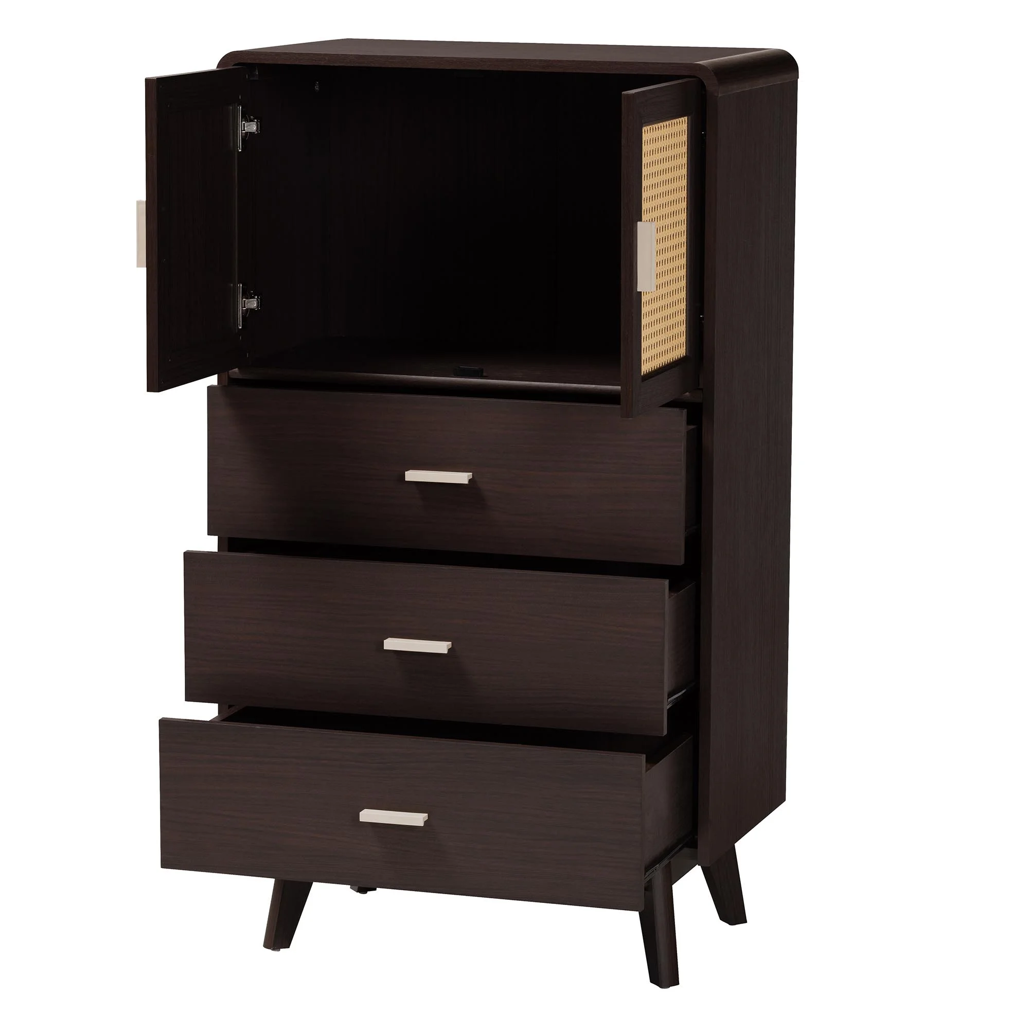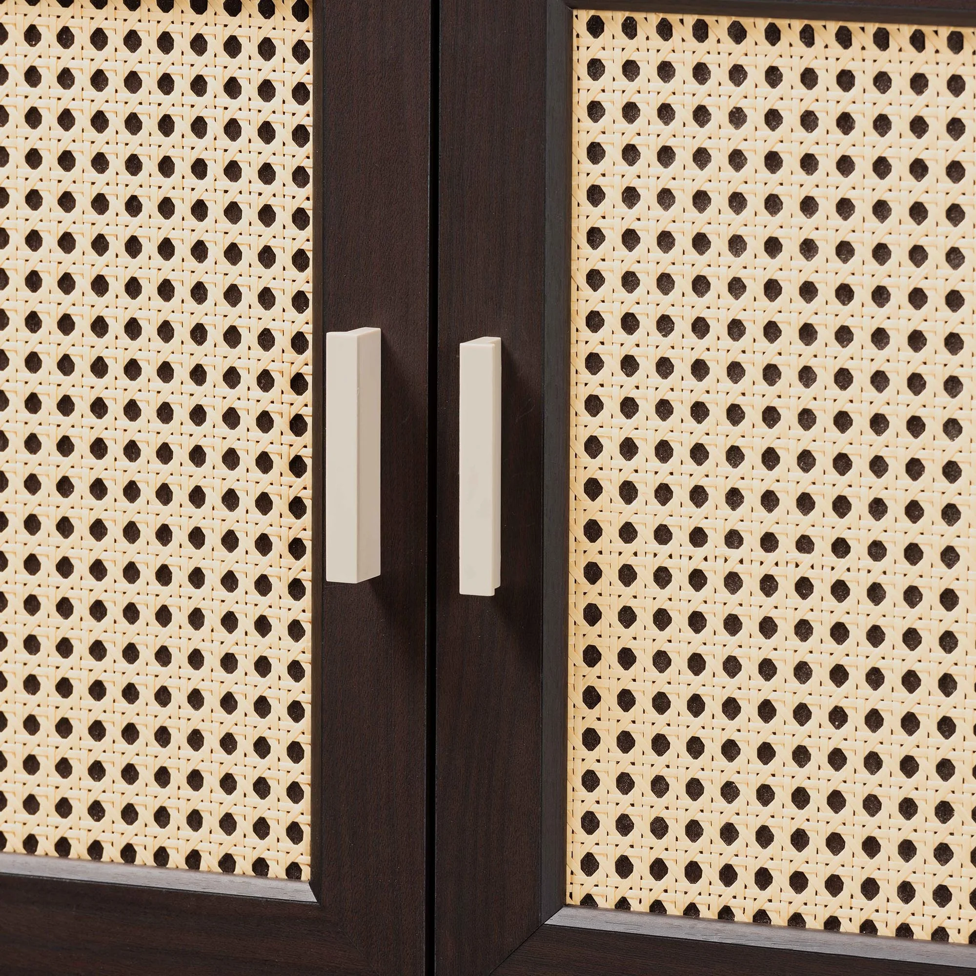 Baxton Studio Giuliana Mid-Century Modern Dark Brown Finished Wood and Woven Rattan