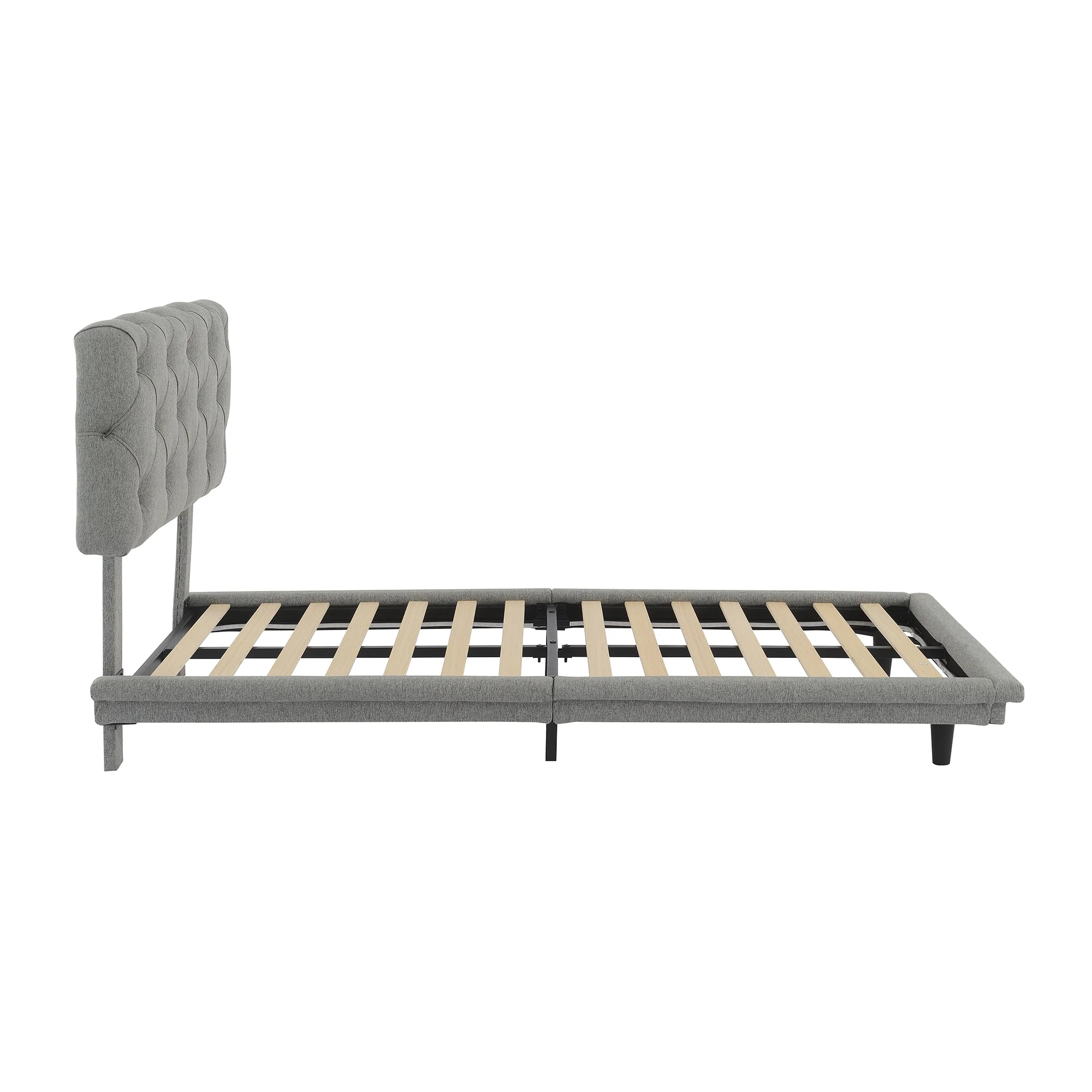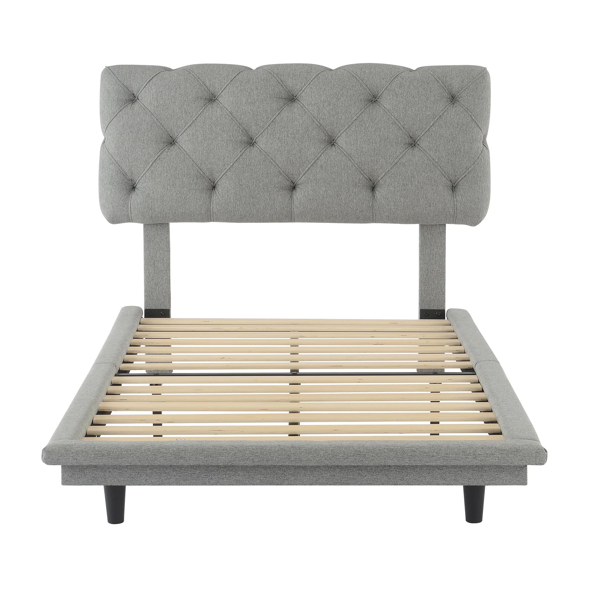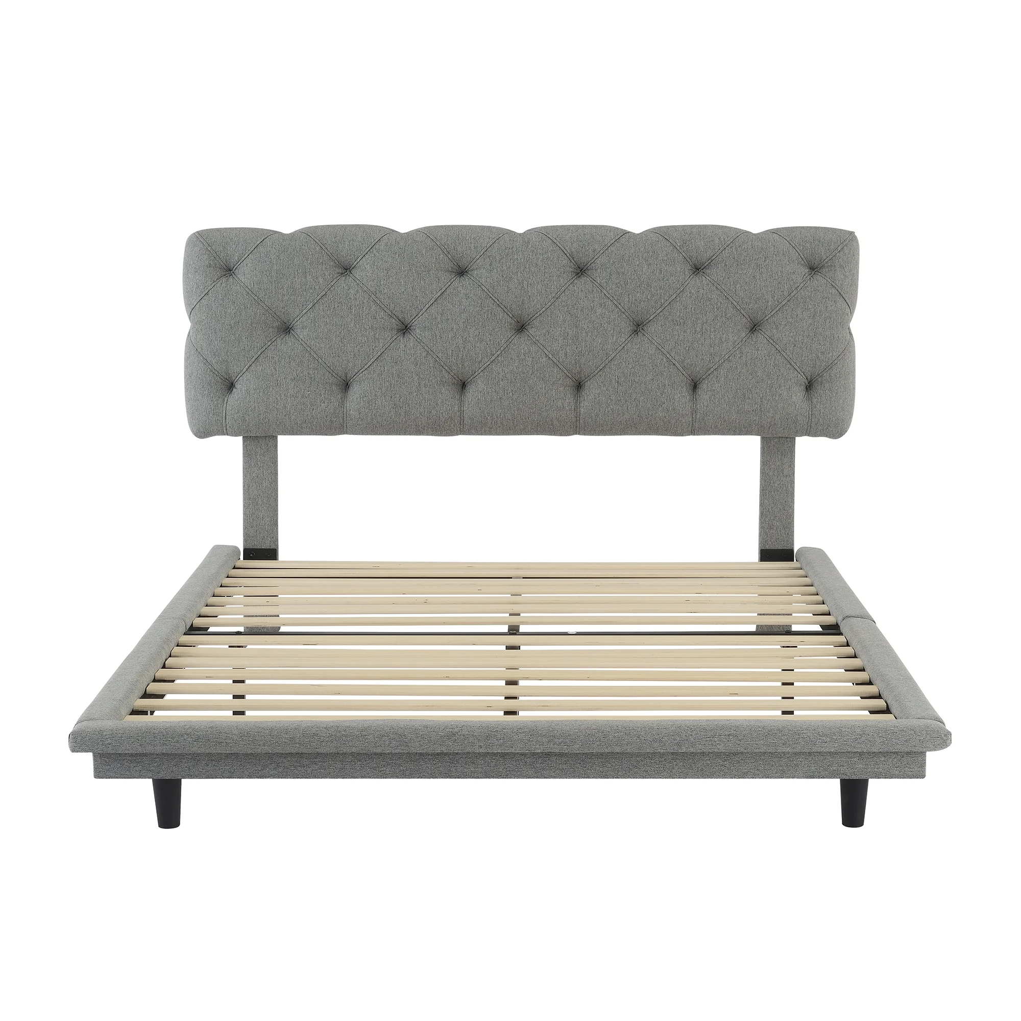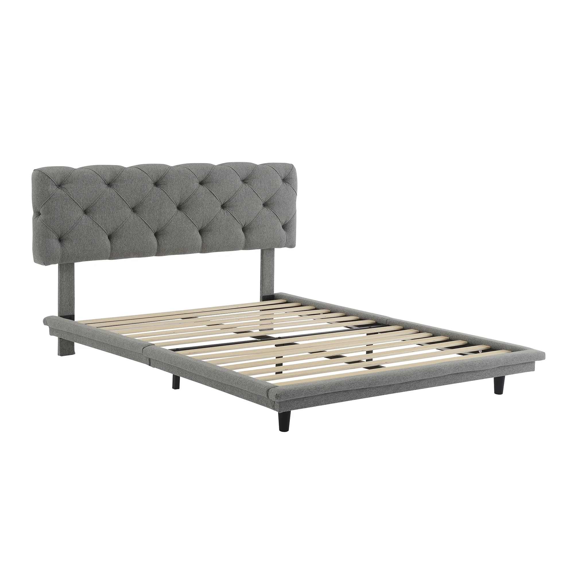CoSoTower Full Size Upholstered Bed with Light Stripe, Floating Platform Bed, Linen Fabric,Gray
