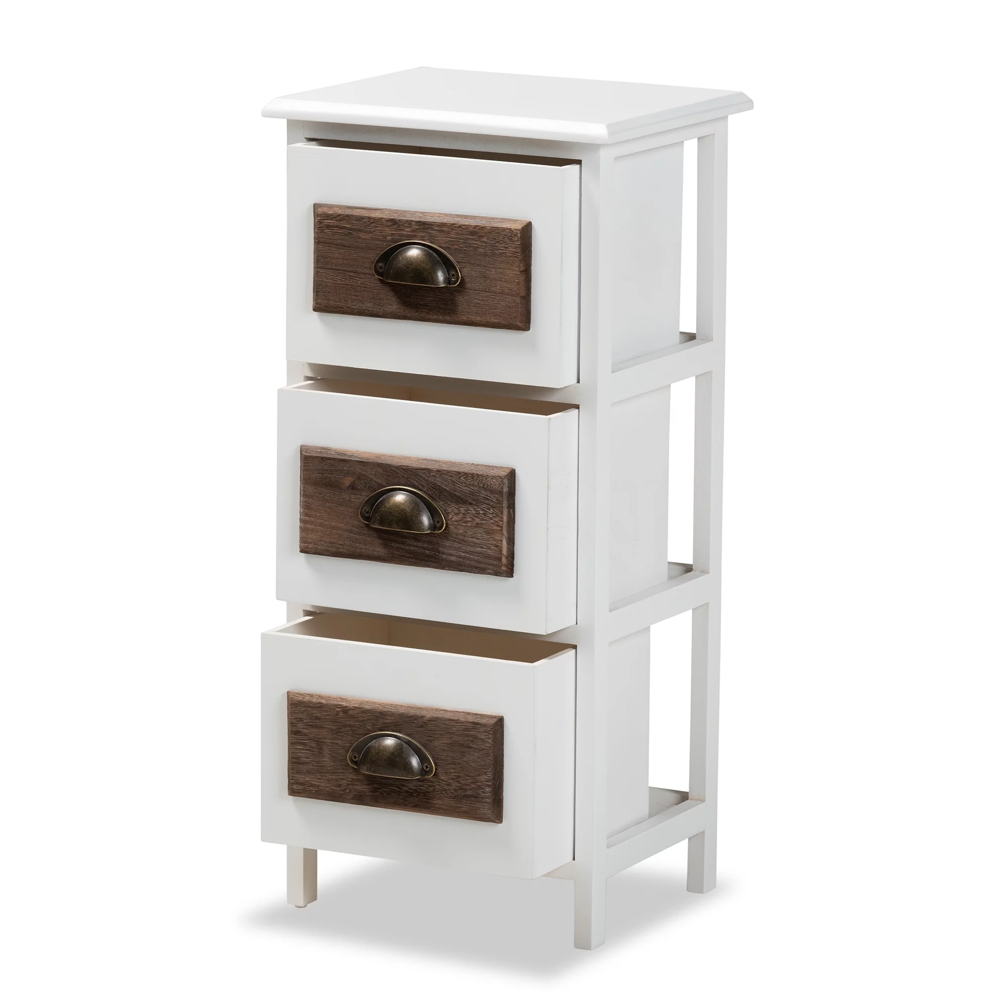 Baxton Studio Fanning Modern and Contemporary Two-Tone White and Walnut Brown Finished Wood 3-Drawer Storage Unit