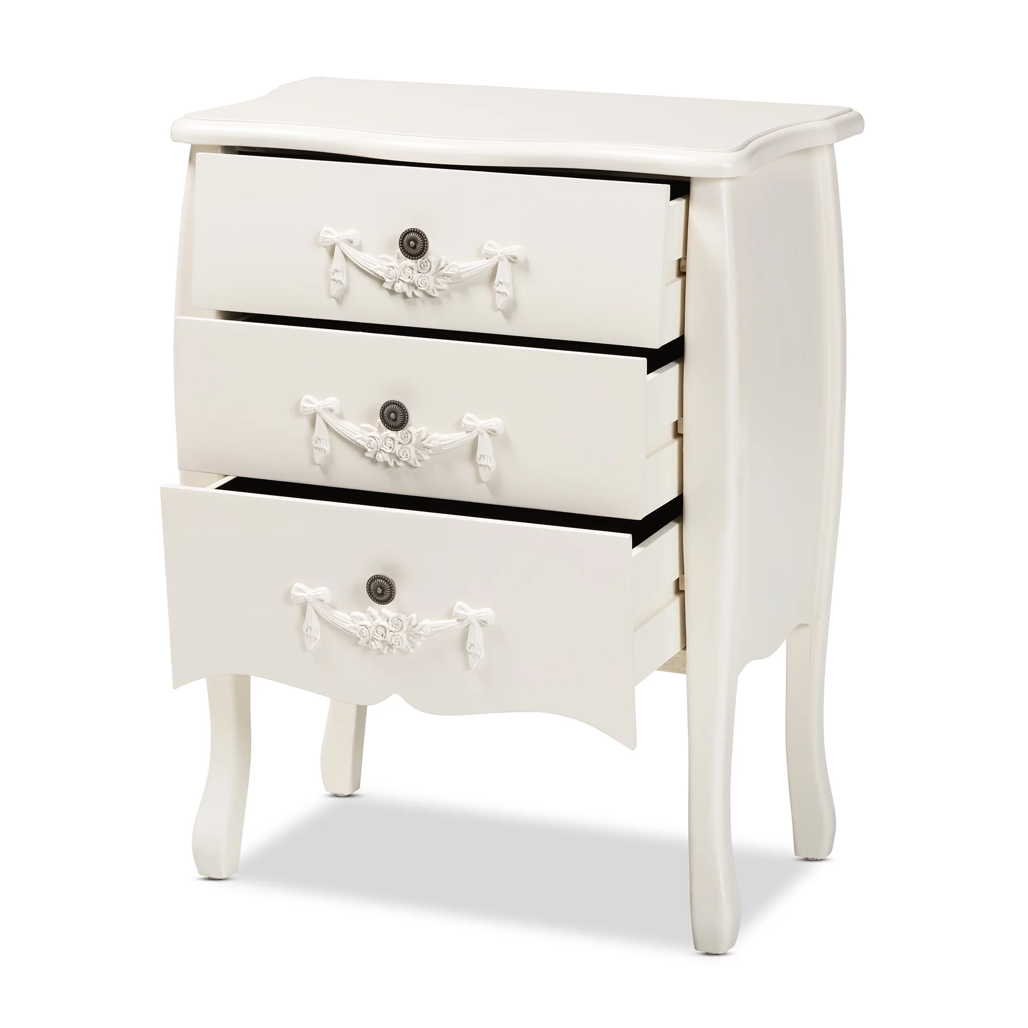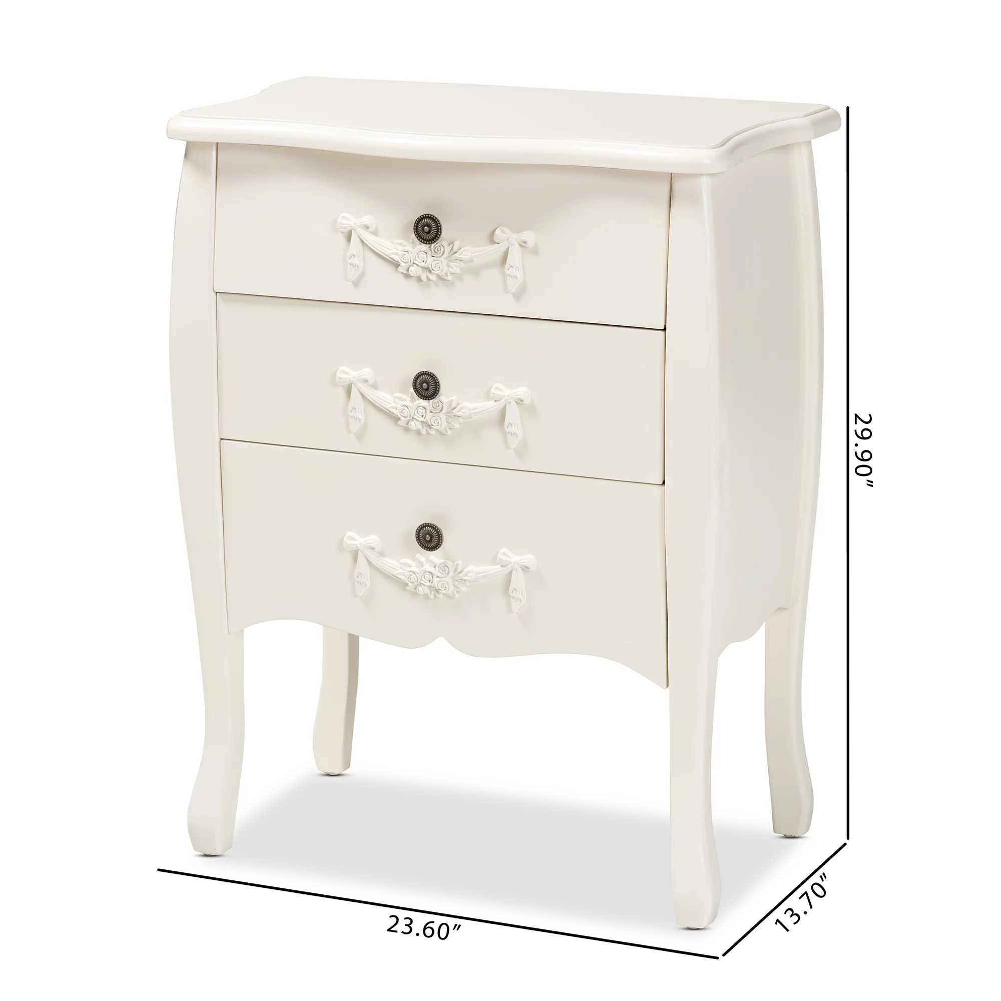 Baxton Studio Eliya Classic and Traditional White Finished Wood 3-Drawer Storage Cabinet