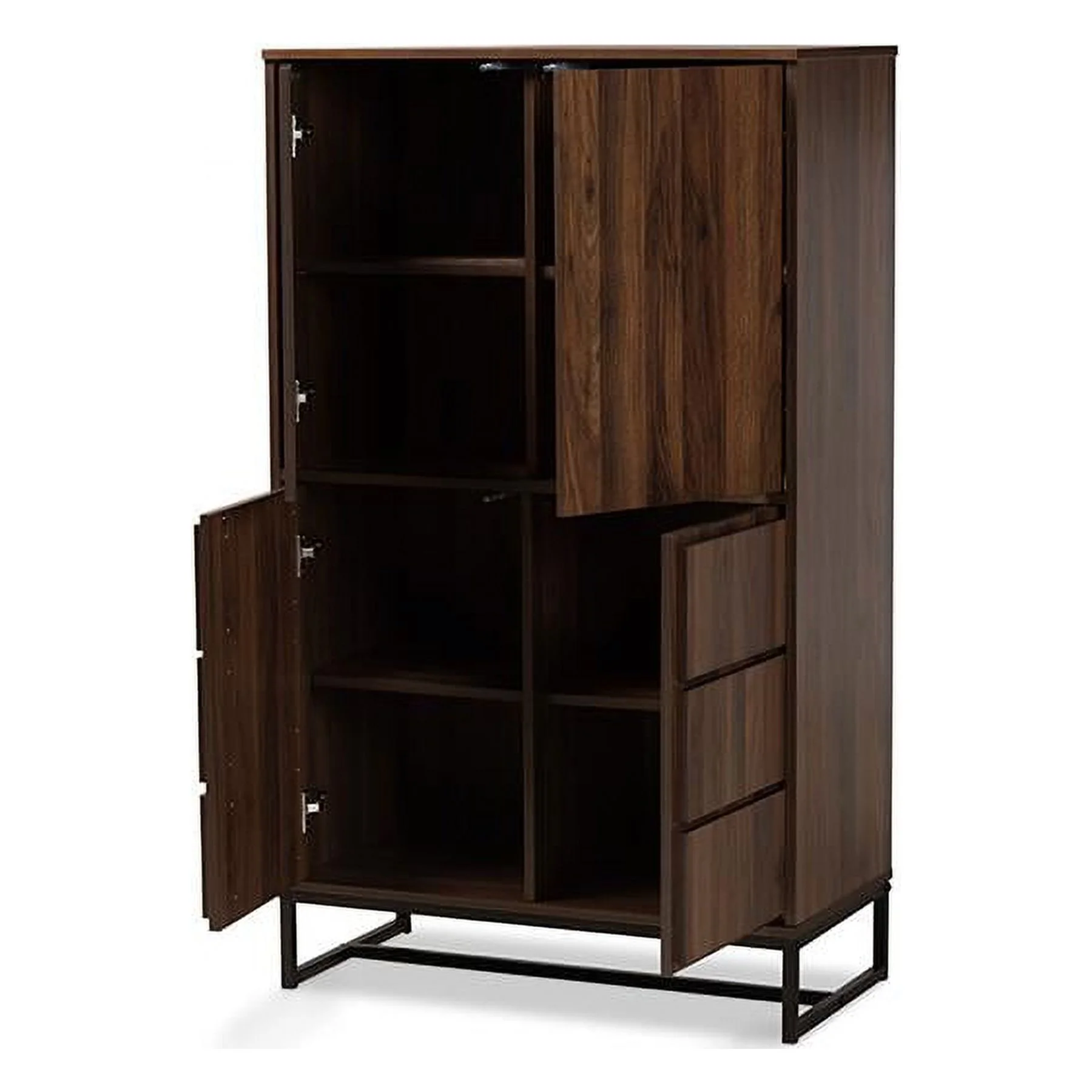 Baxton Studio Neil Modern and Contemporary Walnut Brown Finished Wood and Black Finished Metal Multipurpose Storage
