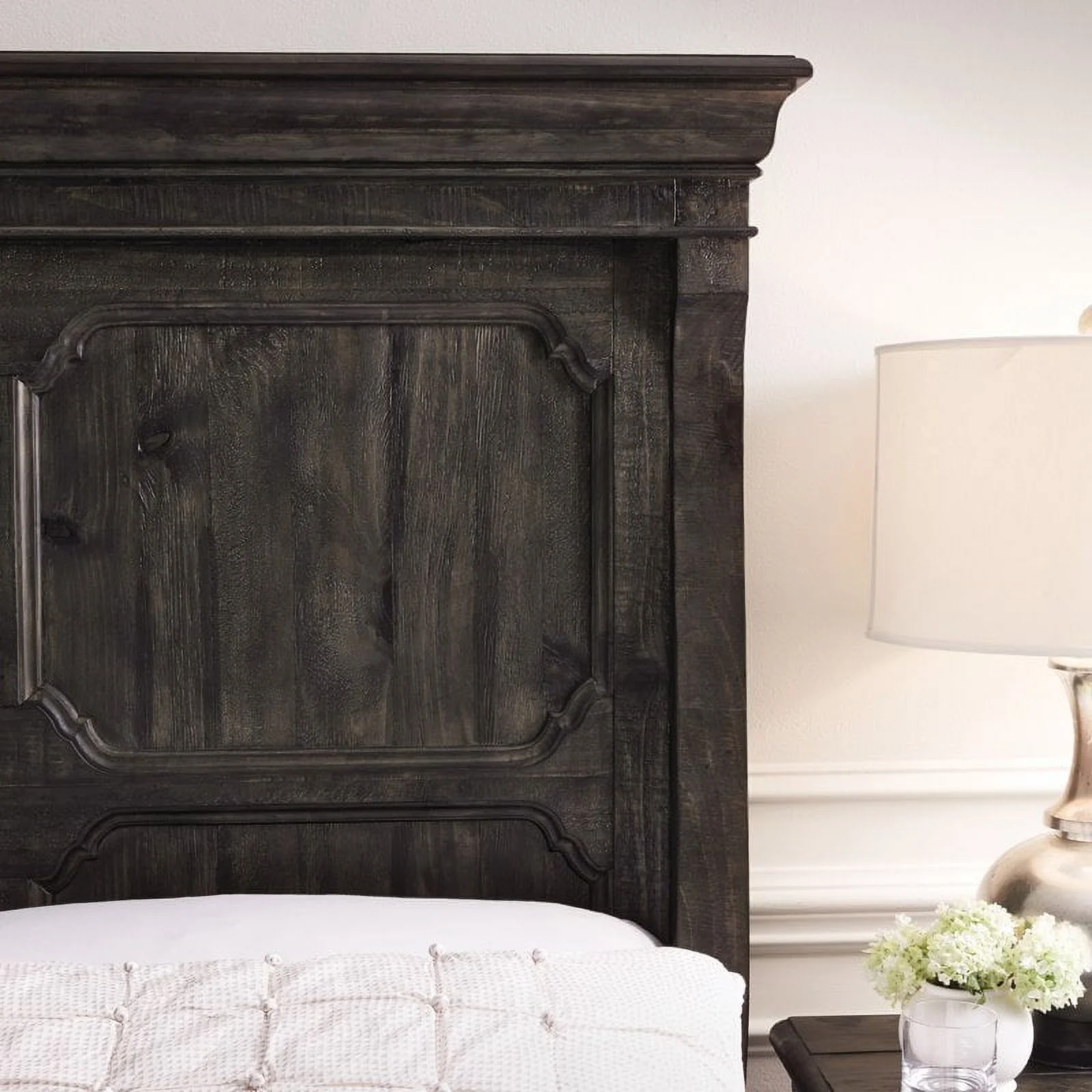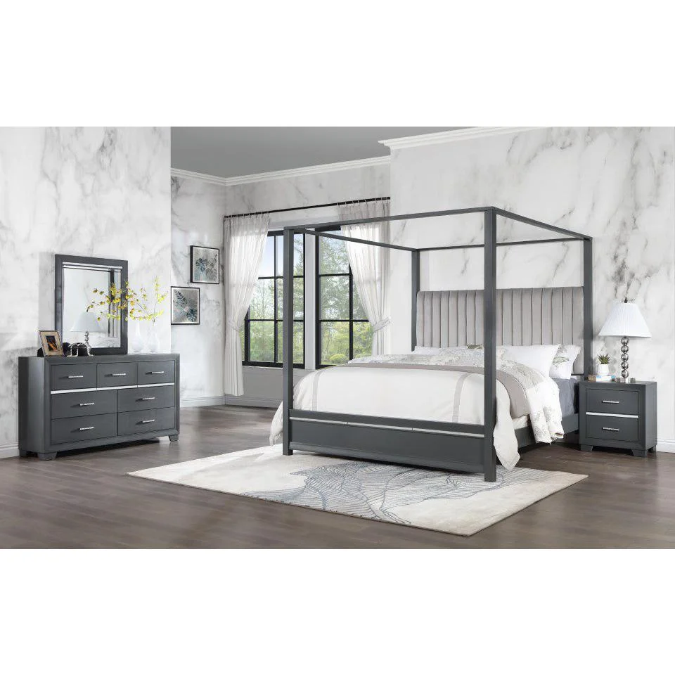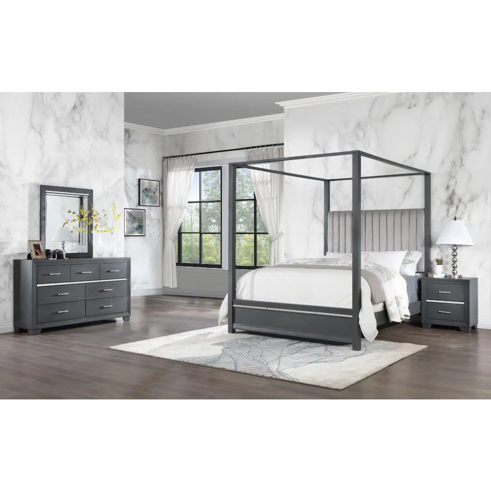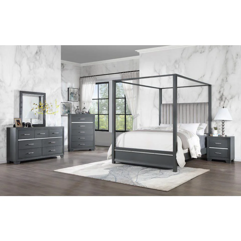 Modus Oxford 5PC Full Canopy Bedroom Set w 2 Nightstand in Basalt Grey