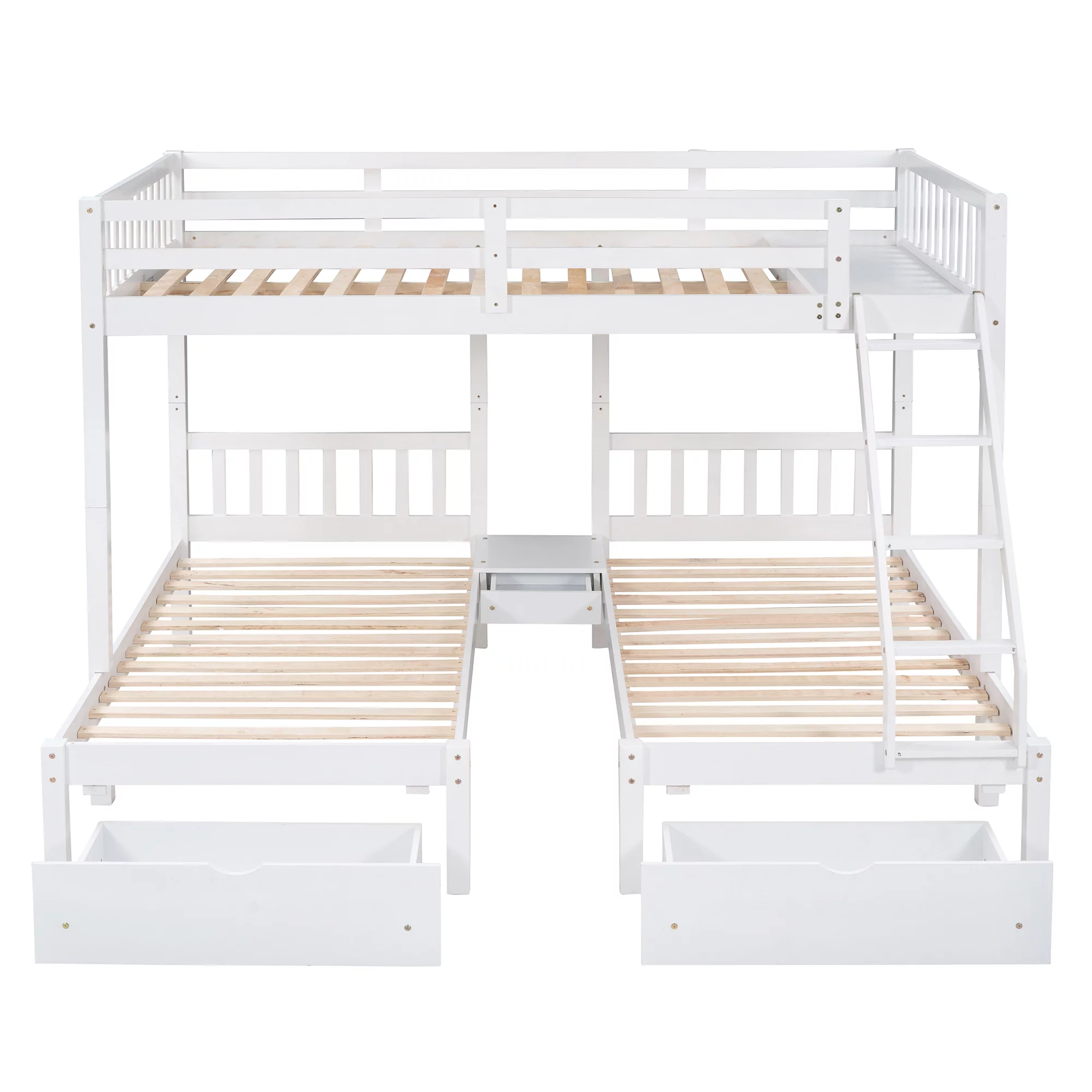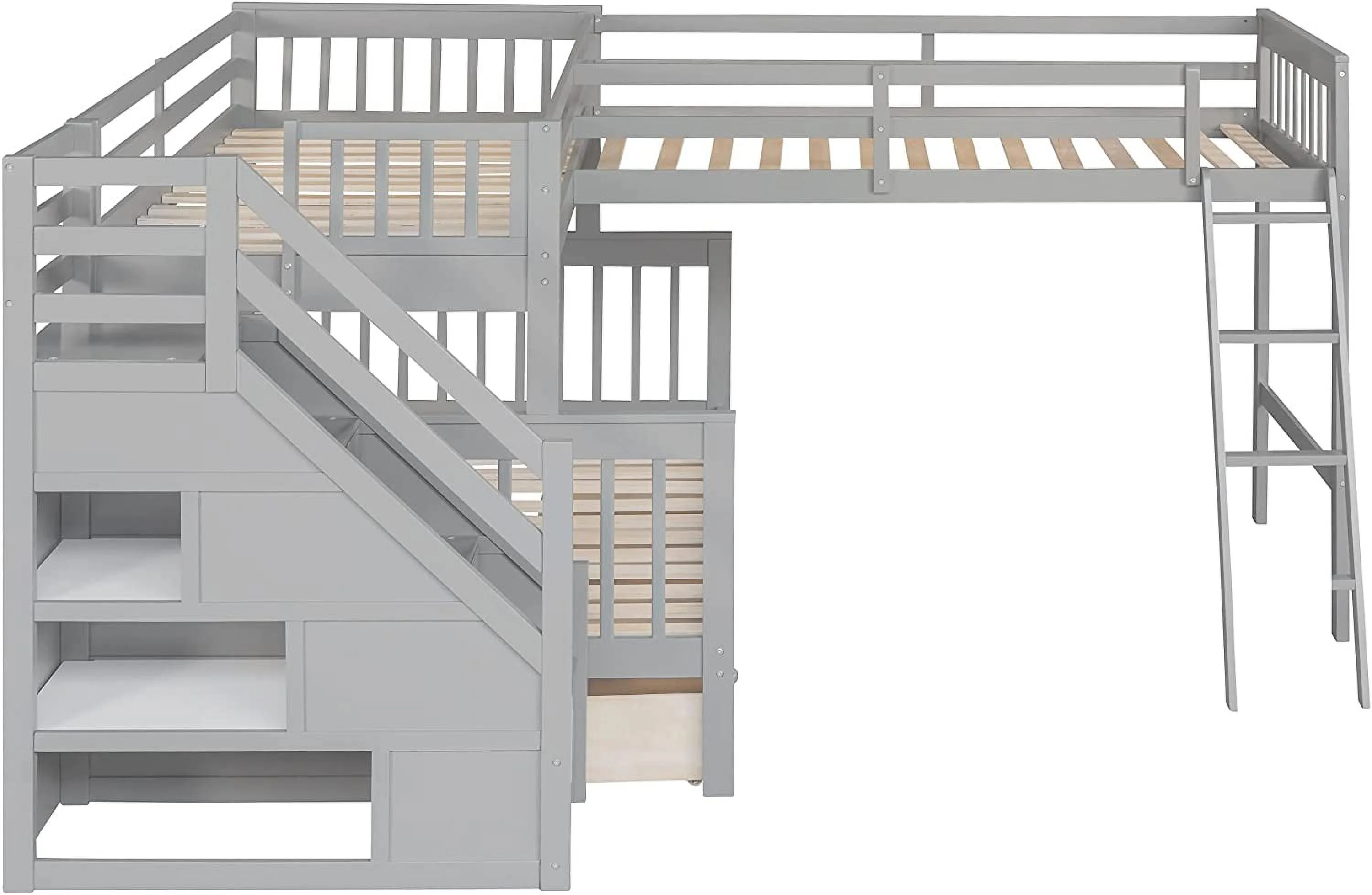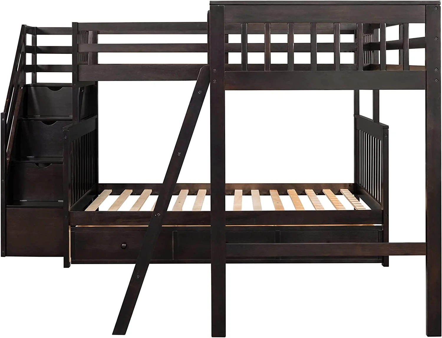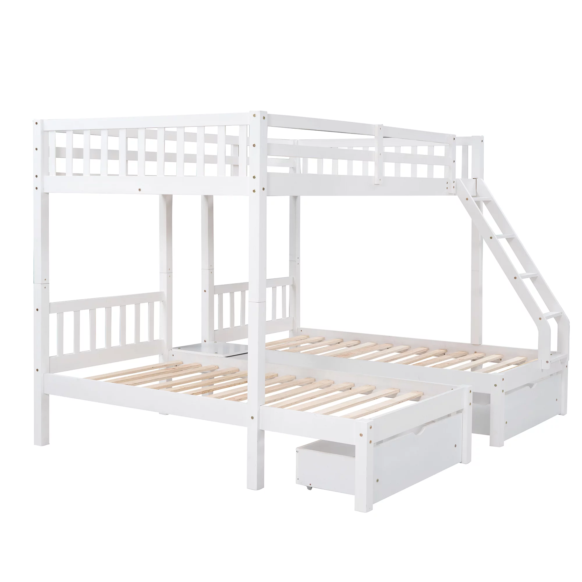 AOMBOO Triple Bunk Beds for Kids with Stairs and Storage Drawers Under Pine Wooden White