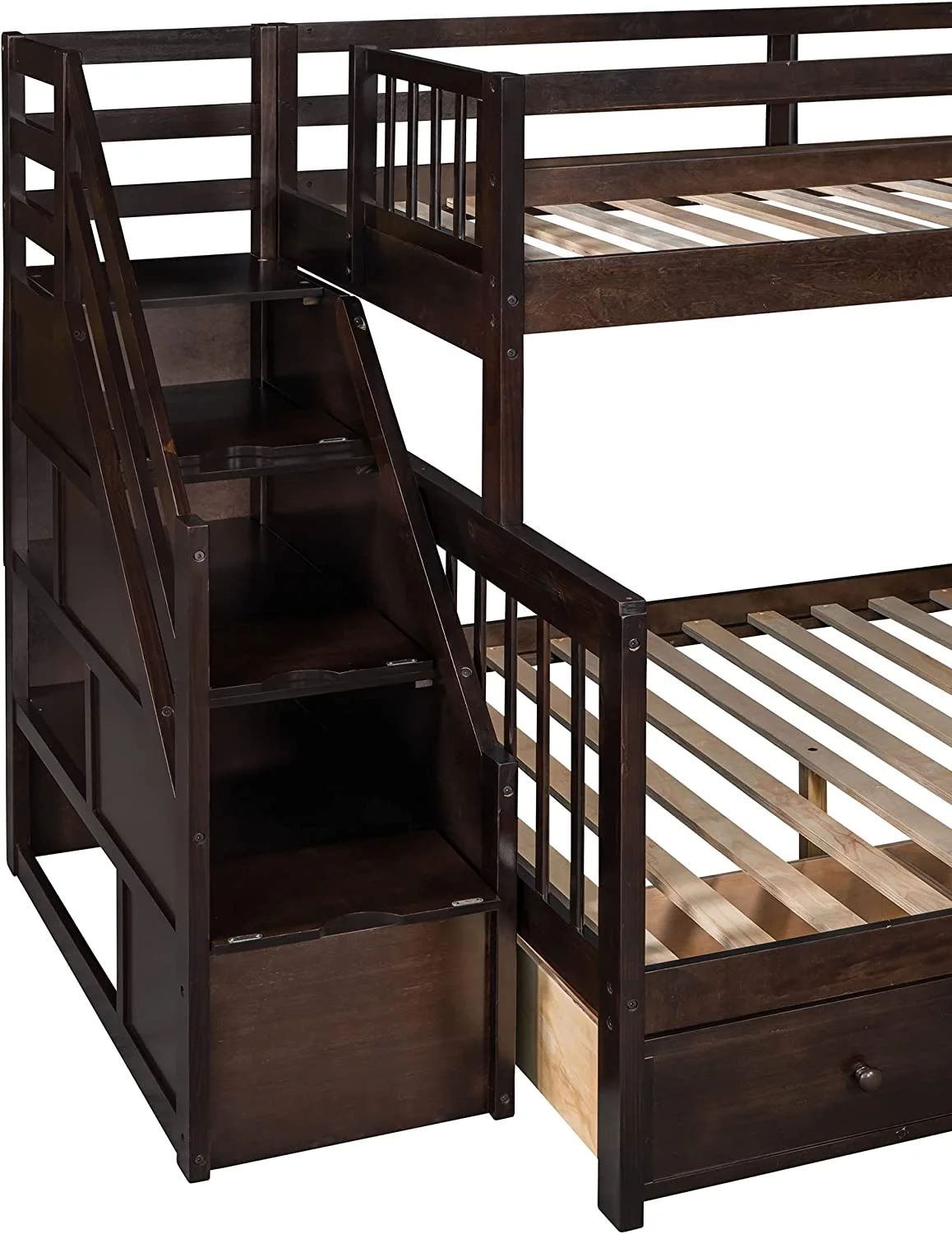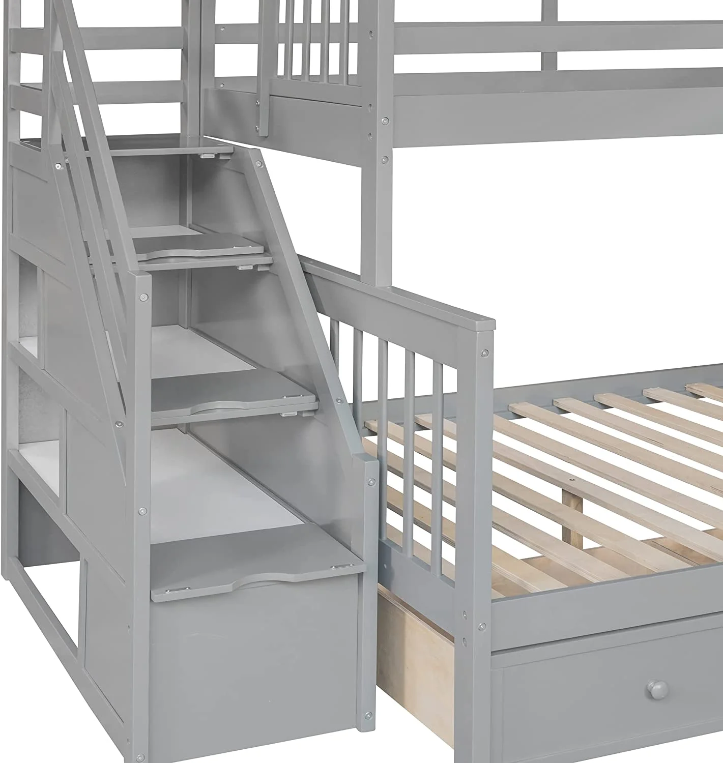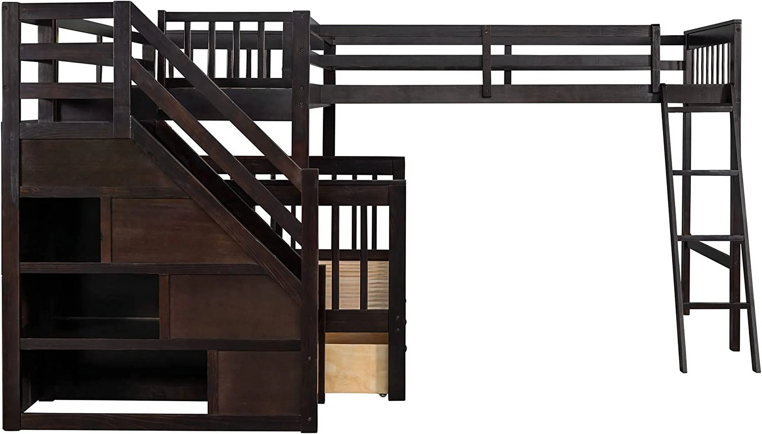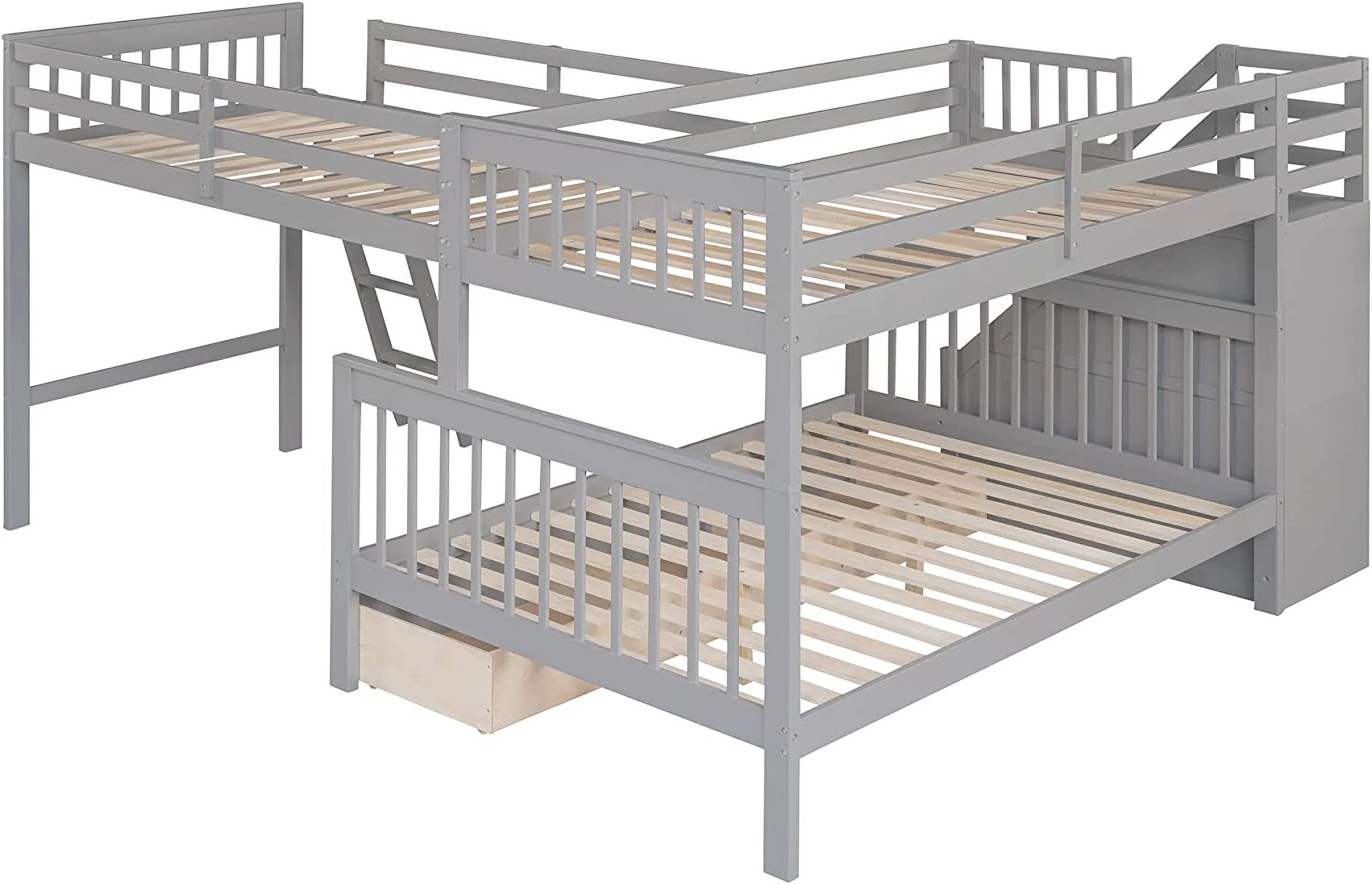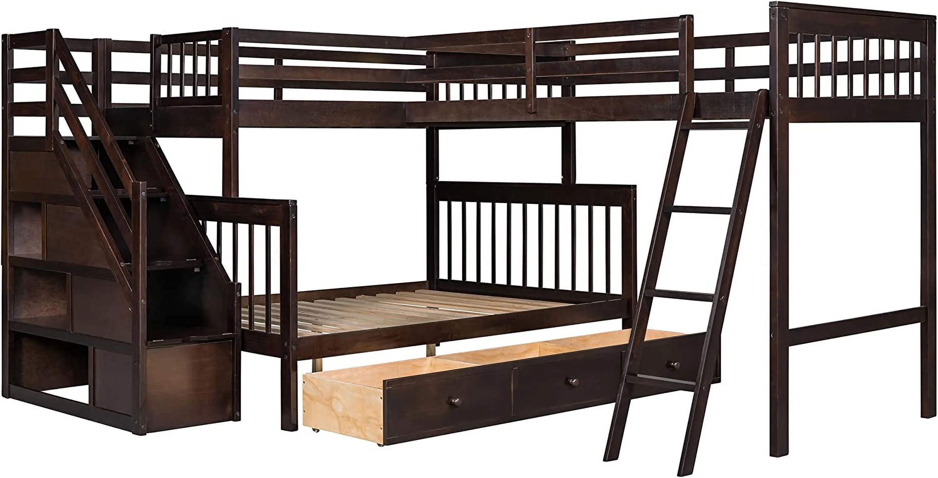 AOMBOO Triple Bunk Beds for Kids with Stairs and Storage Drawers Under Pine Wooden White