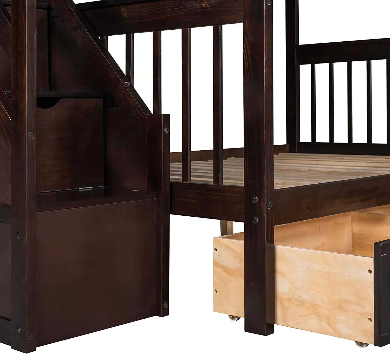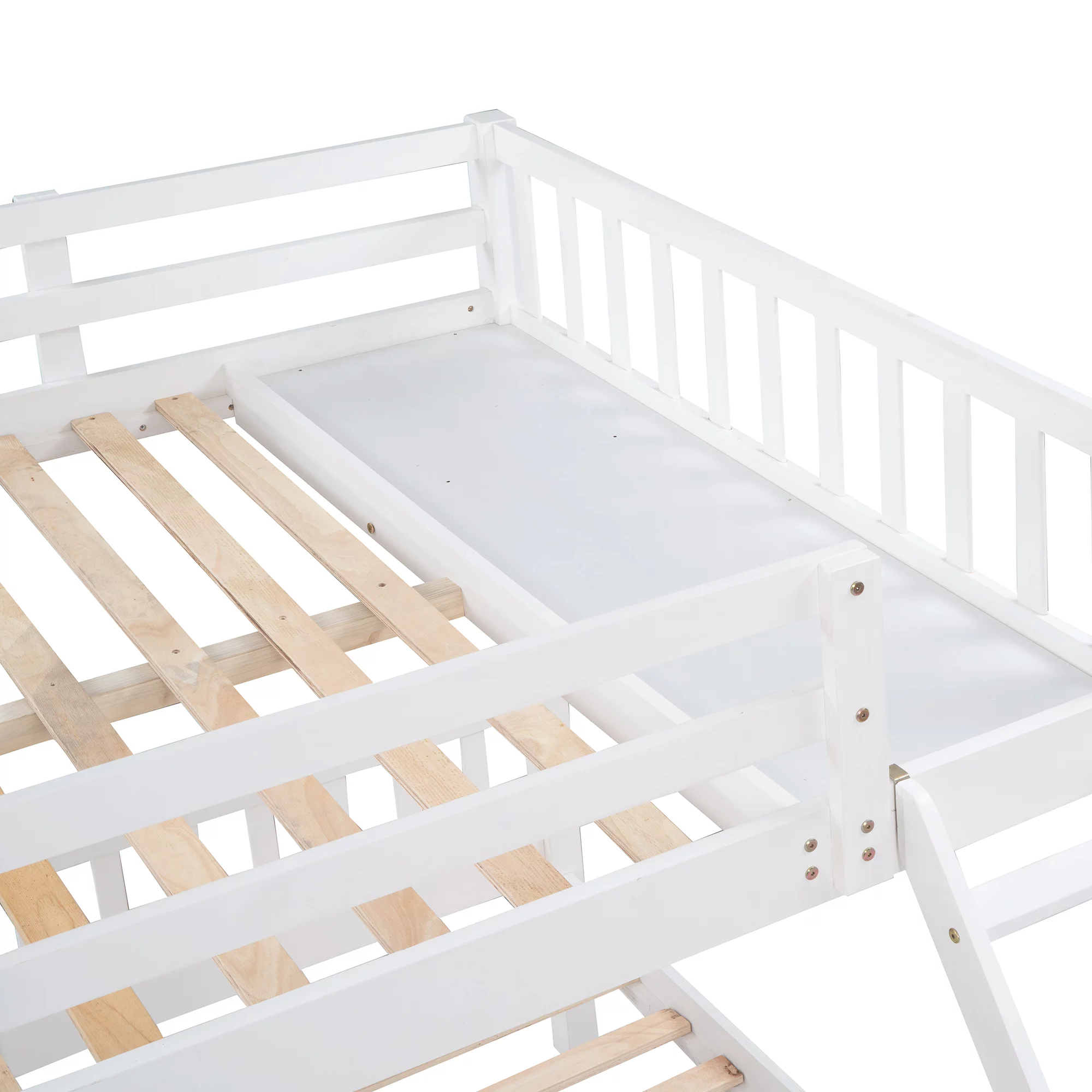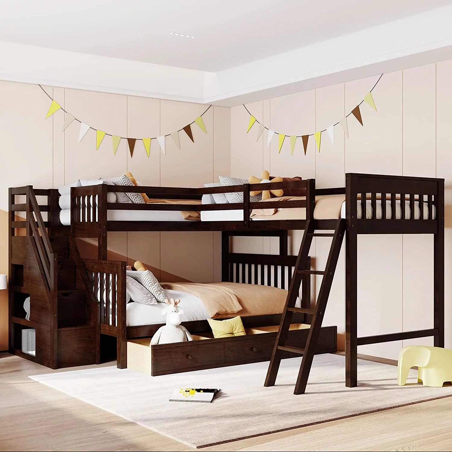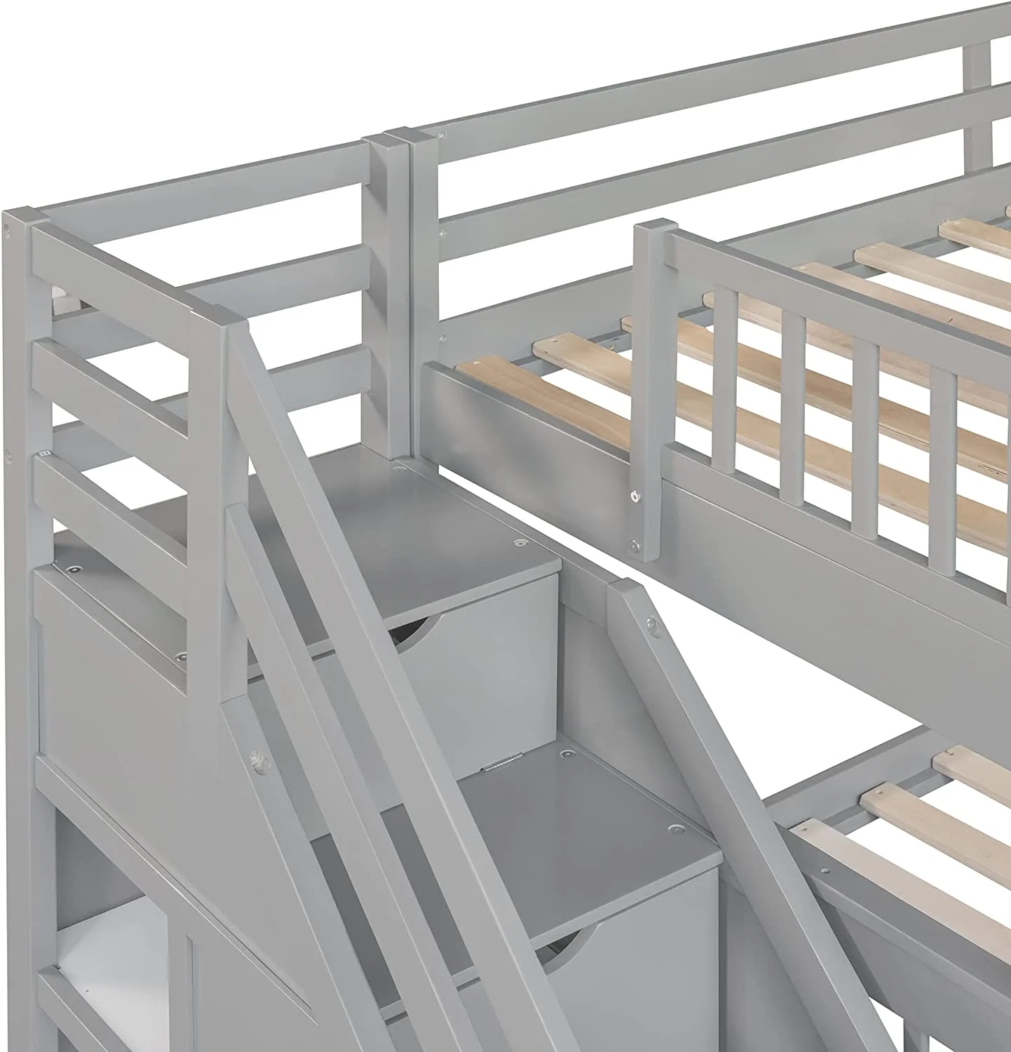 AOMBOO Triple Bunk Beds for Kids with Stairs and Storage Drawers Under Pine Wooden White