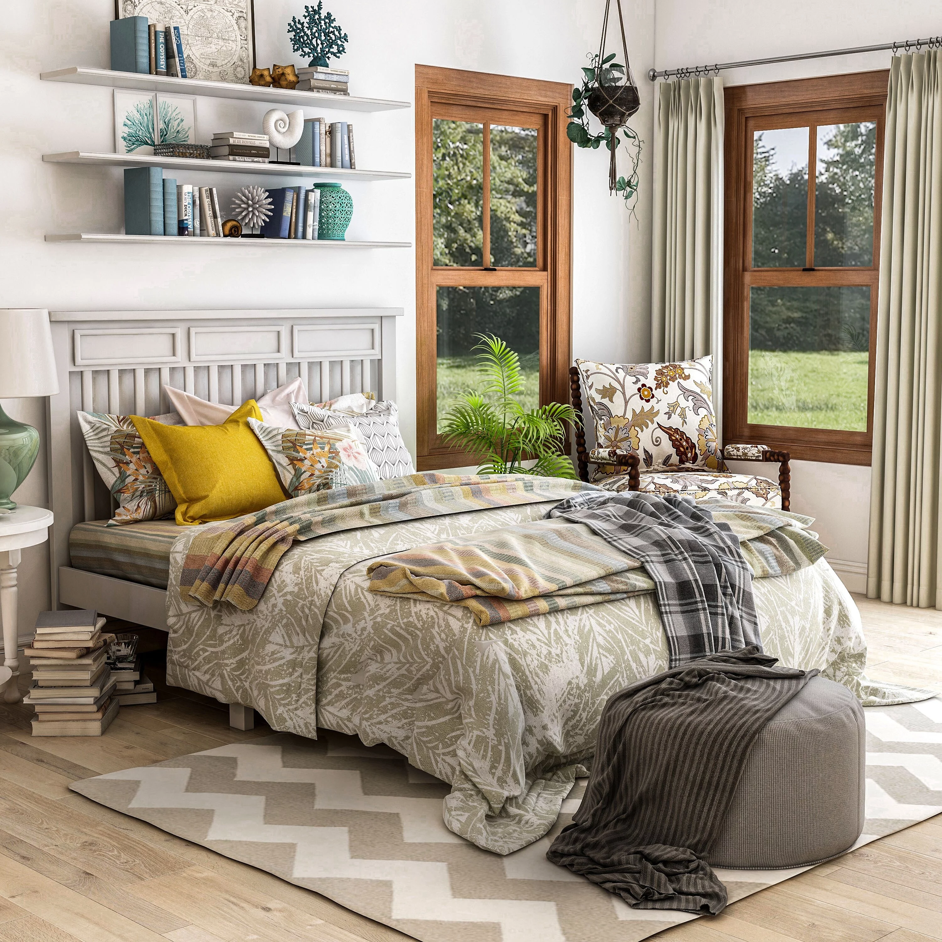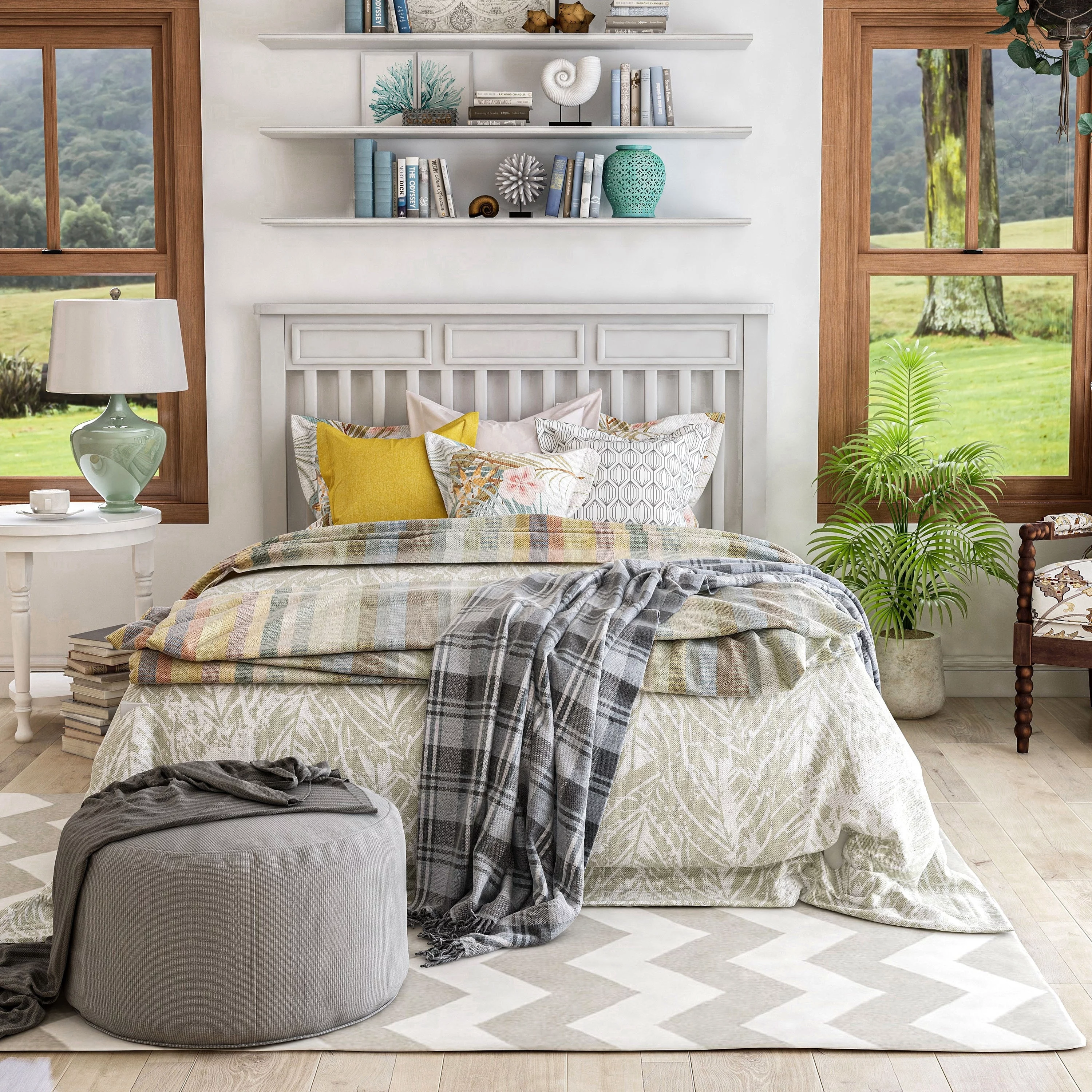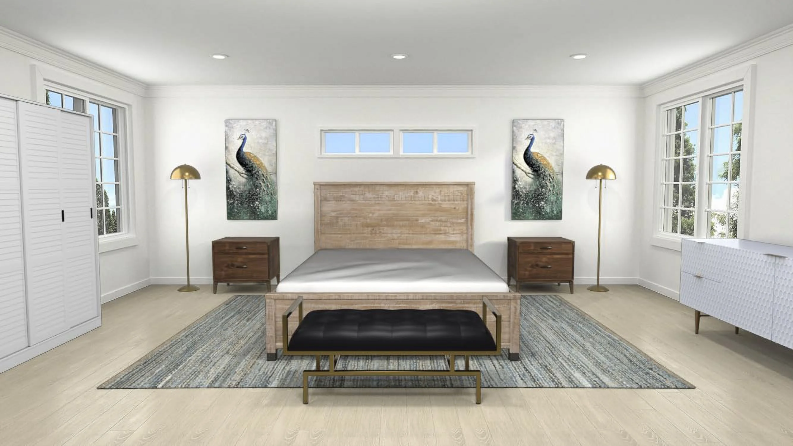 Pendry Studio Abrie Tall Canopy Velvet Channeled 5pc Queen Bedroom Set