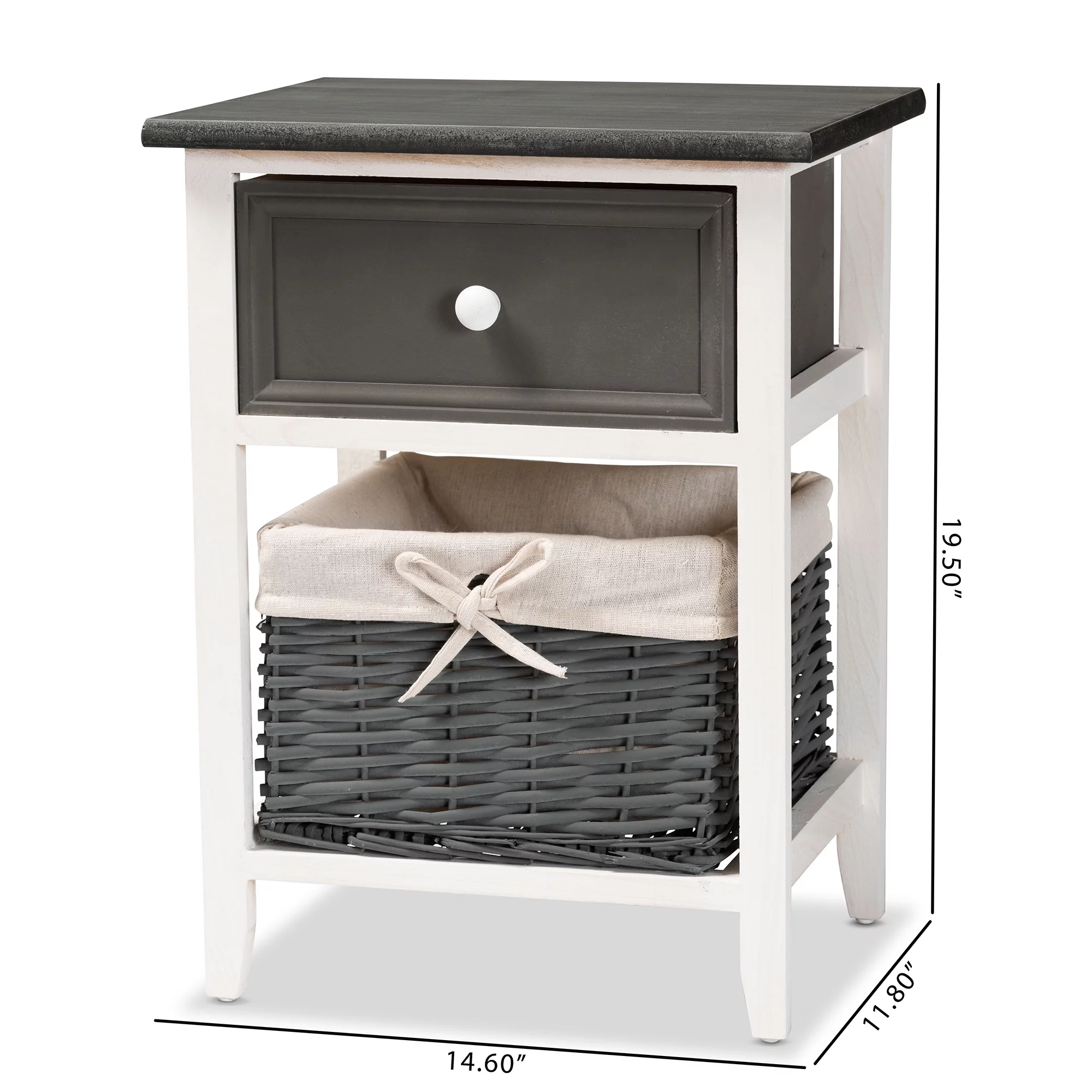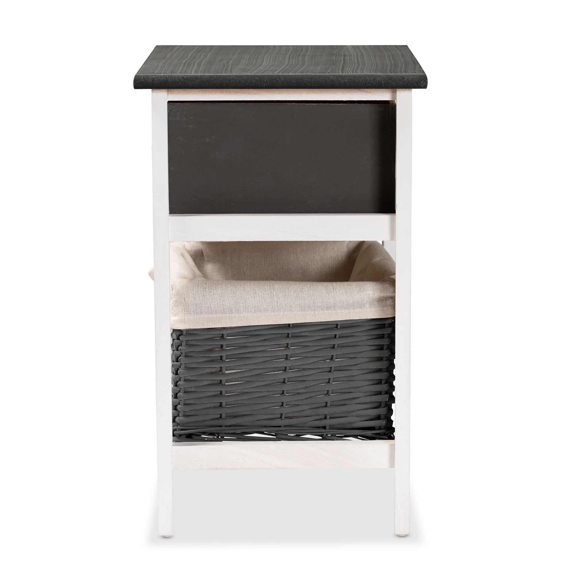 Baxton Studio Shadell Modern Transitional Two-Tone Dark Grey and White Finished Wood 1-Drawer Storage Unit with Basket