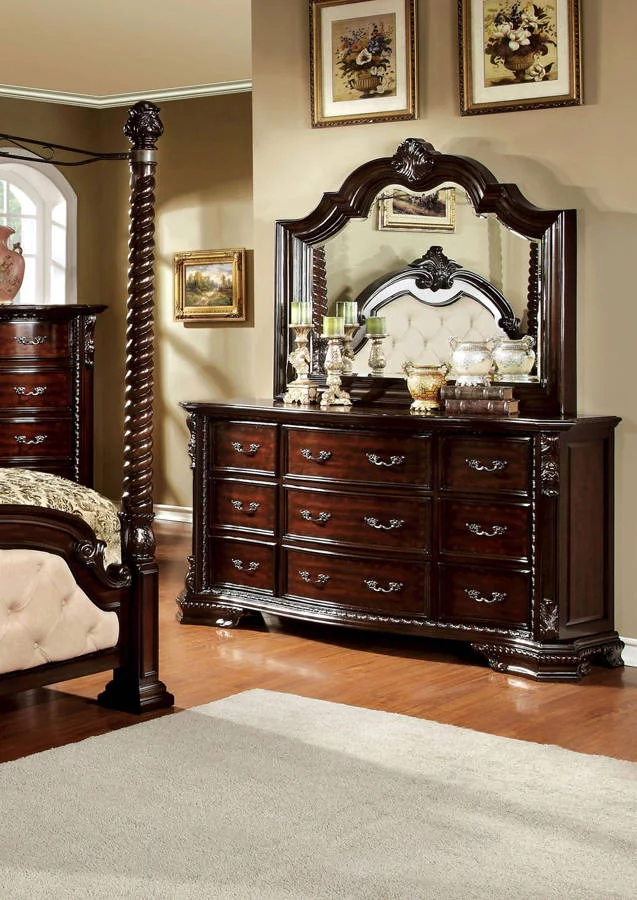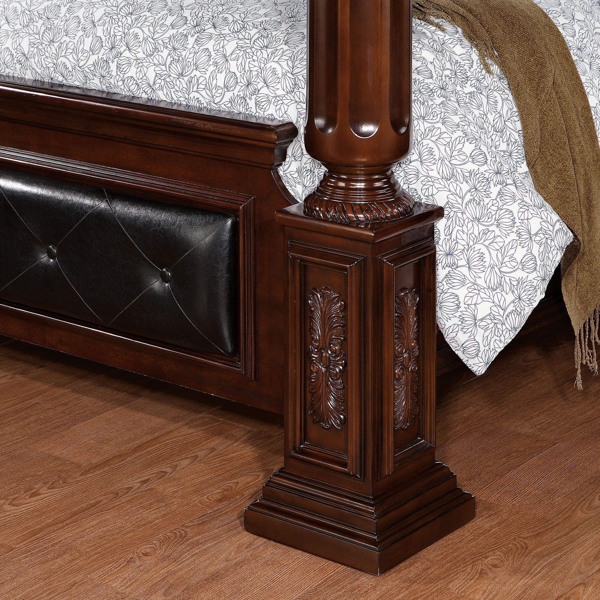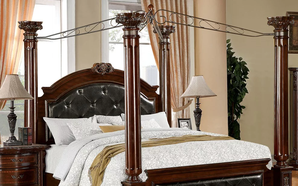 Furniture of America Tage Traditional Brown Wood Tufted Canopy 2-Piece Bedroom Set by Queen