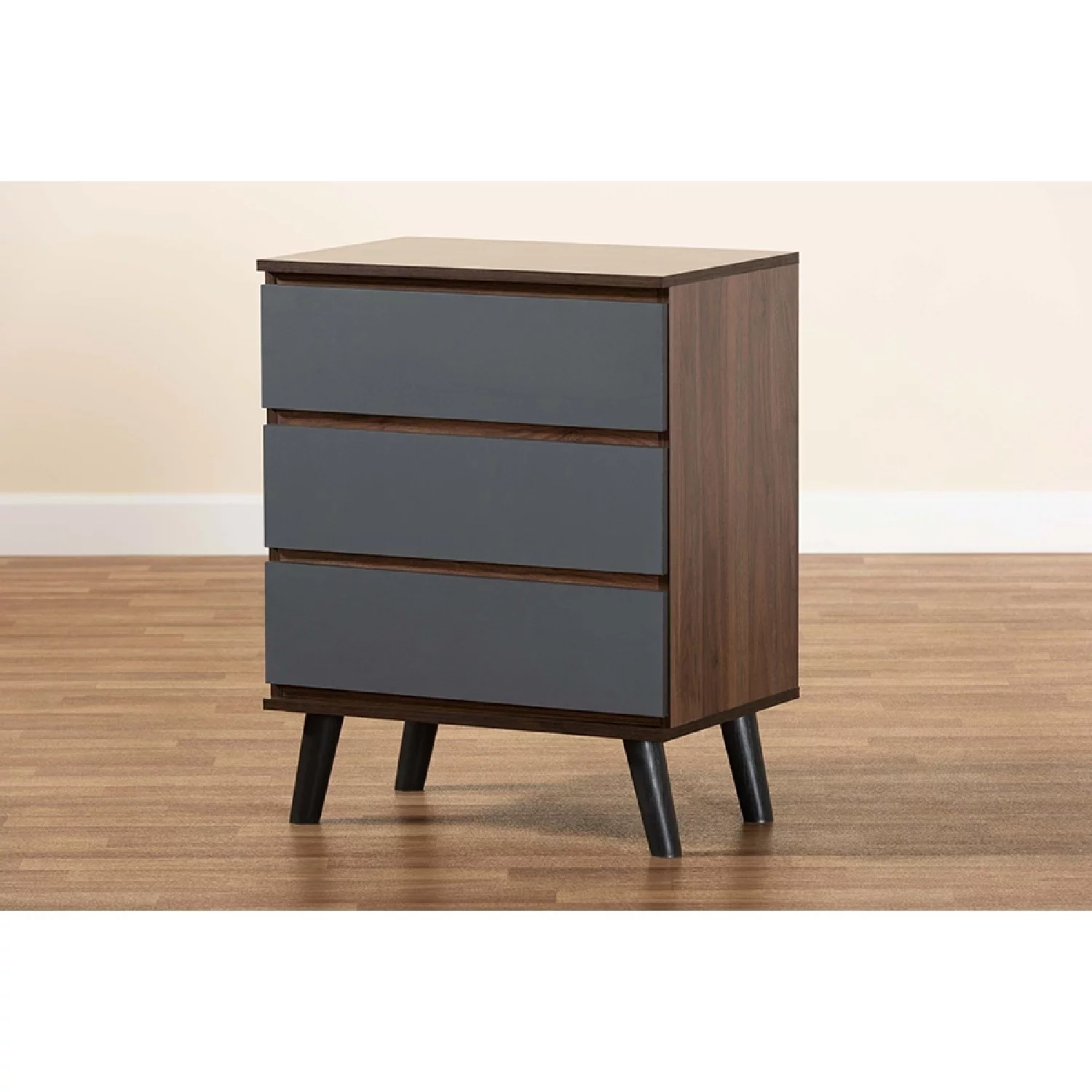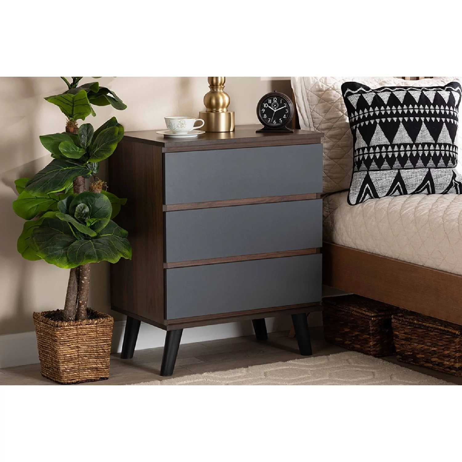 Baxton Studio Roldan Modern and Contemporary Two-Tone Walnut and Grey Finished Wood 3-Drawer Bedroom Chest