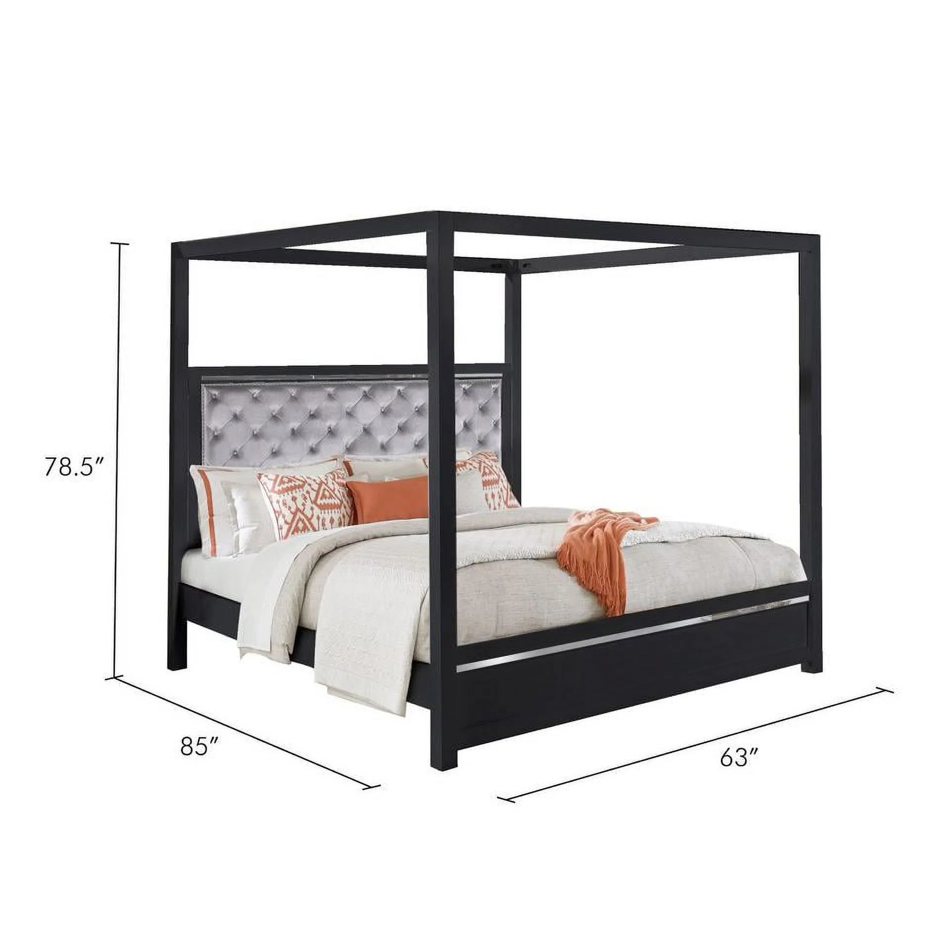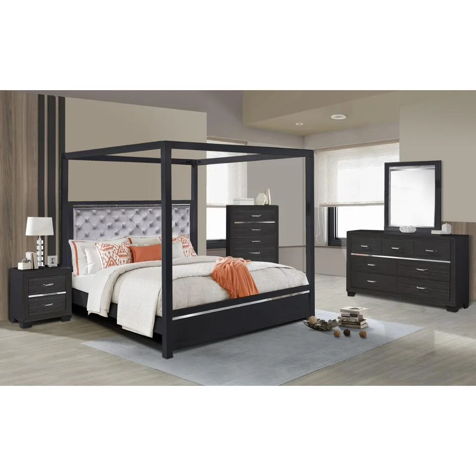 Pendry Studio Canopy Velvet tufted with LED Lighting 5pc Queen Bedroom Set