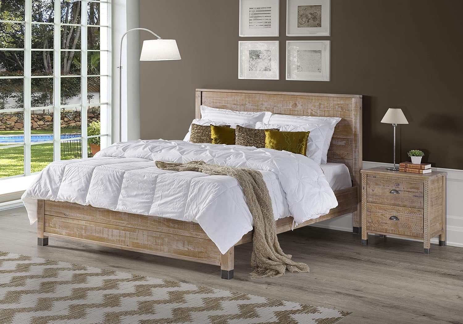 Modus Melbourne 5 PC Queen Canopy Bedroom Set w 2 Nightstand in Dark Pine