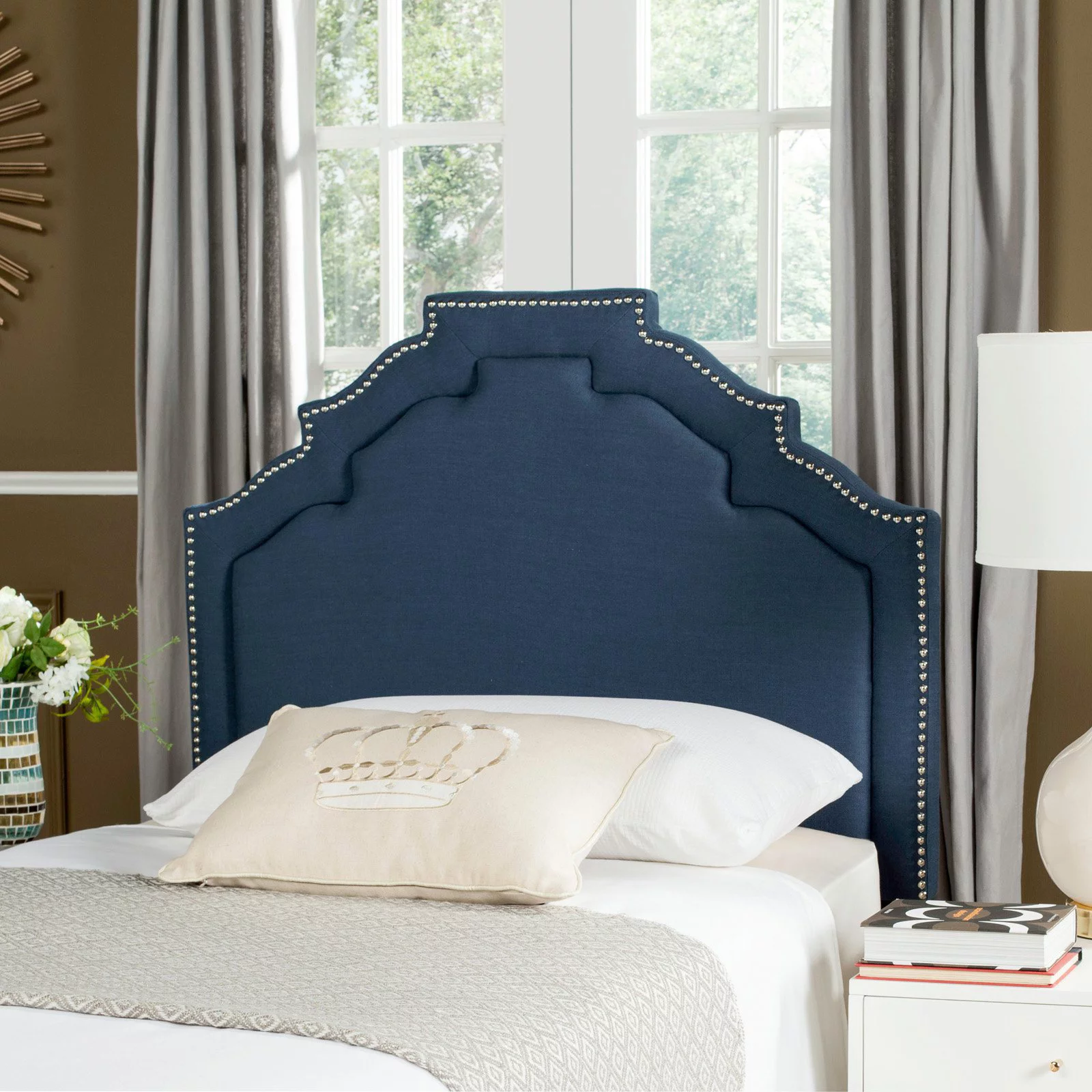 SAFAVIEH Alexia Modern Glam Upholstered Headboard with Nail Heads, Full, Pewter