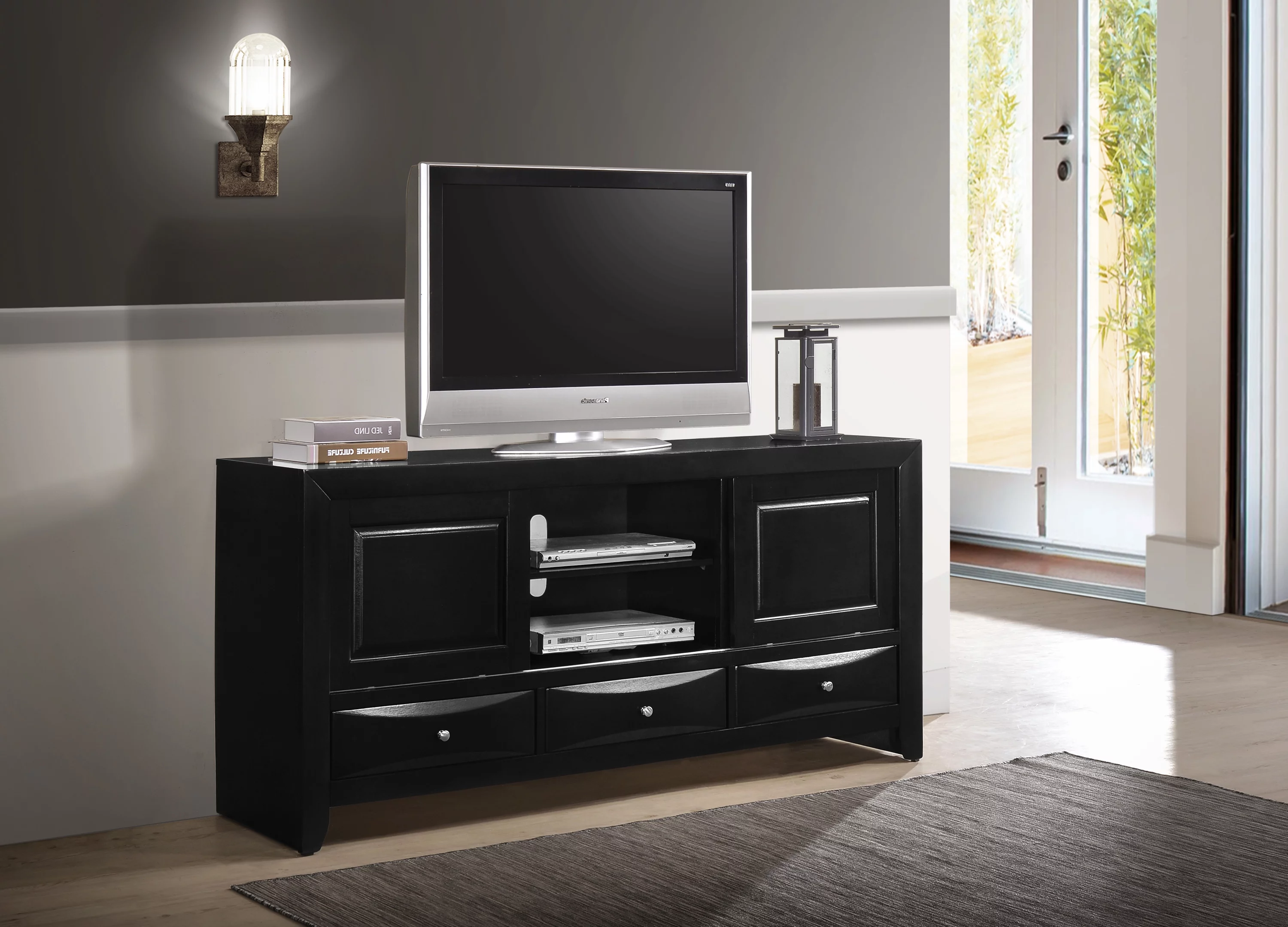 Lyndsay Black Storage Platform Bedroom Set Special Queen 4 Piece: Bed, Dresser, Mirror, NightStand