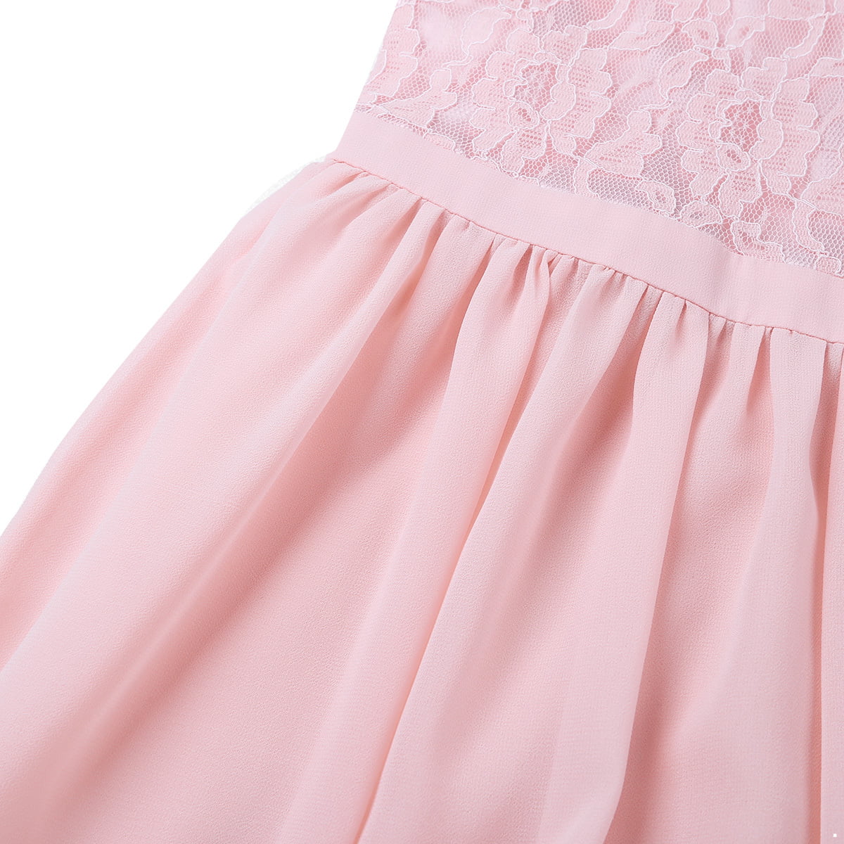 TTAO Kids Flower Girls Dress Wedding Bridesmaid Lace Chiffon Maxi Long Dress Party Ball Gown 6-16Y Pearl Pink 6
