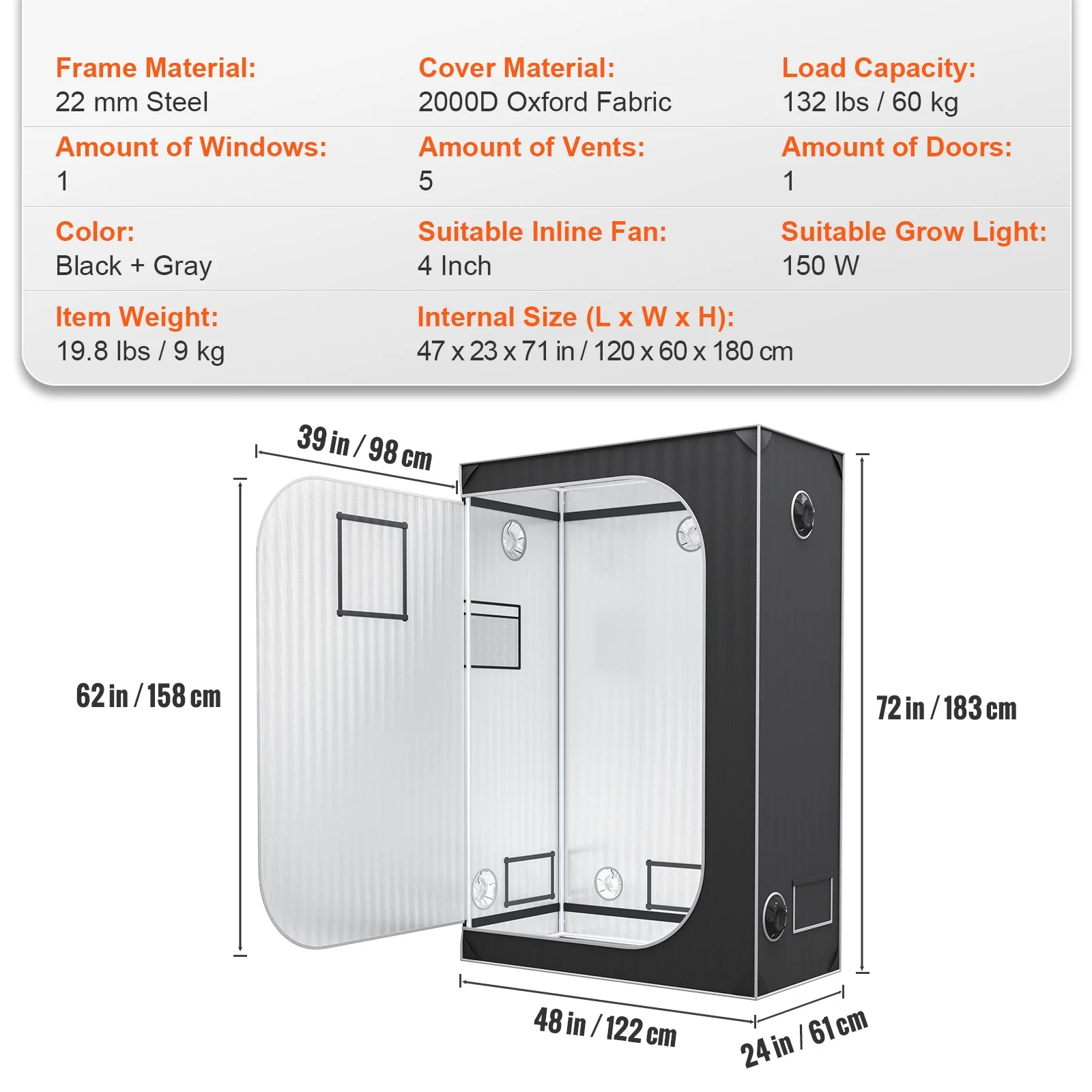 SKYSHALO Grow Tent 48 x 24 x 72 inches Indoor Grow Tent Hydroponic Window Door Tray