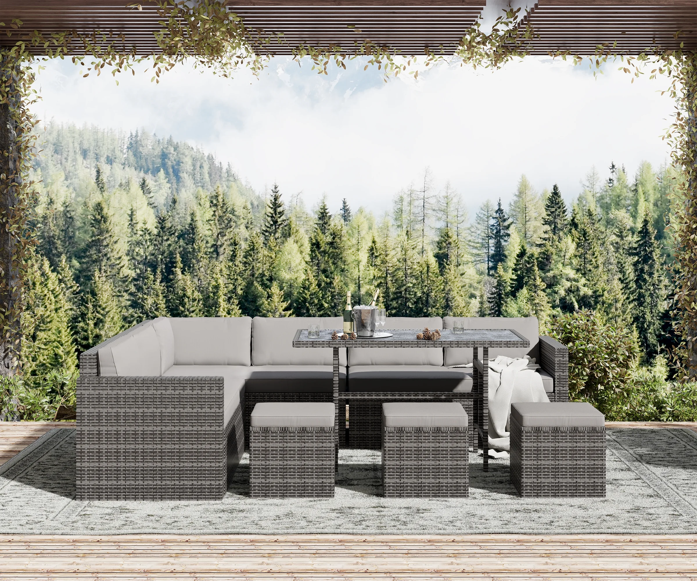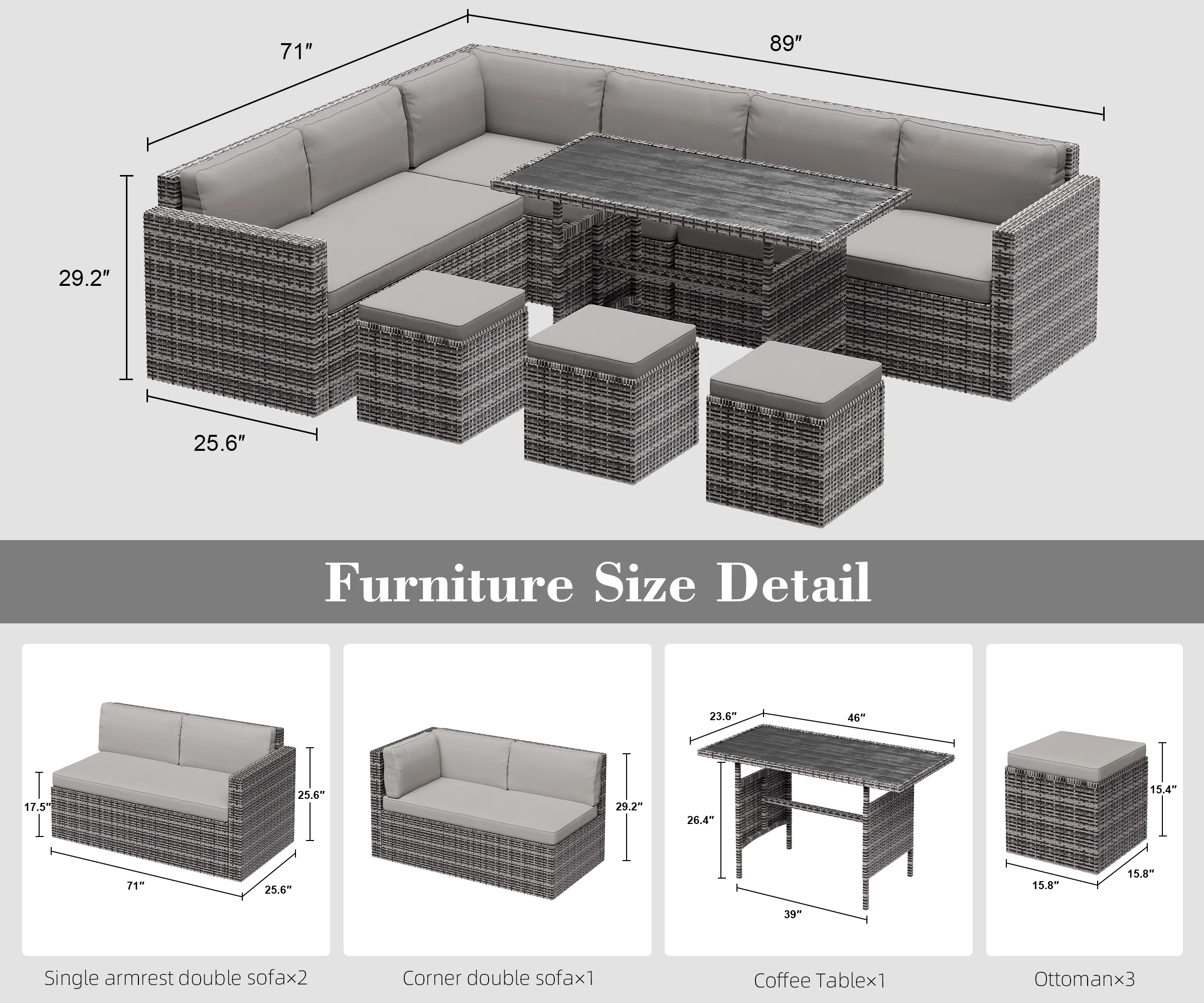 LHBcraft 7 Piece Patio Furniture Set, Outdoor Furniture Patio Sectional Sofa, All Weather PE Rattan Outdoor Sectional(Grey)