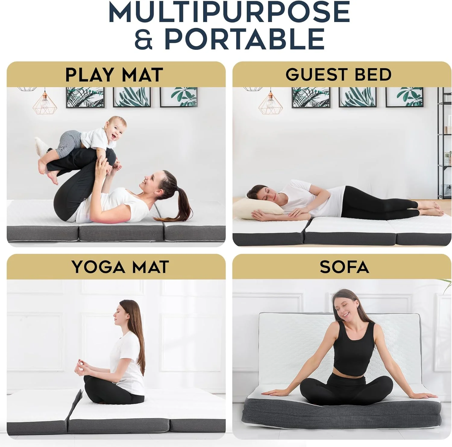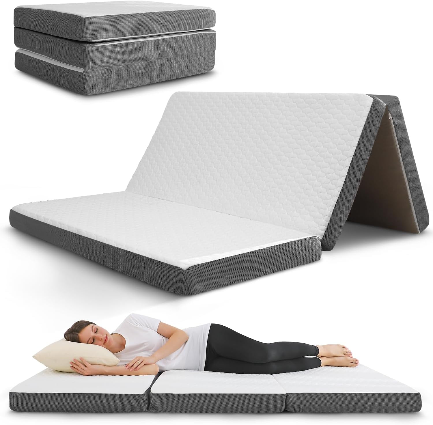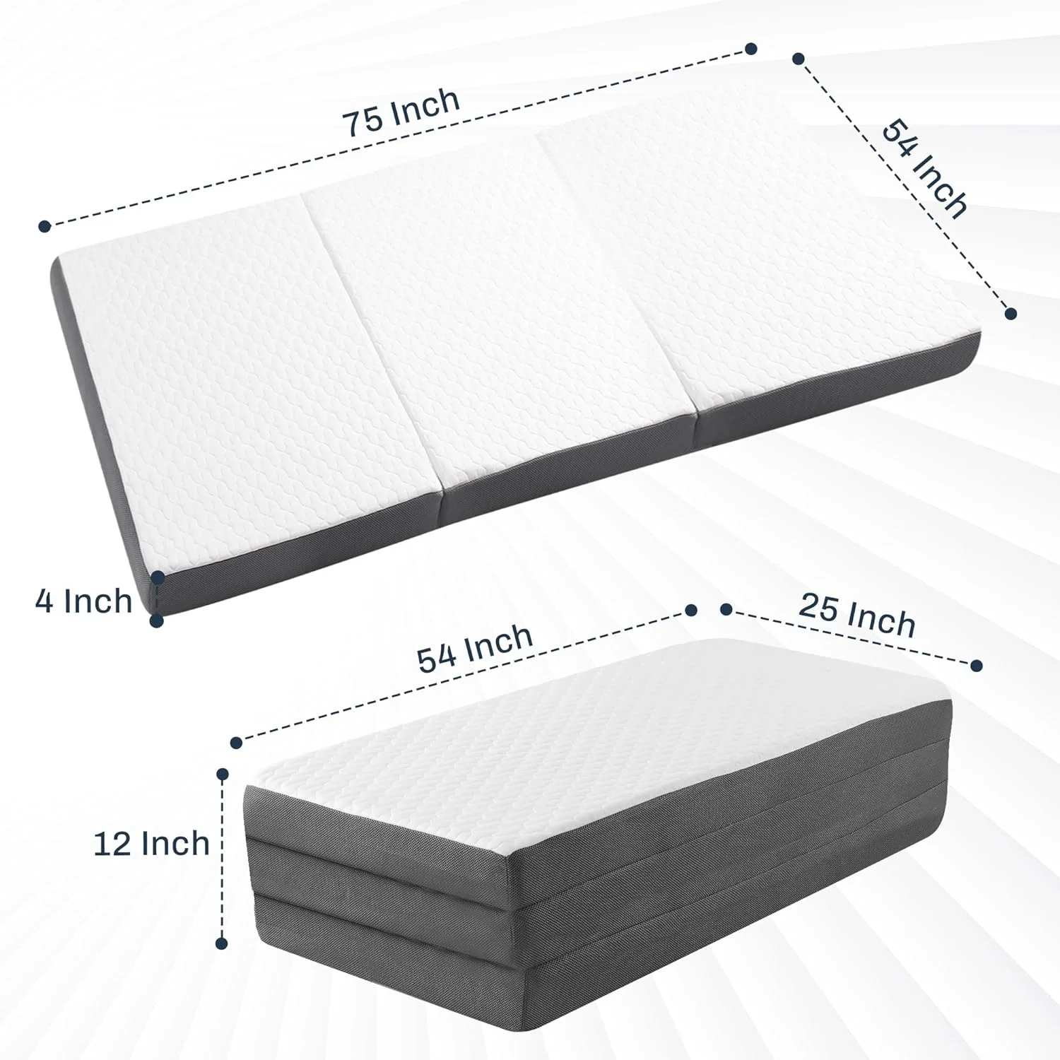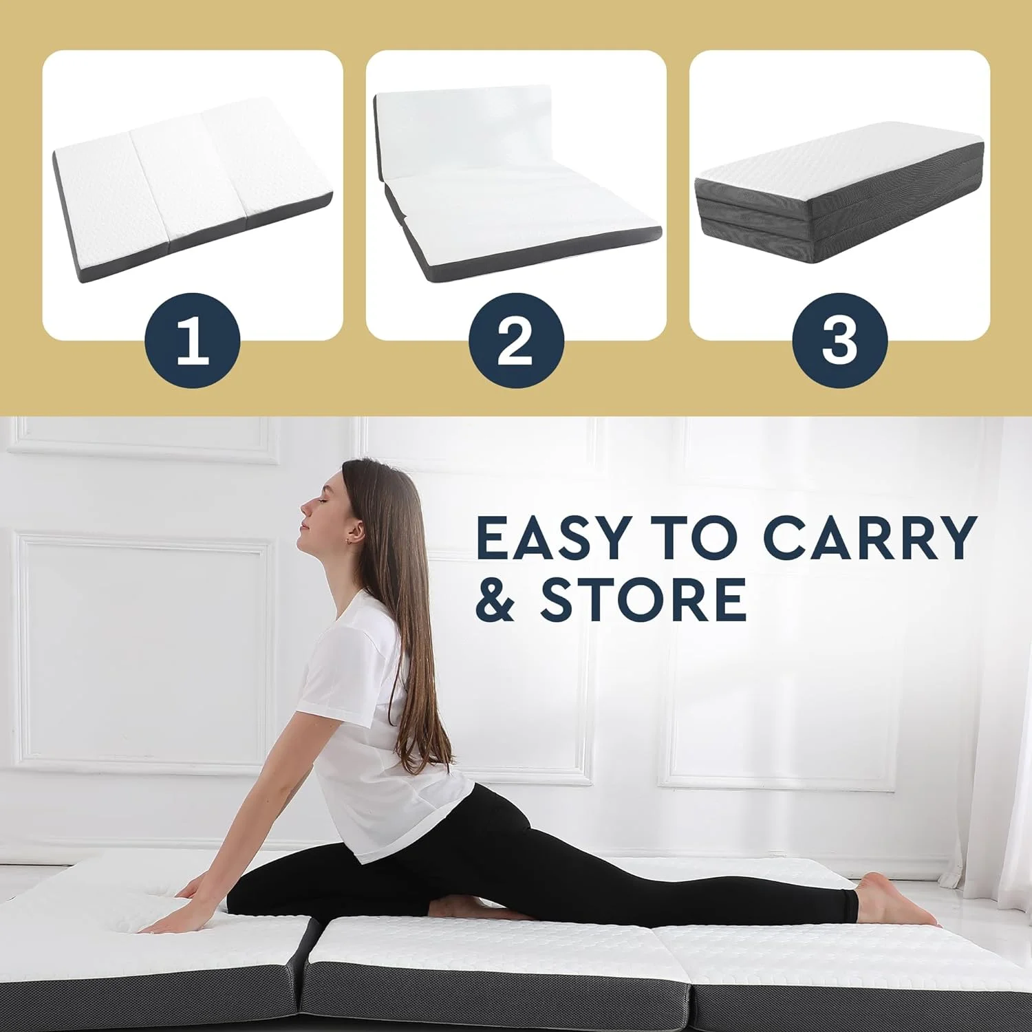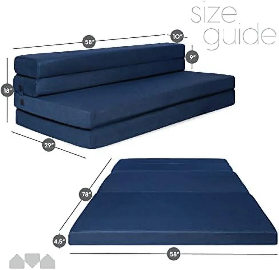 HBBOOMLIFE Tri-Fold Foam Folding Mattress and Sofa Bed for Guests- Queen Size (78"x58"x4.5")