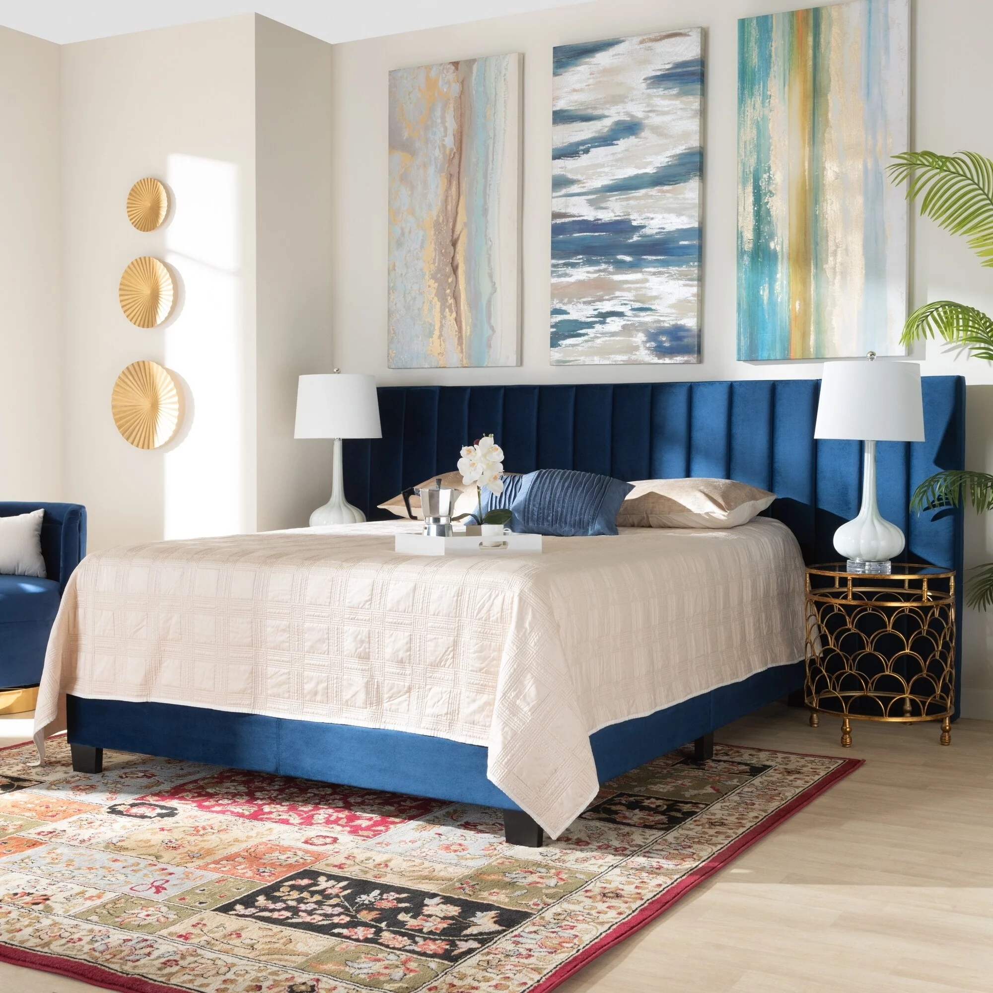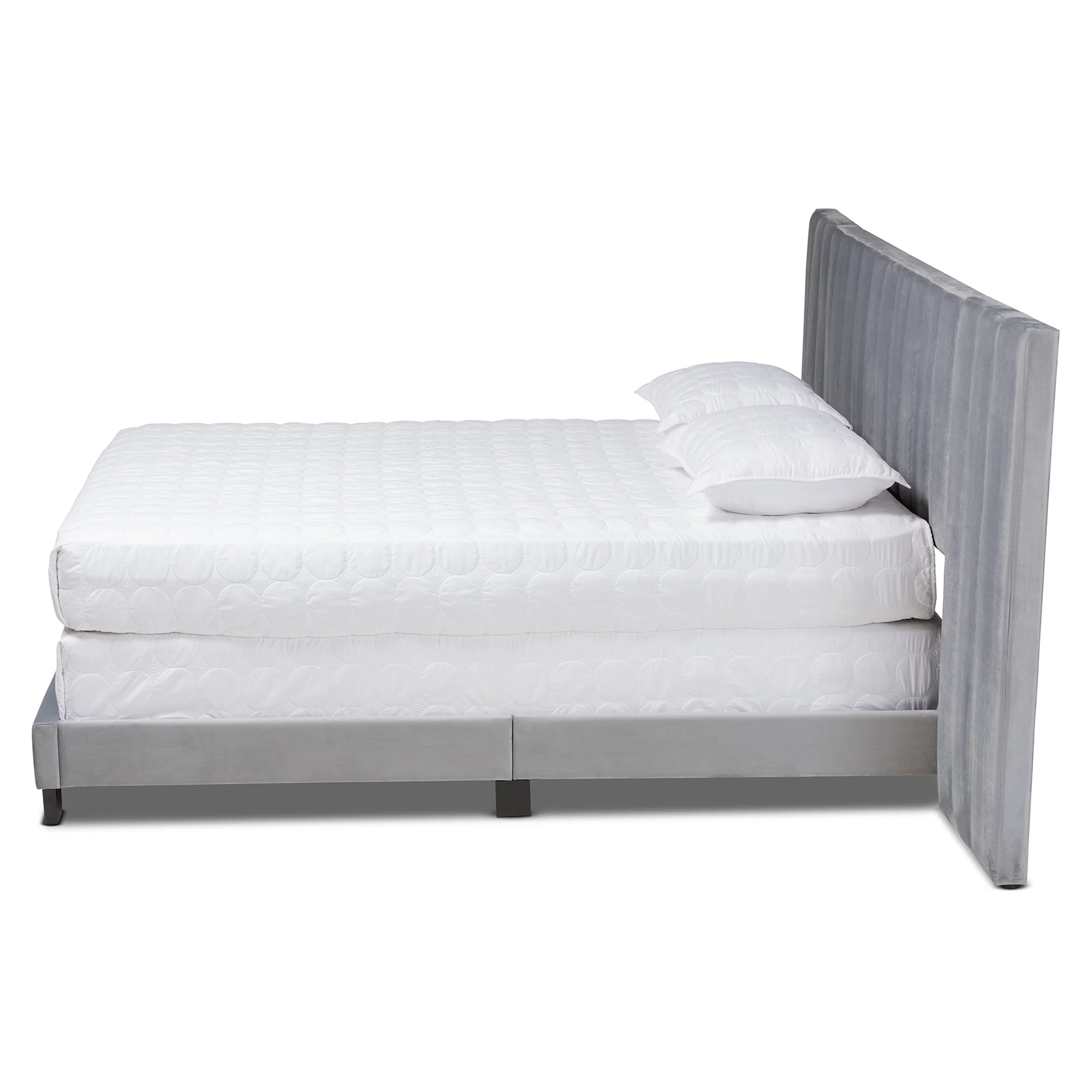 Silver Orchid Trouhanowa Glam and Luxe Upholstered Panel Bed with Extra Wide Headboard Grey King