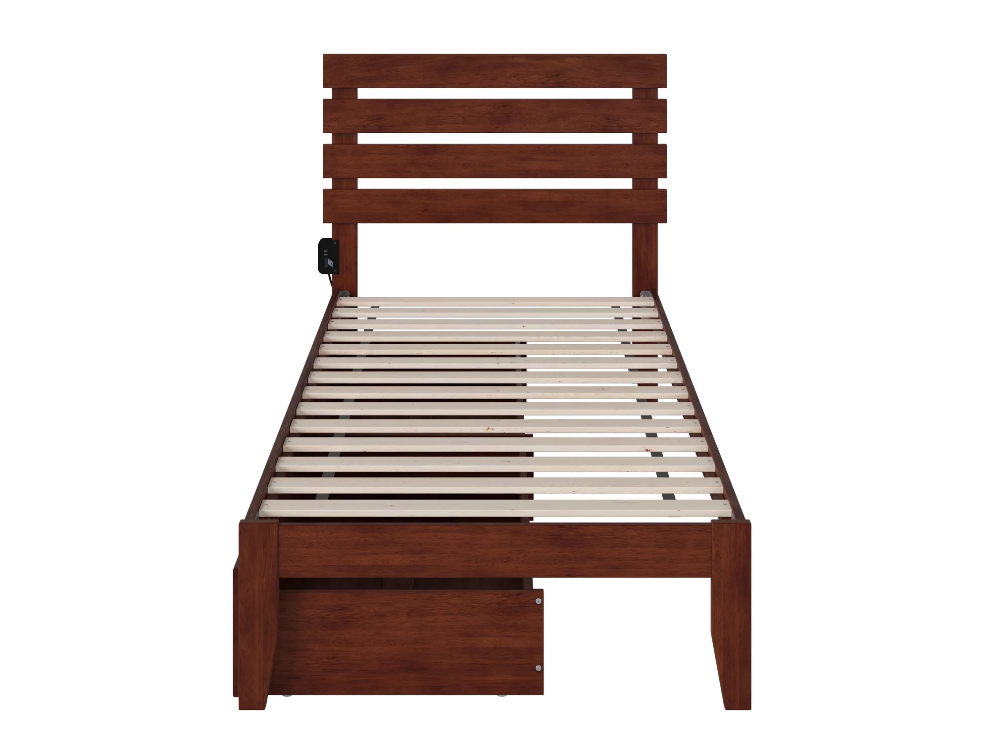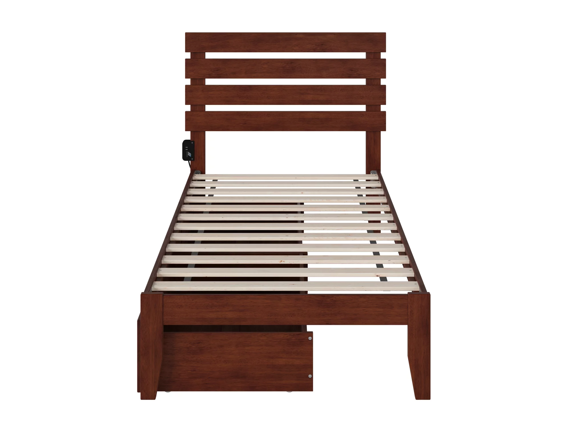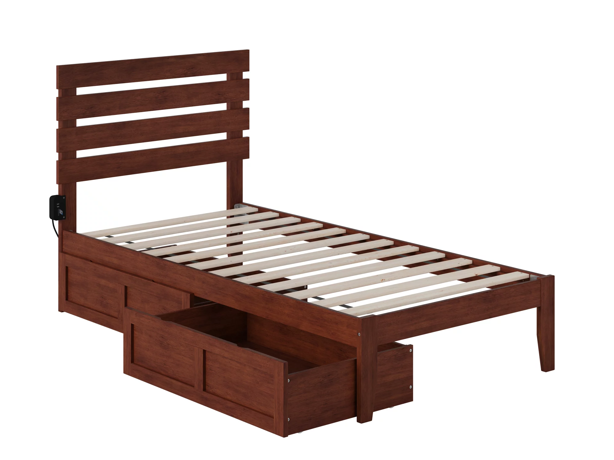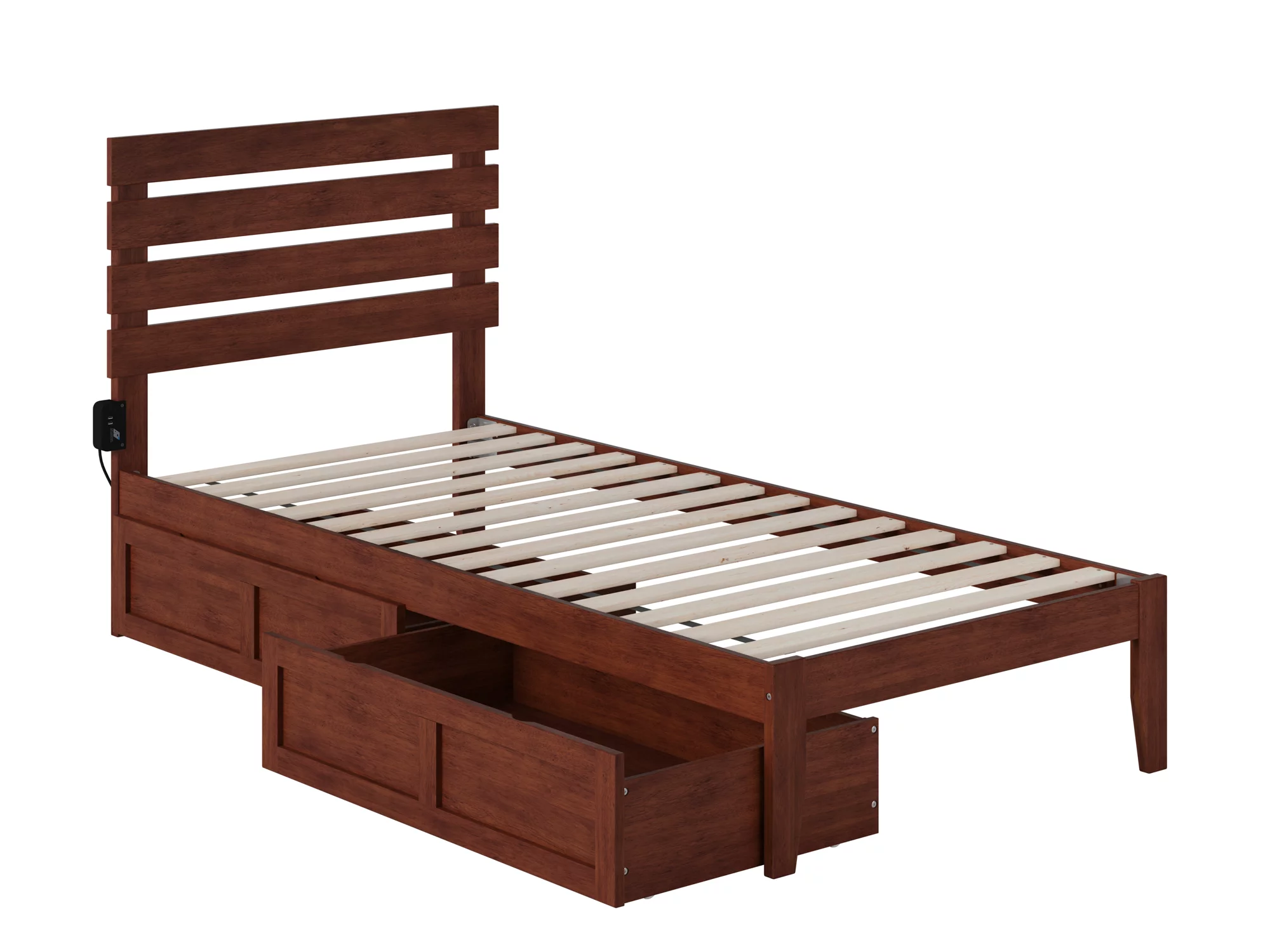 Oxford Twin Extra Long Bed with USB Turbo Charger and 2 Extra Long Drawers in Walnut