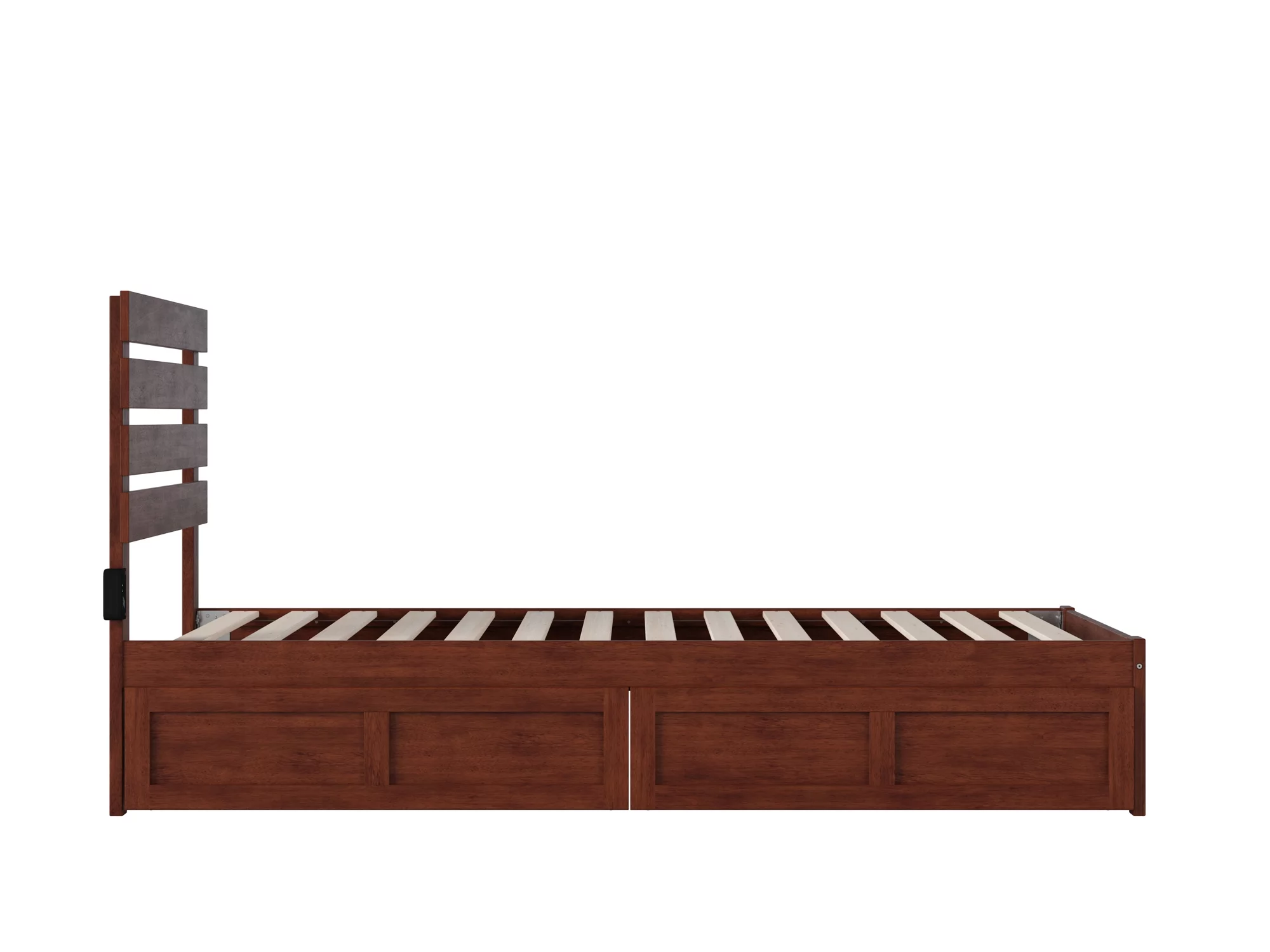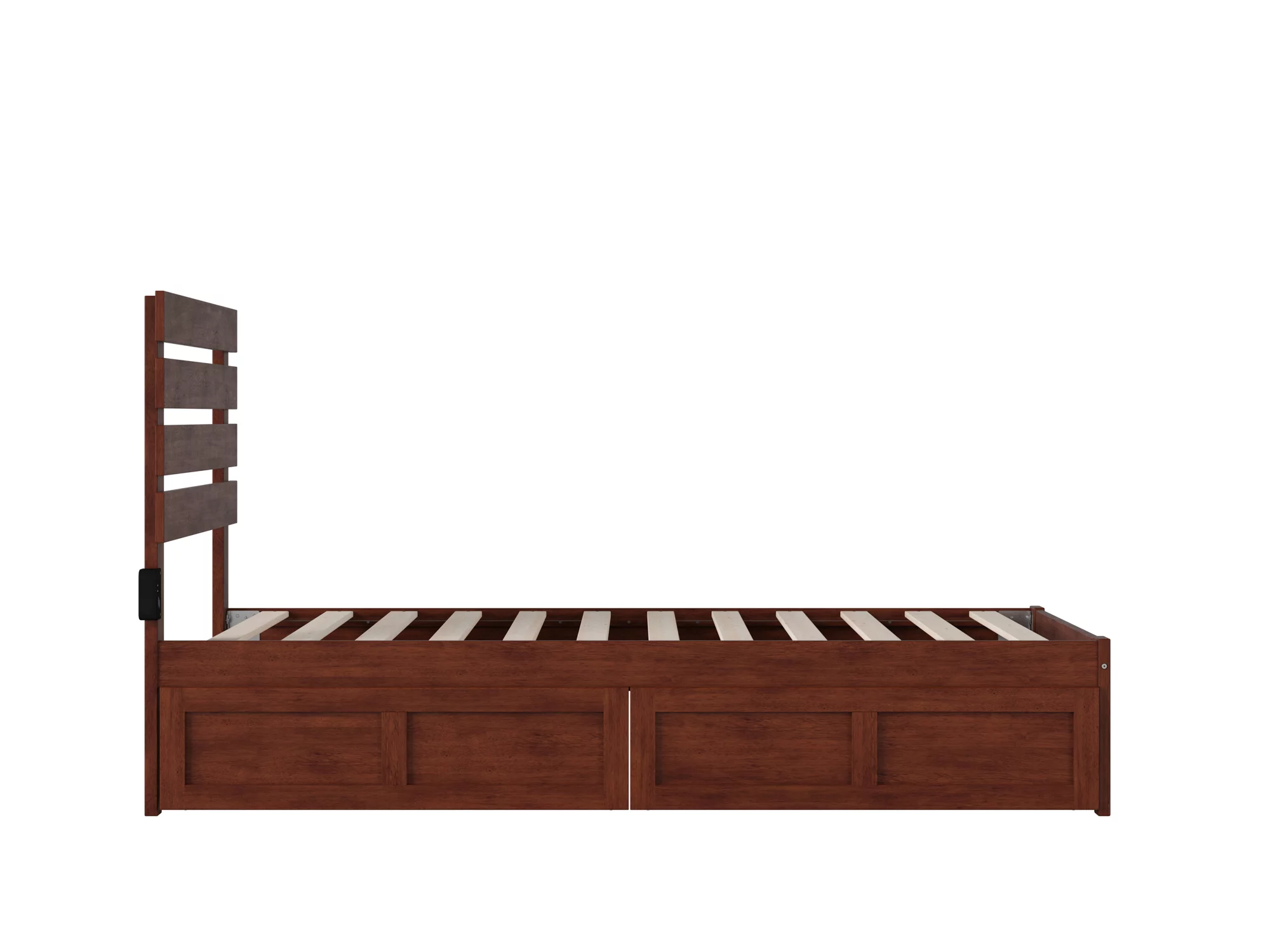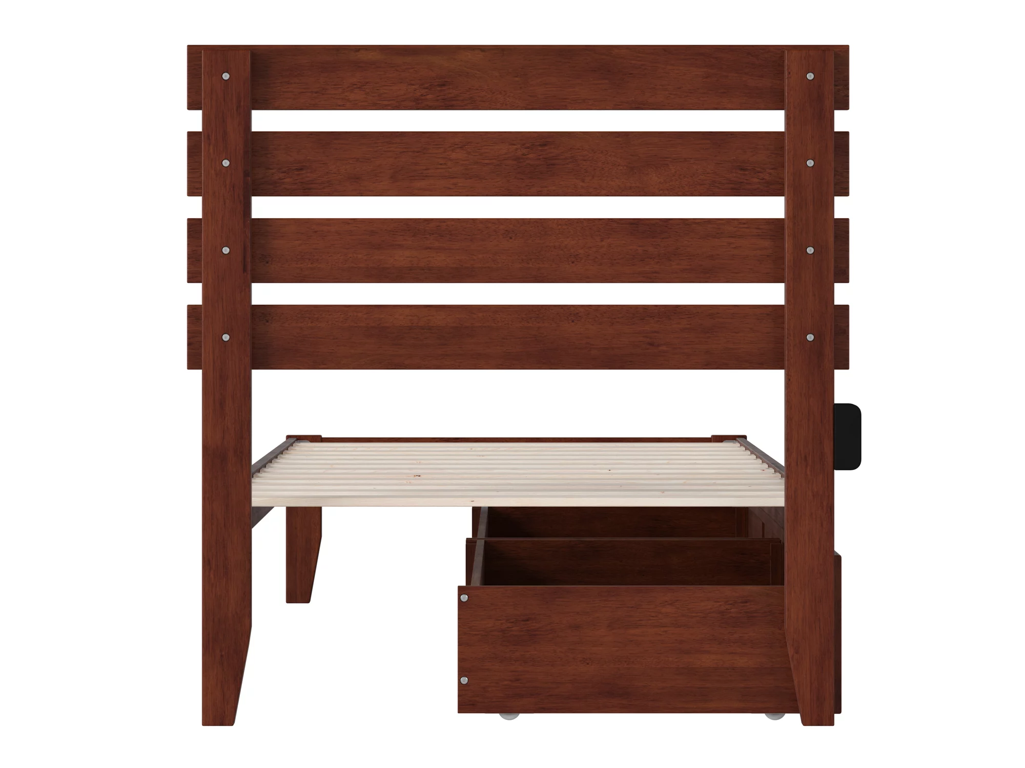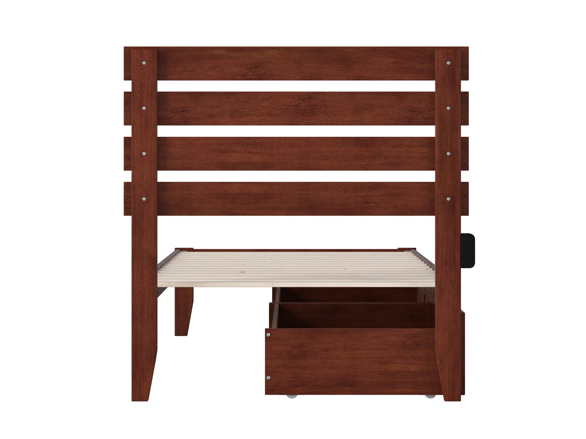 Oxford Twin Extra Long Bed with USB Turbo Charger and 2 Extra Long Drawers in Walnut