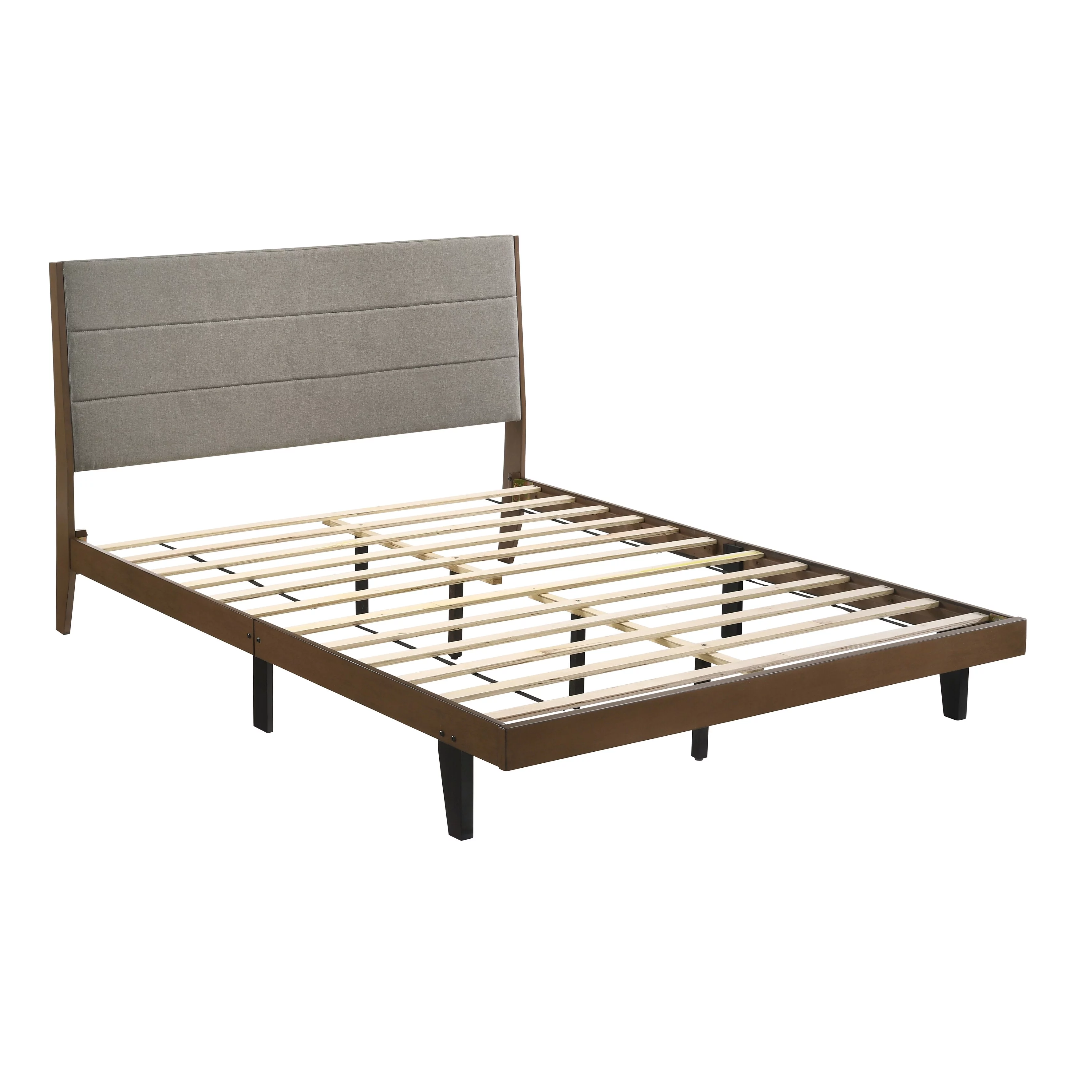 Christo Walnut Brown and Grey Channel Tufted Headboard Platform Bed King