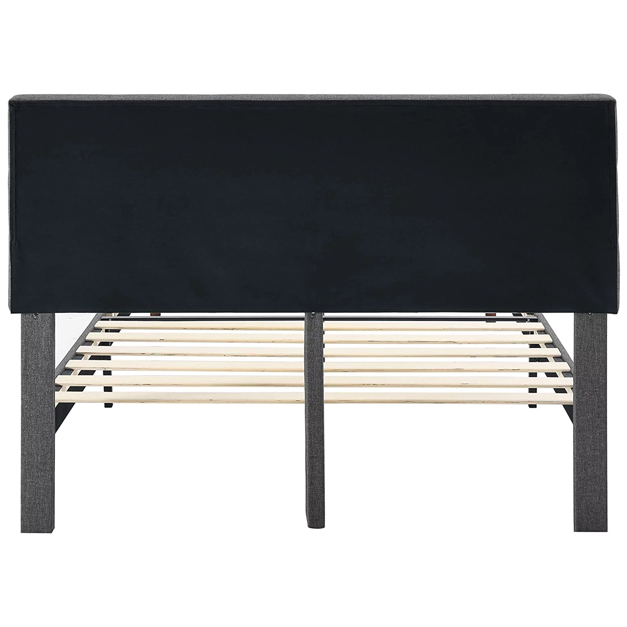 BIKAHOM Upholstered Platform Bed with Square Headboard, King, Dark Grey