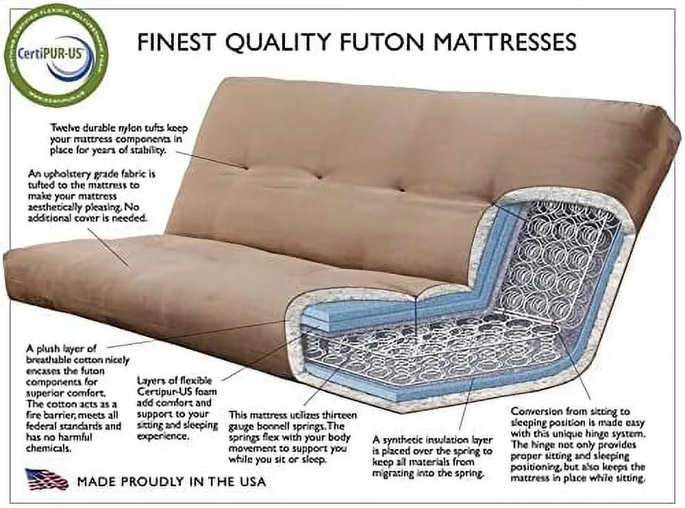Full Size Spring Futon Mattress Replacement, Sleeper Sofa Bed Mattress, Linen Cocoa