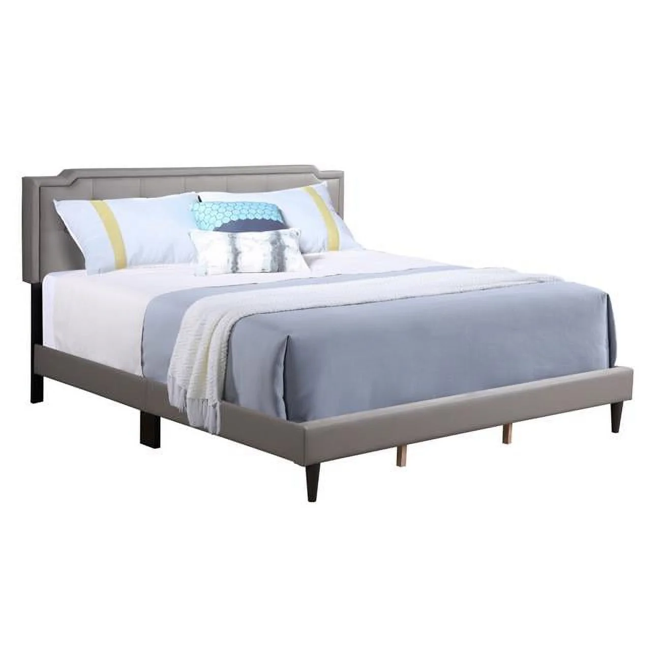 Bedroom furniture Gray Polyfiber Eastern King Size bed 1pc Bed Set Plywood HB FB Bedframe.
