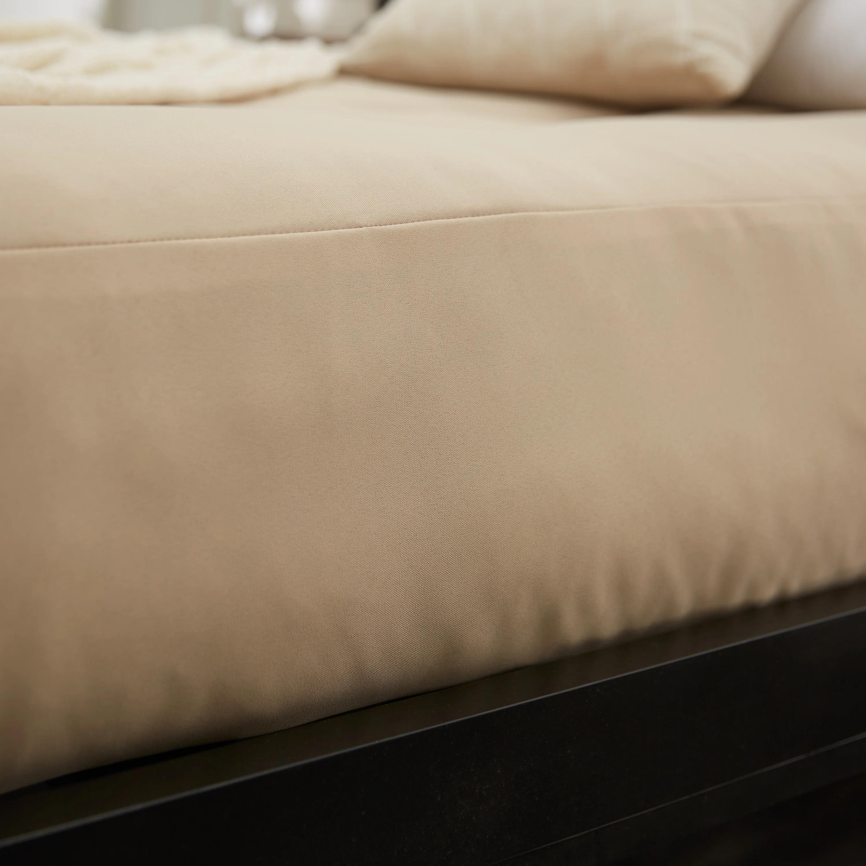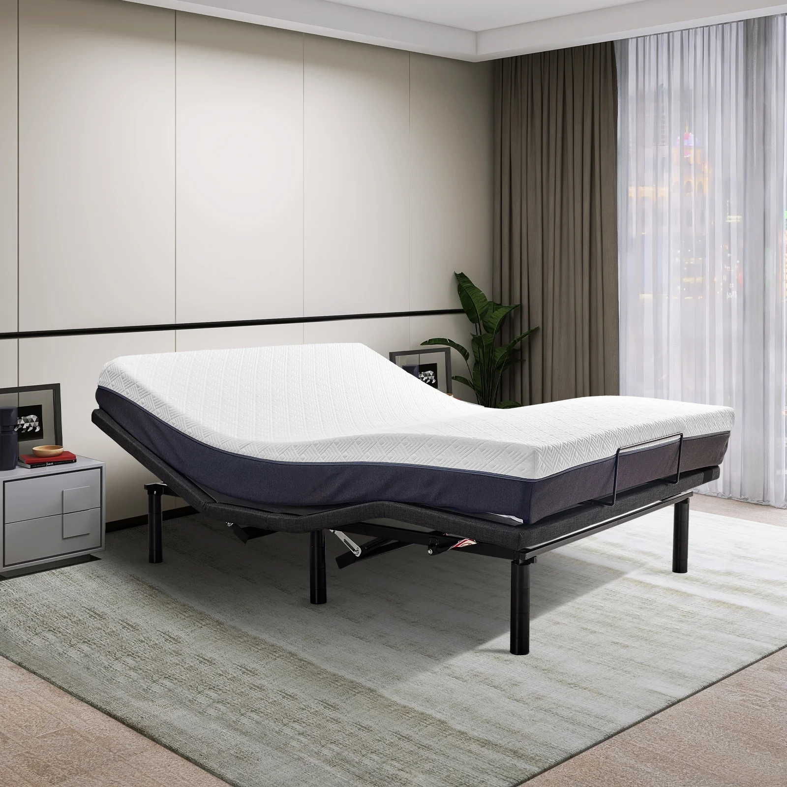 1pc Bed Eastern King Size Bedroom Furniture Beige Polyfiber Tufted Adjustable HB Solid wood