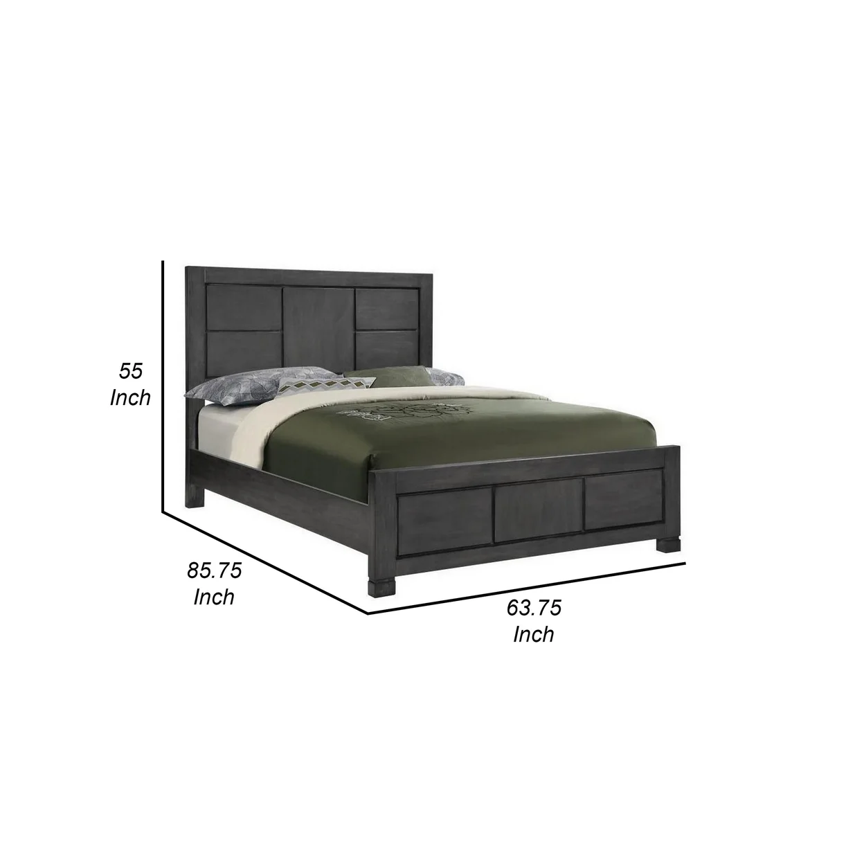 Acy Queen Bed Panel Sections on Headboard and Footboard Dark Gray Wood- Saltoro Sherpi
