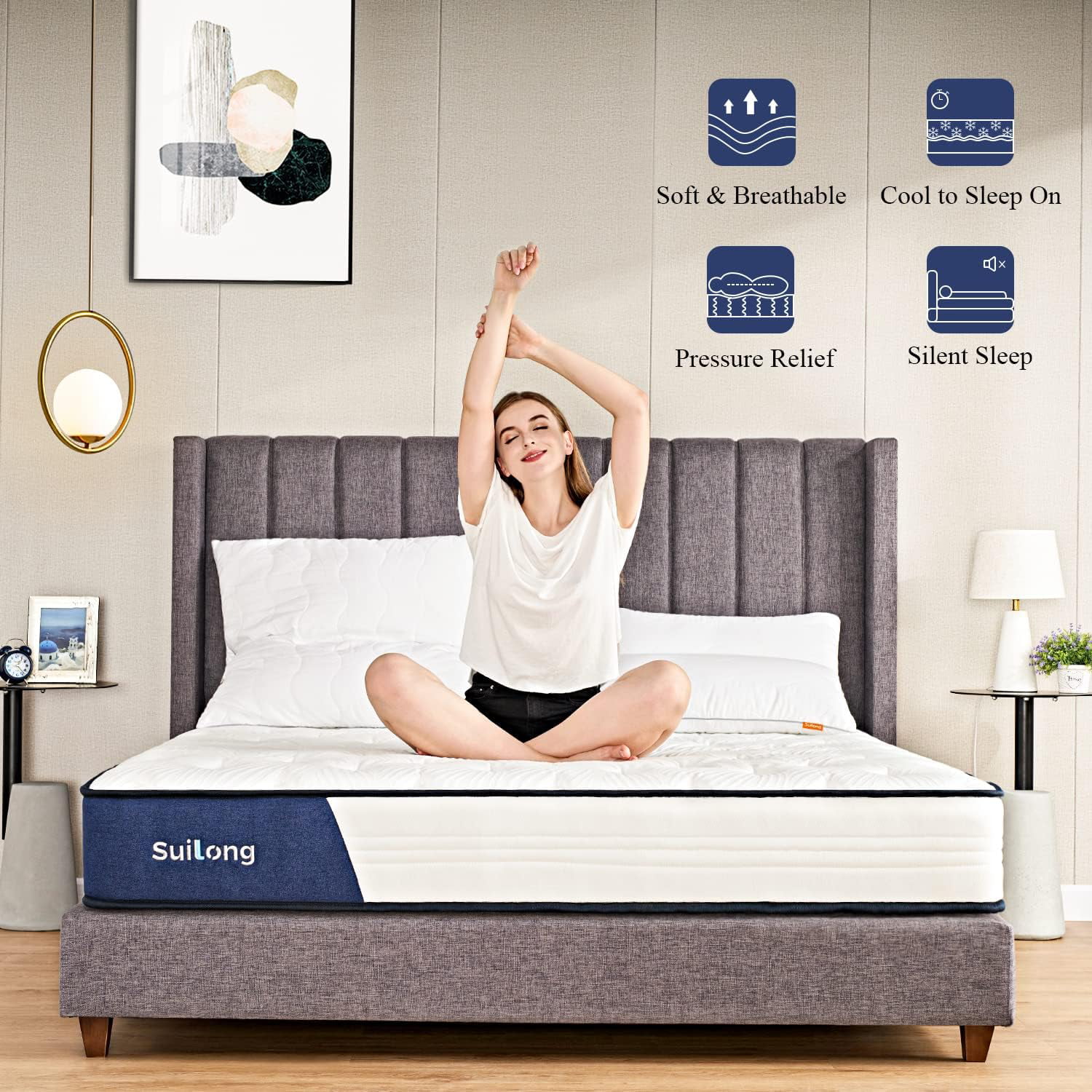 SUI LONG 10'' Full Size Mattress in a Box, Hybrid of Memory Foam and Innerspring Mattress, Medium Firm