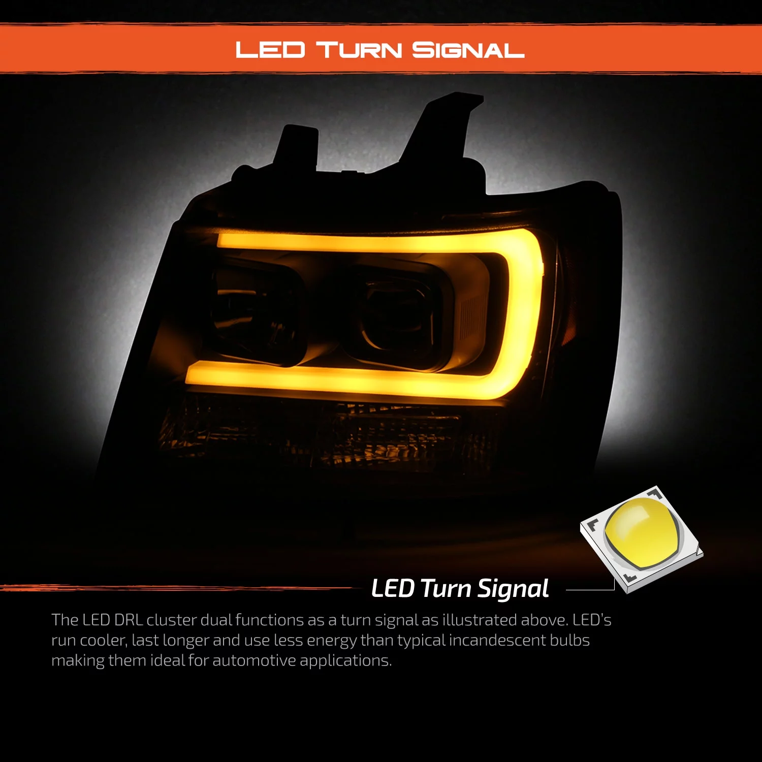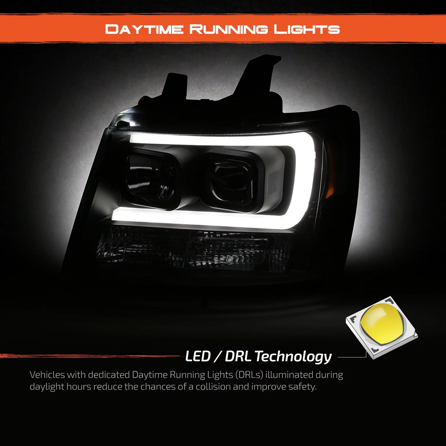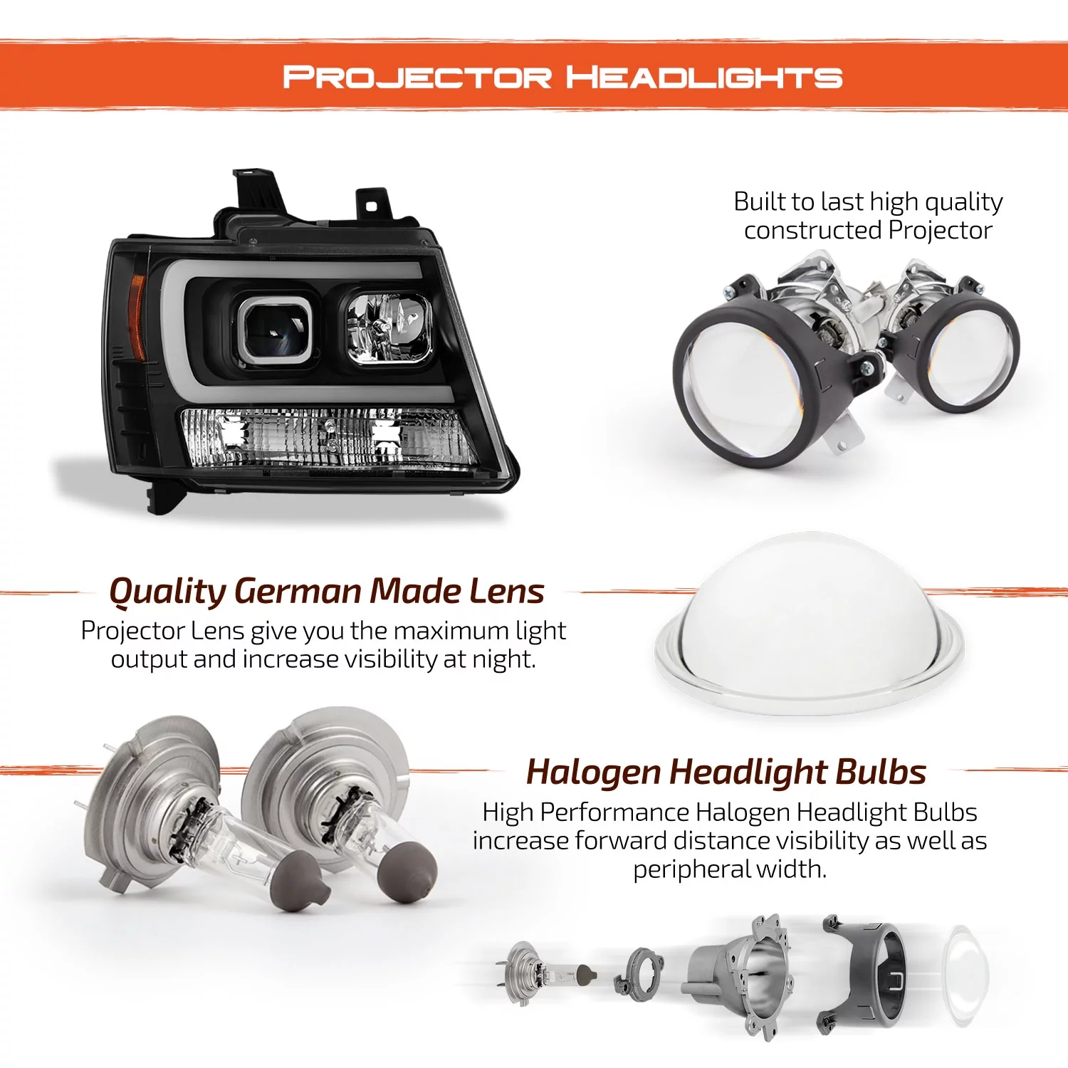 AKKON - Fits 2007-2013 Chevy Avalanche 2007-2014 Tahoe Suburban 1500 / 2500 C-Tube Projector Black Headlights Pair Left + Right