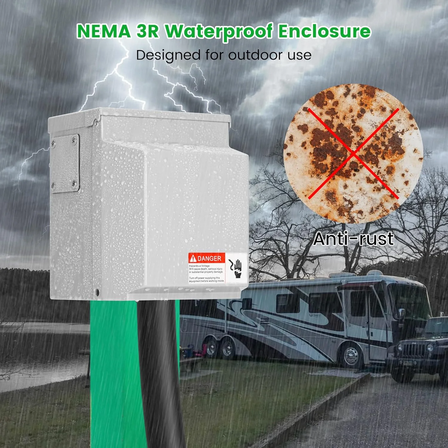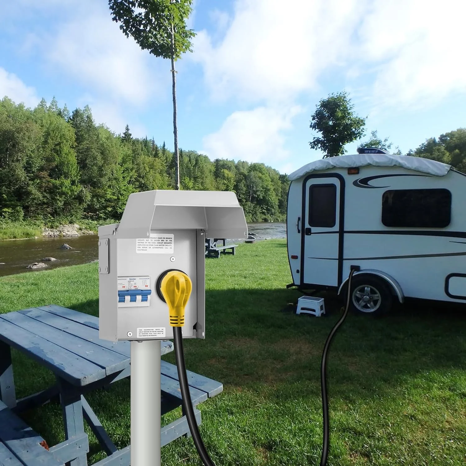 briidea 50 Amp Temporary RV Power Outlet with Breaker, Outdoor Breaker Box