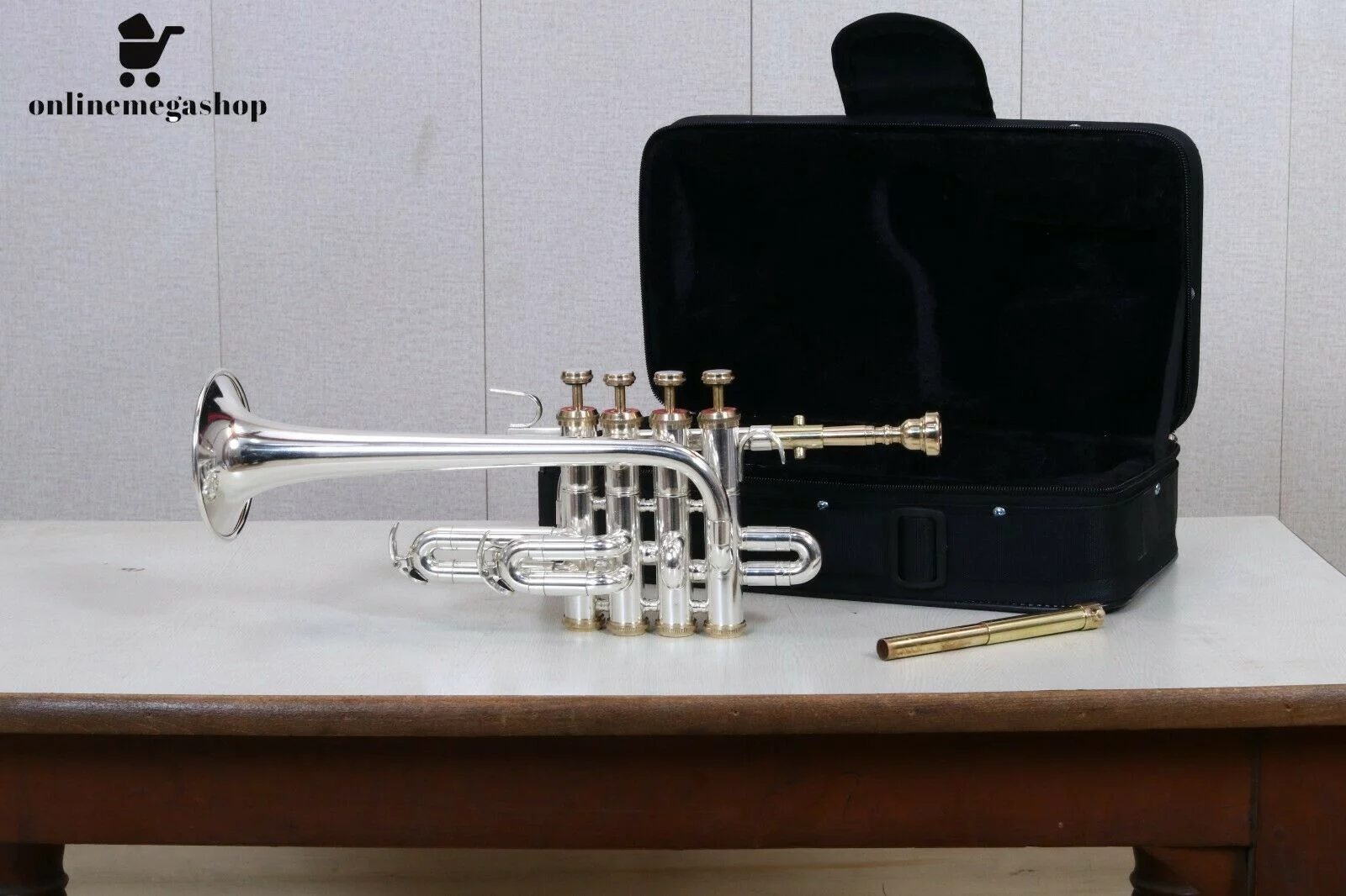 Piccolo Trumpet Silver And Brass Color Bb/A Pitch With Hard Case Bag And Mouthpiece