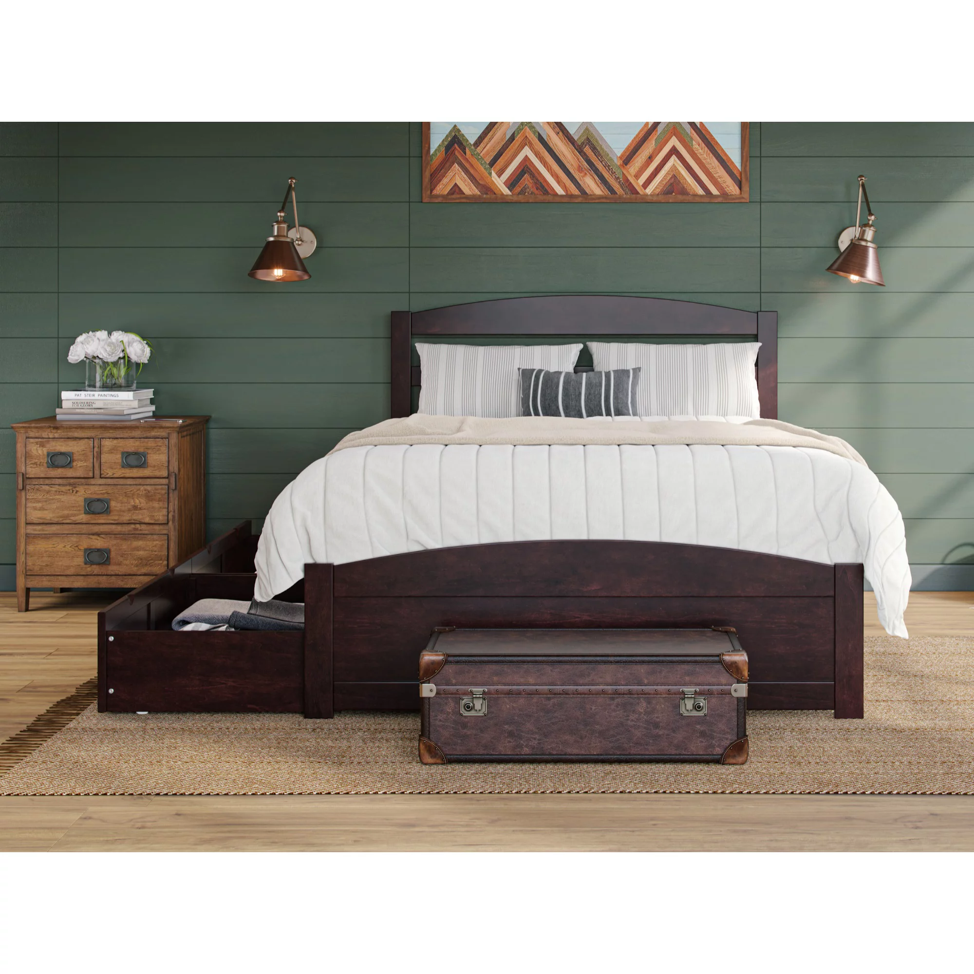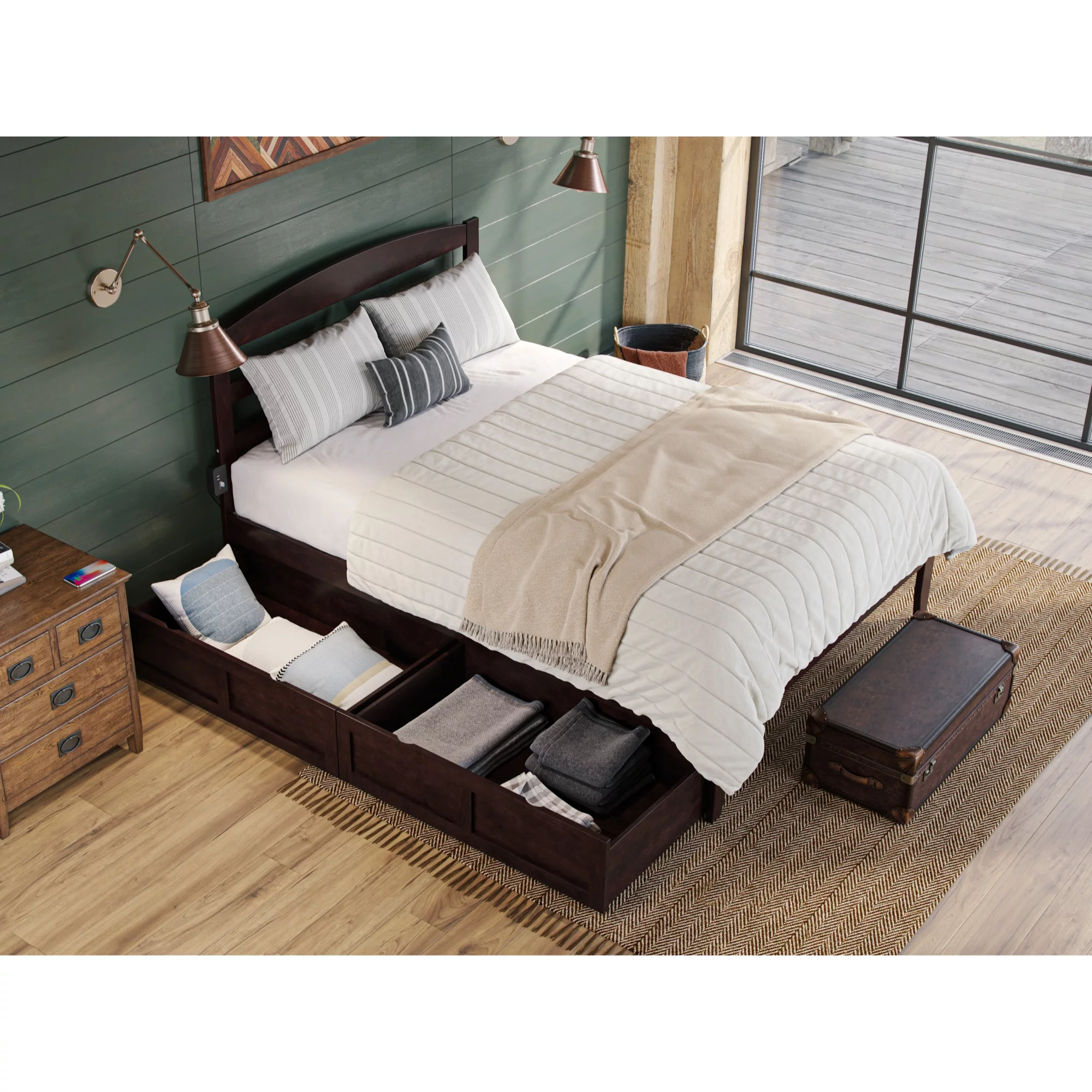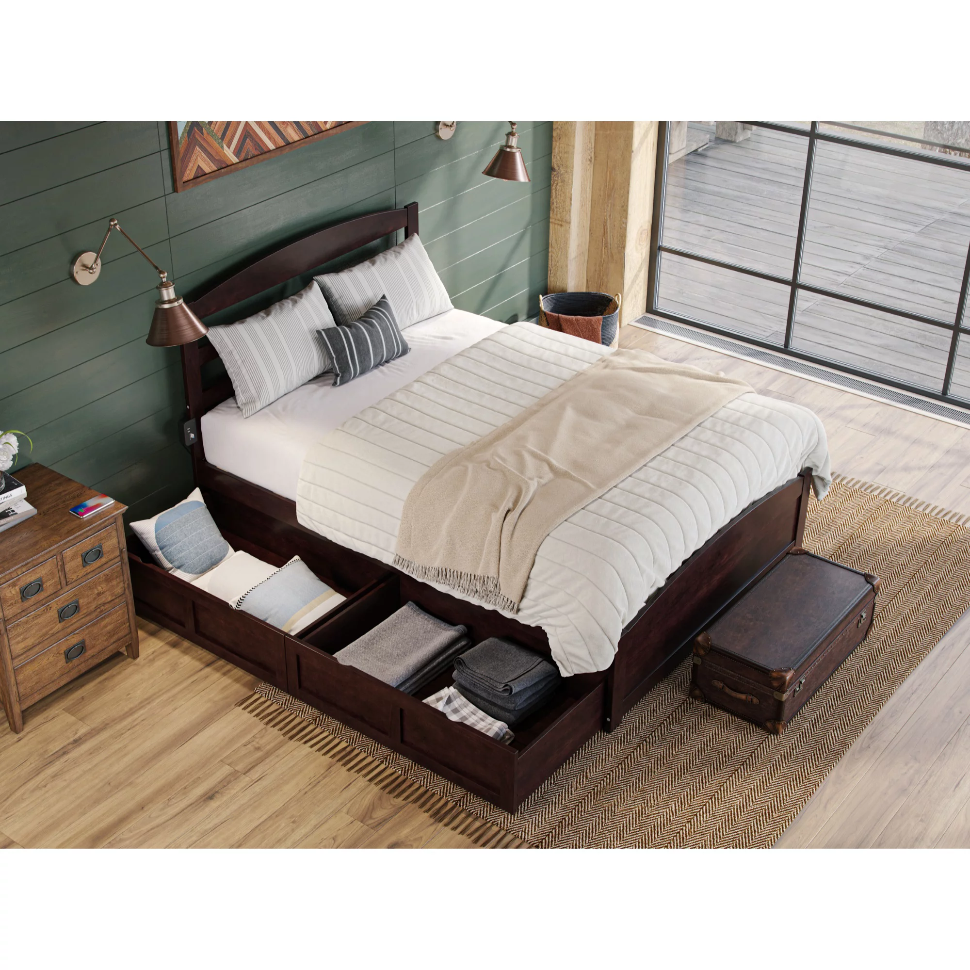 Warren, Solid Wood Platform Bed with Storage Drawers (Set of 2), Queen, Espresso