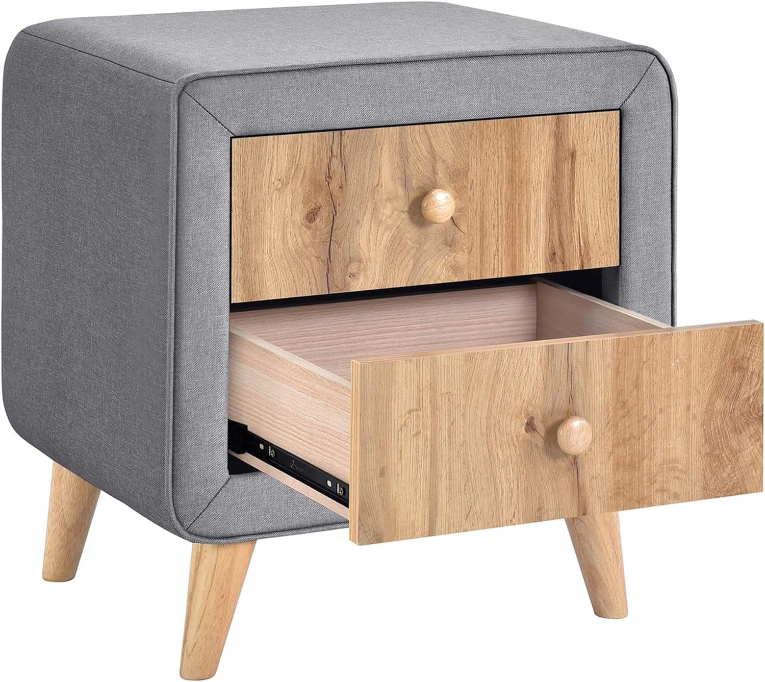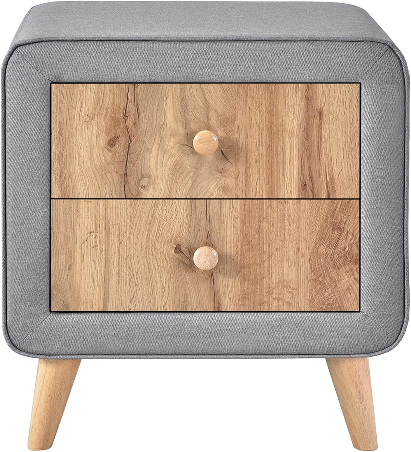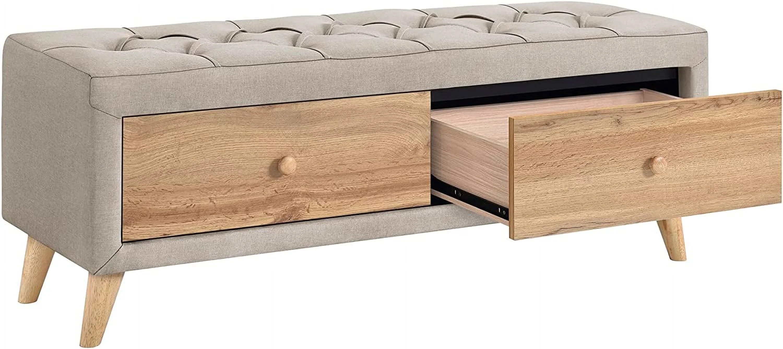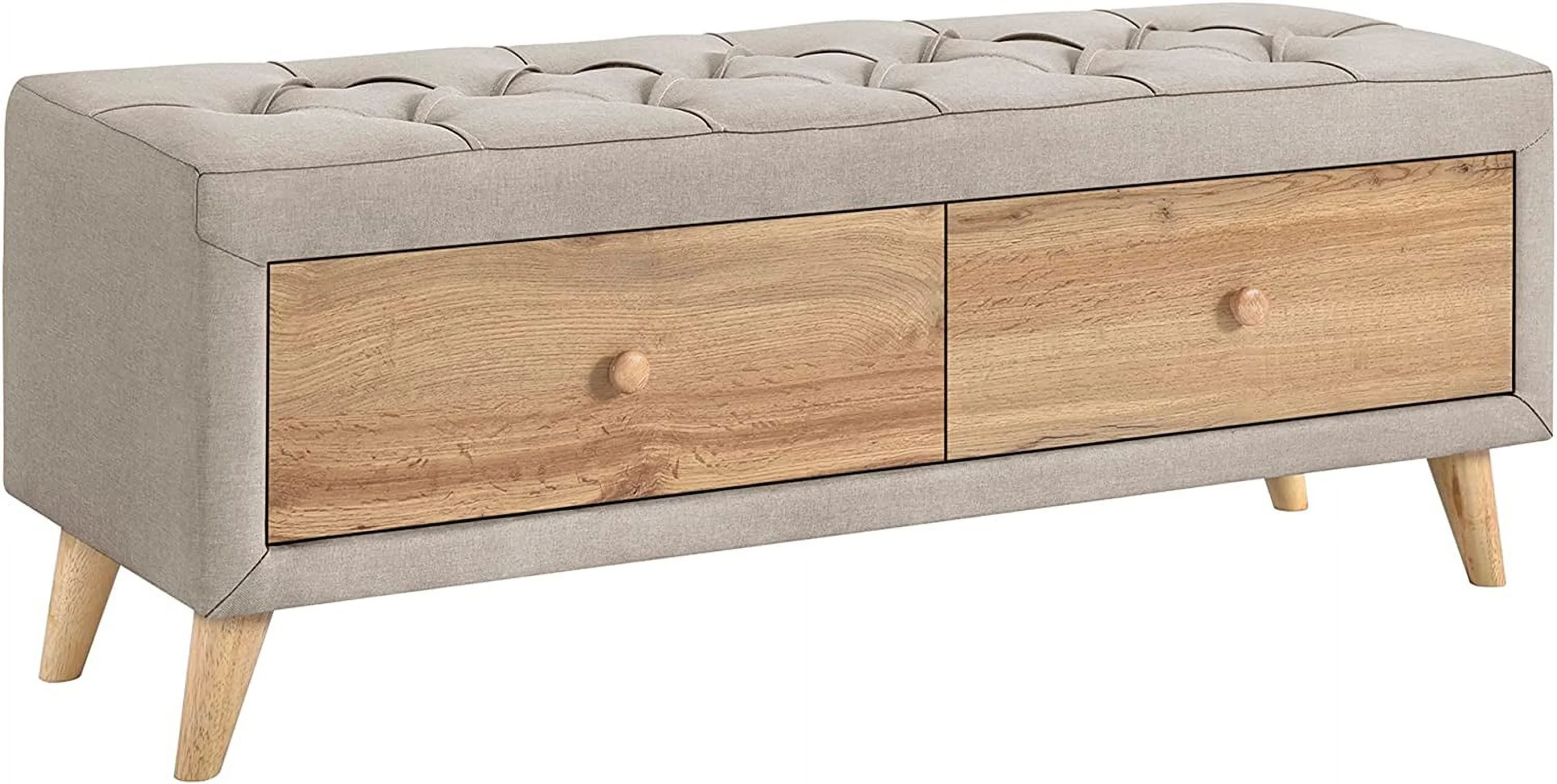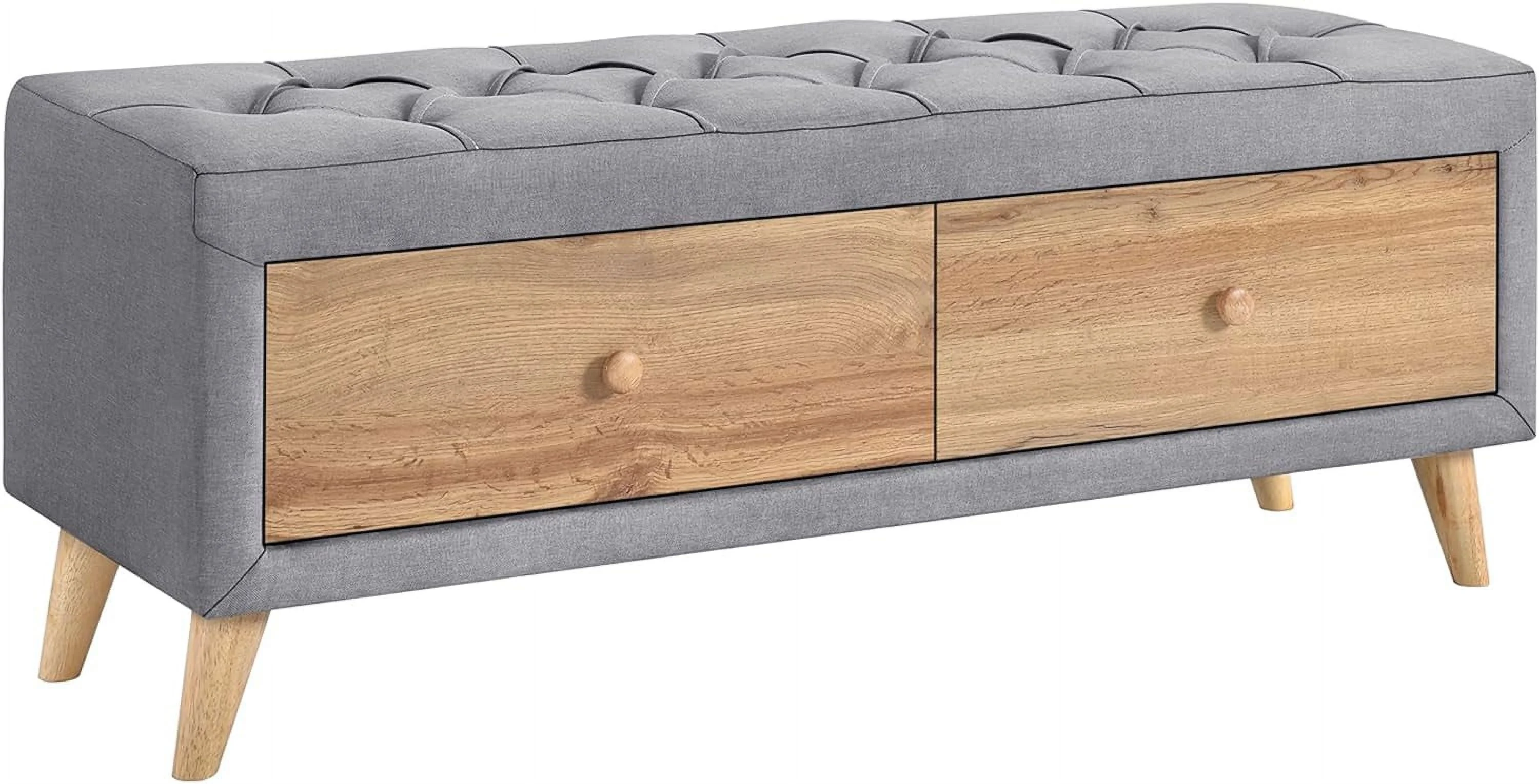 Royard Oaktree 4-Pieces Bedroom Sets Queen Size Upholstered Platform Bed with Two Nightstands and Storage Bench, Gray
