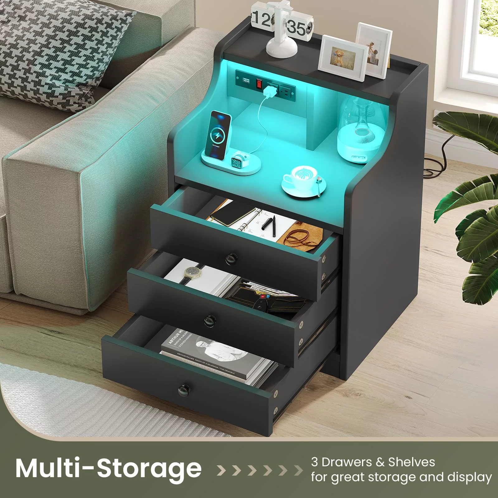 Transitional Style Two-tone Grey White Finish Queen Size 3pc Storage Headboard Platform Bed Nightstand Set Wooden Bedroom Furniture