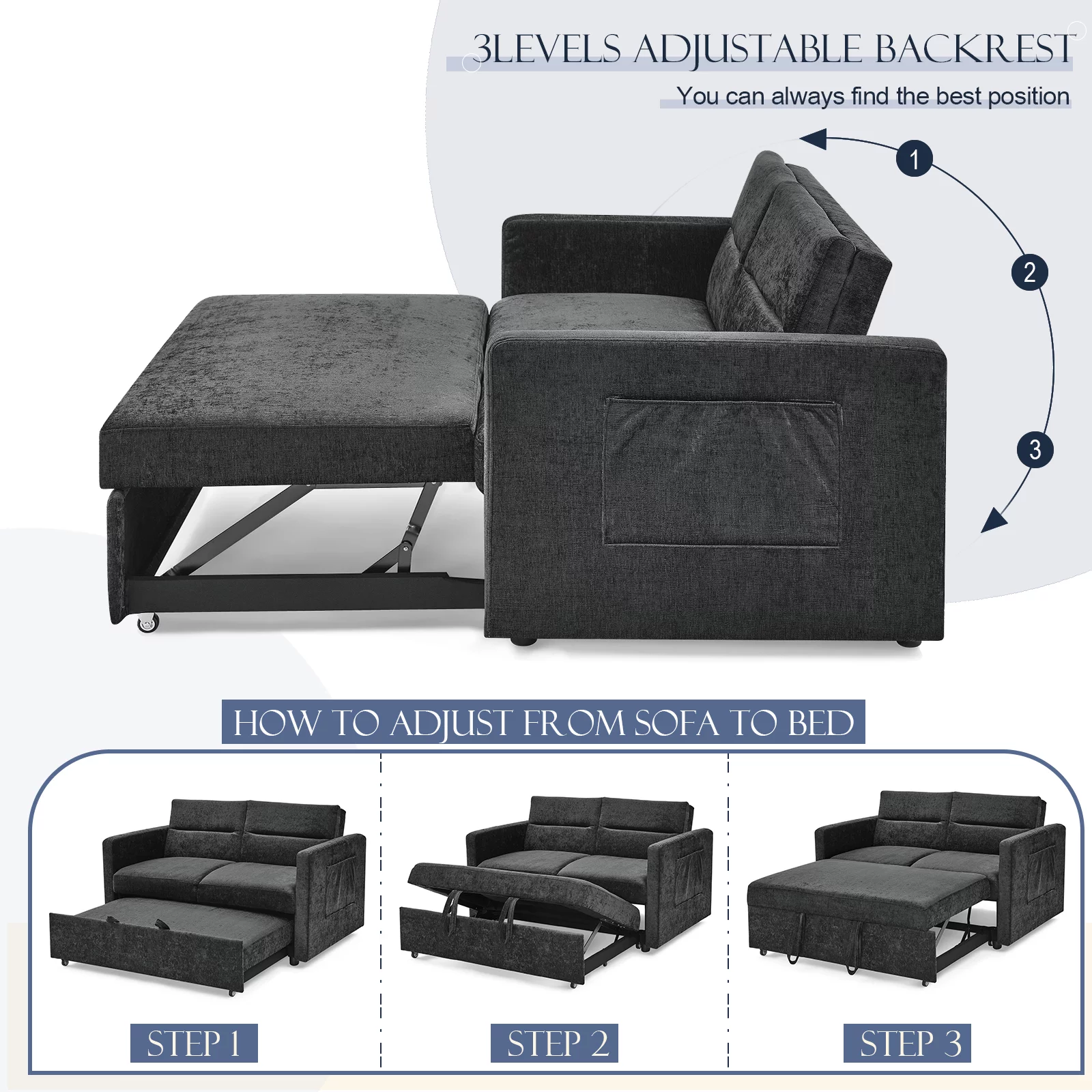 CoSoTower 3-Pieces Bedroom Sets Queen Size Tufted Upholstered PU Platform Bed with Nightstand and Storage Dresser, White