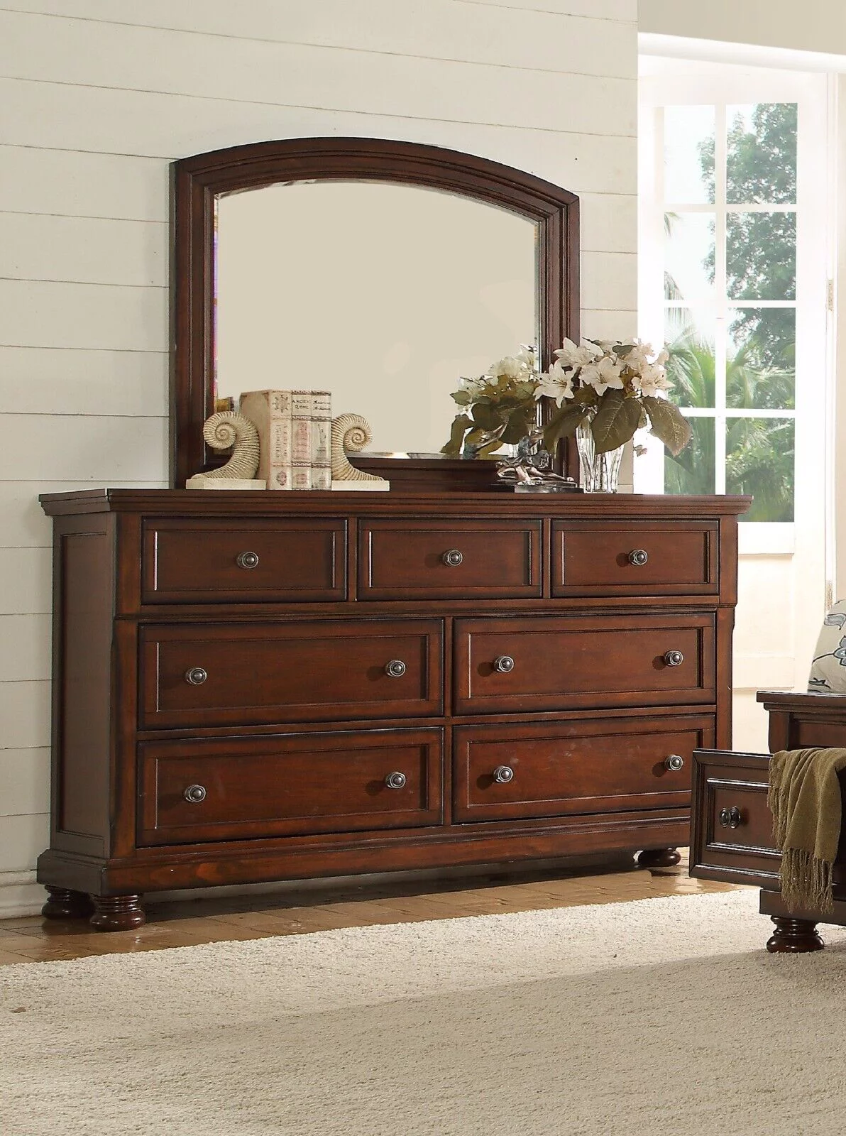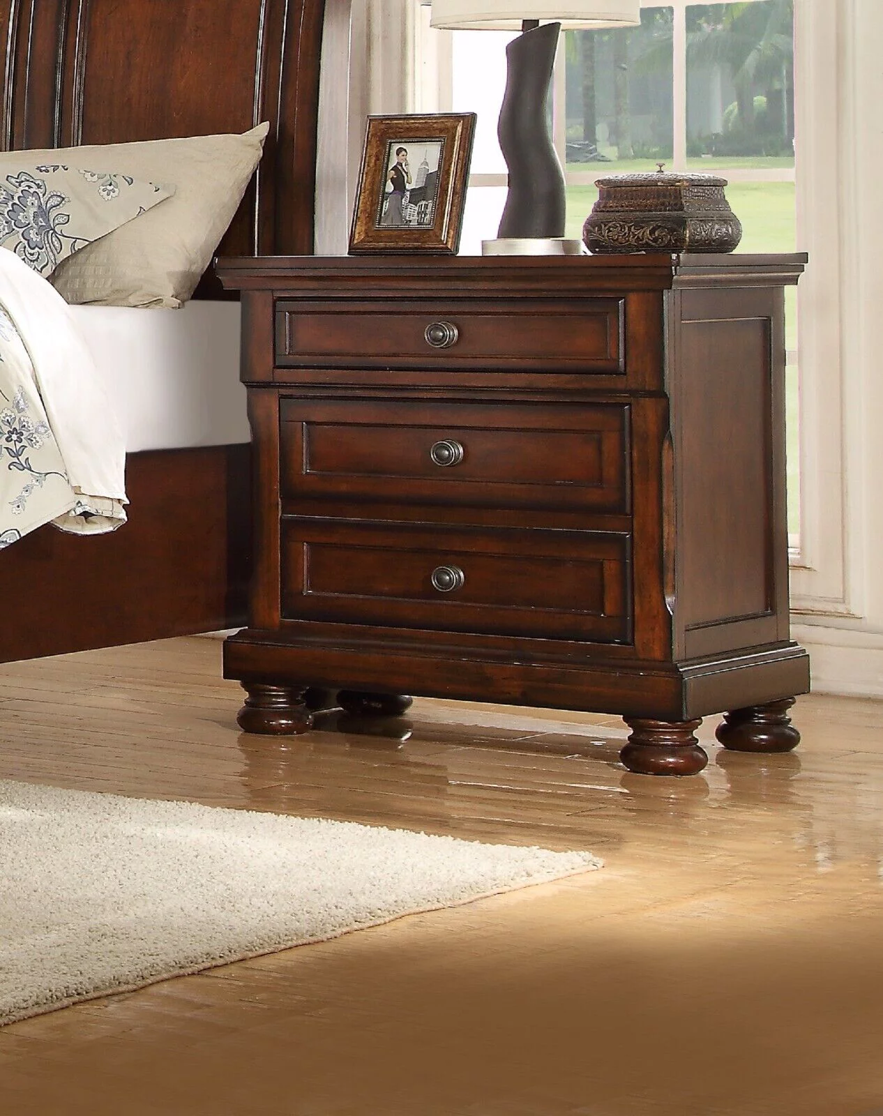 Traditional Black Finish 4pc Queen Size Bed 8 Storage Drawers Nightstand Dresser Mirror Hardwood