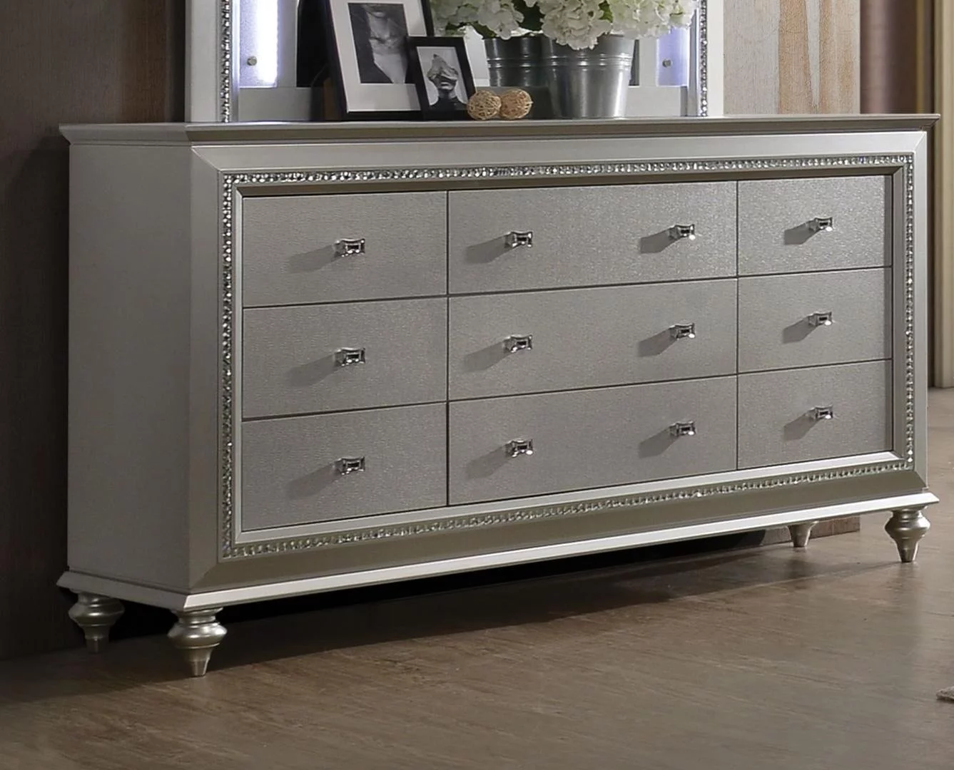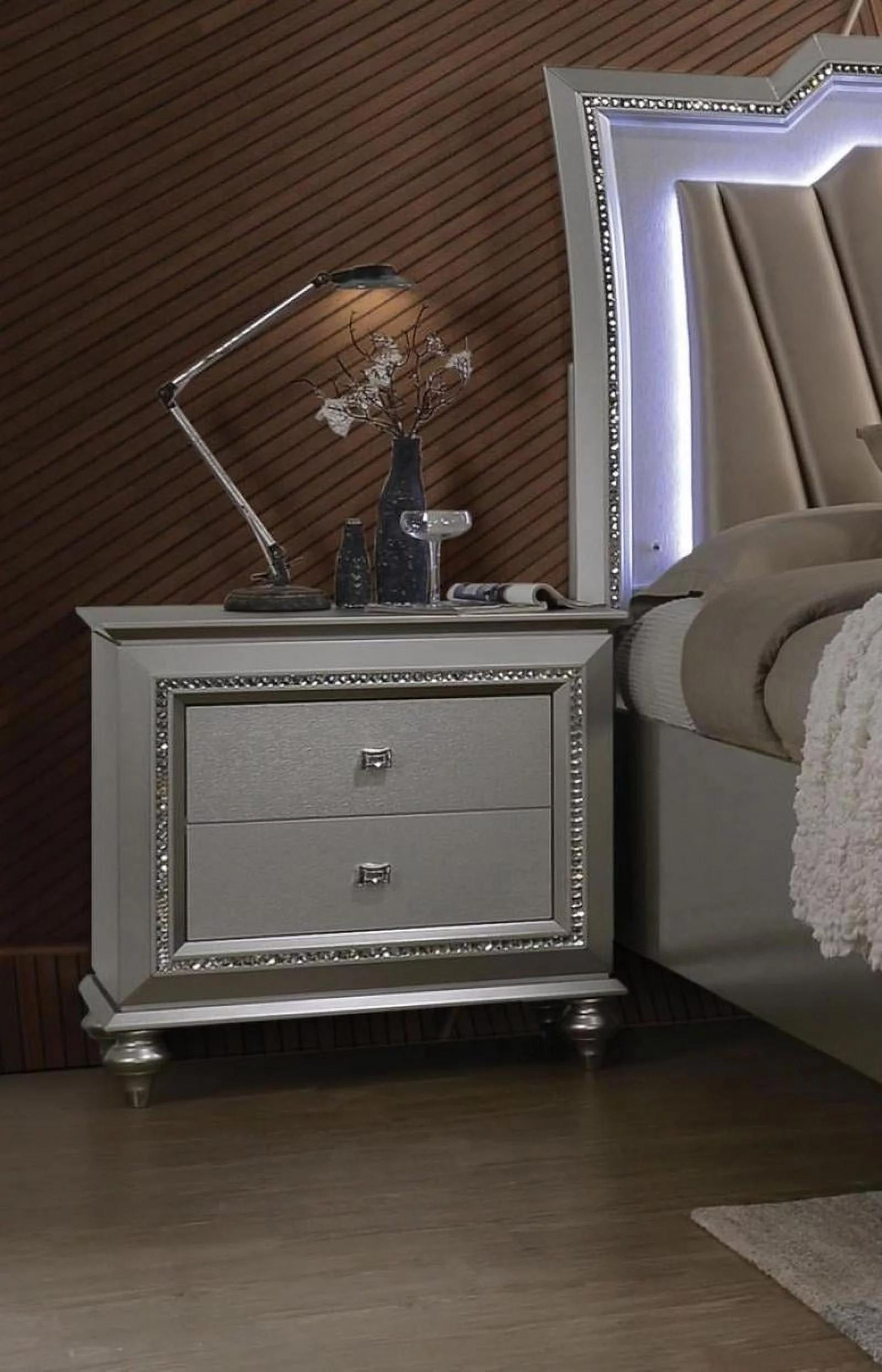 Bedroom 4pc Set Two-Tune Finish Unique Style Collection Queen Size Bed Footboard Storage Hidden Jewelry Drawers