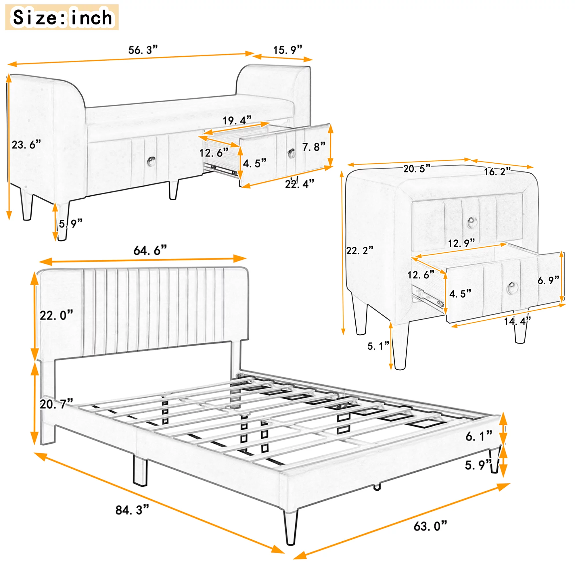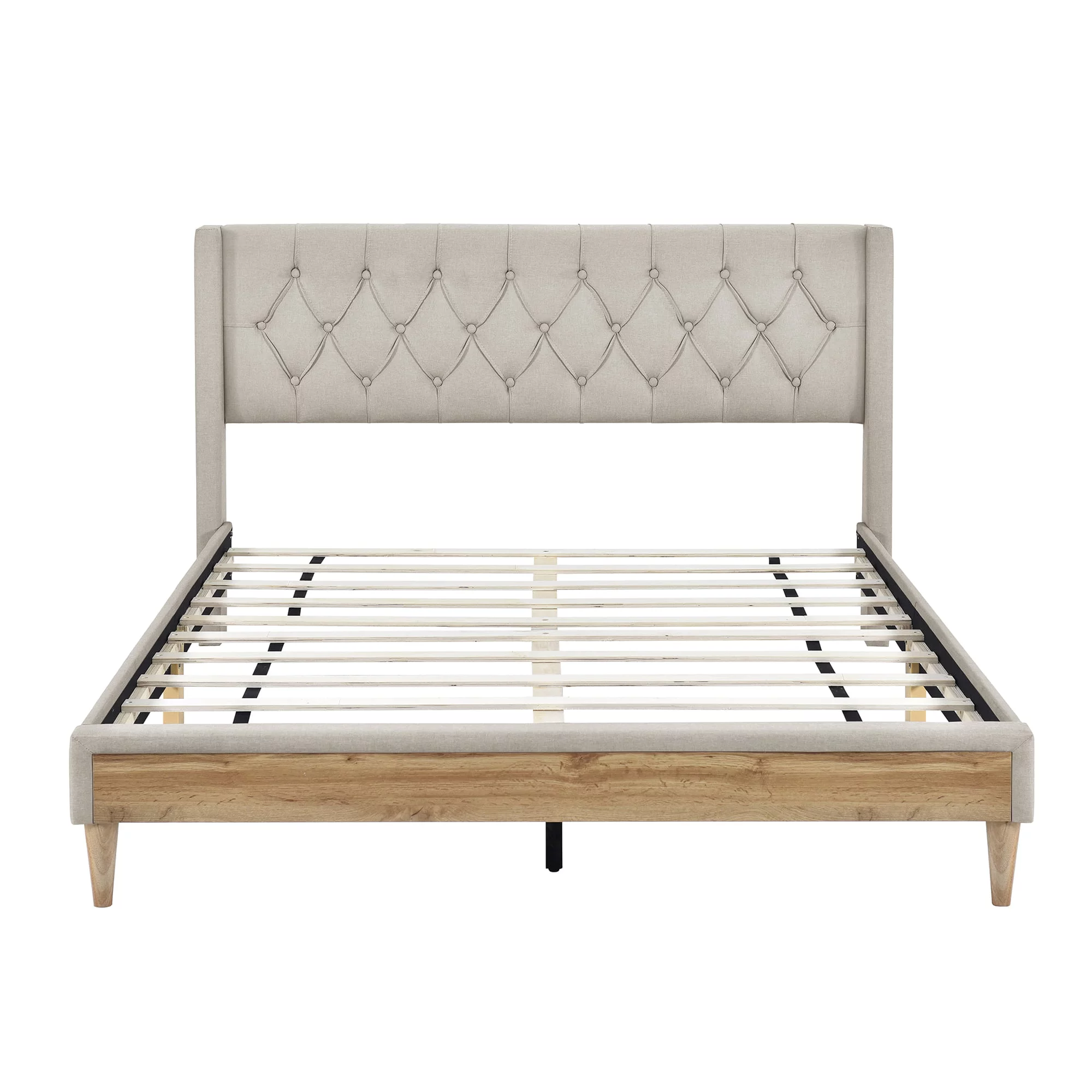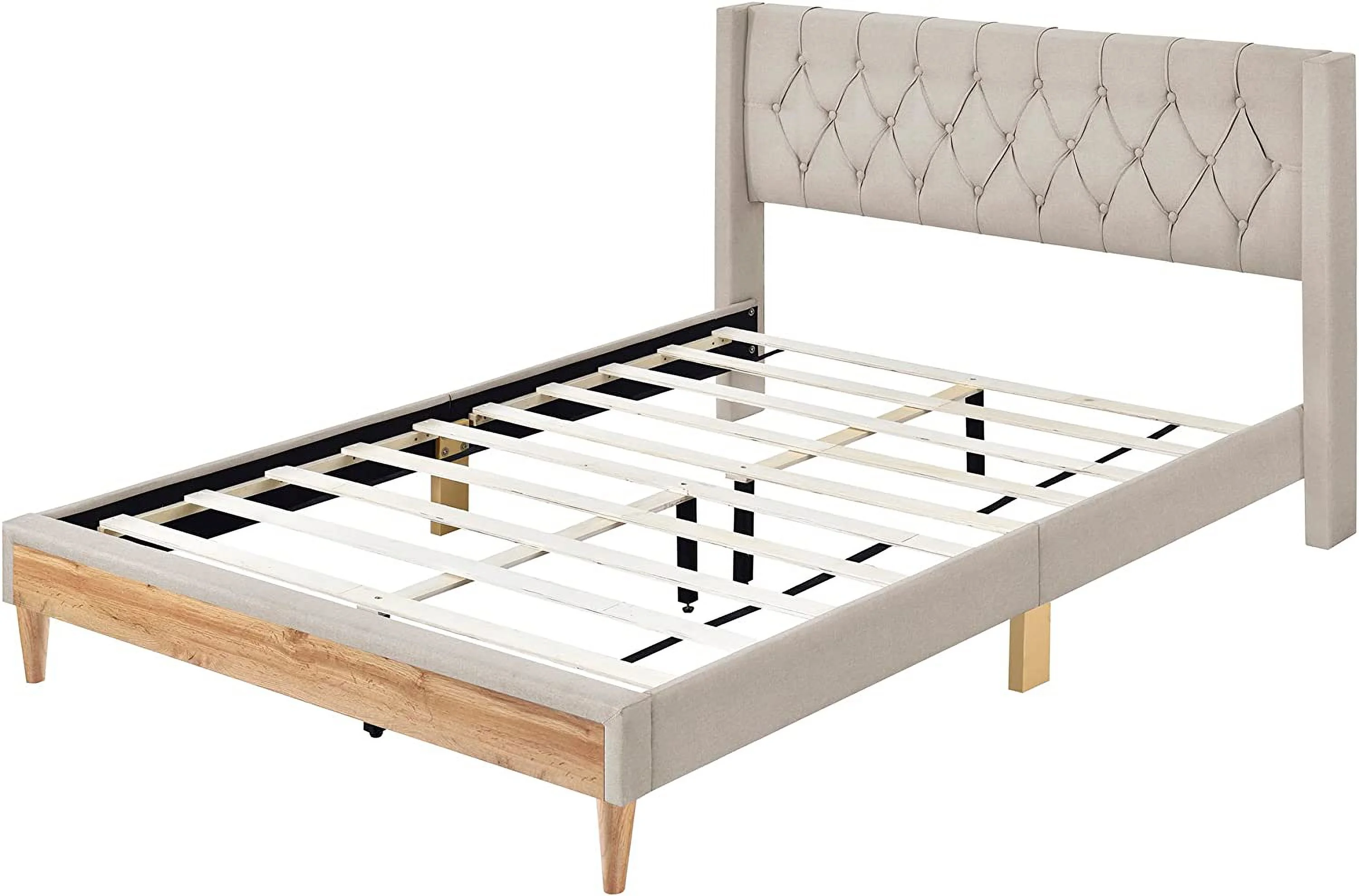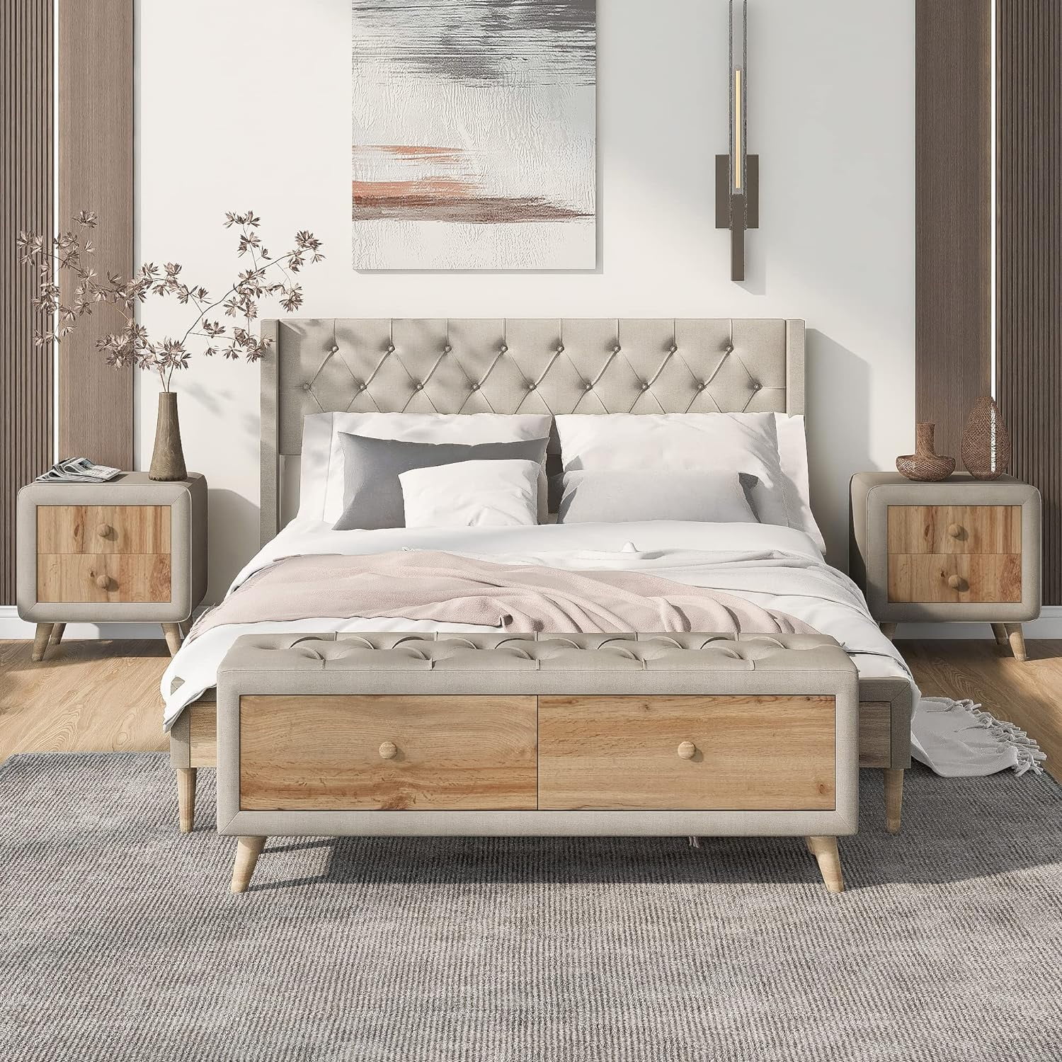 CoSoTower 4-Pieces Bedroom Sets Queen Size Upholstered Platform Bed With Two Nightstands And Storage Bench-Beige