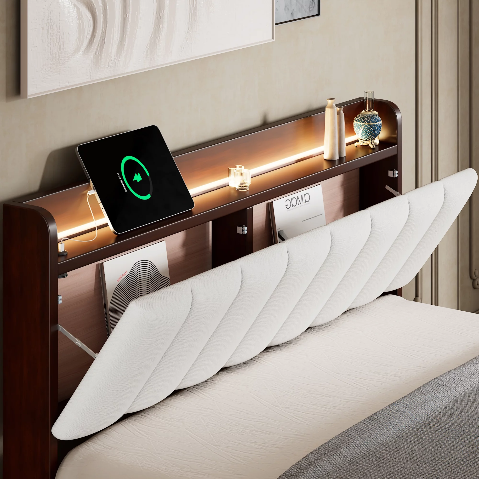 Contemporary Walnut Wood Queen Bed Storage 5PCS Set Acme Elettra 24200Q-S-5pcs