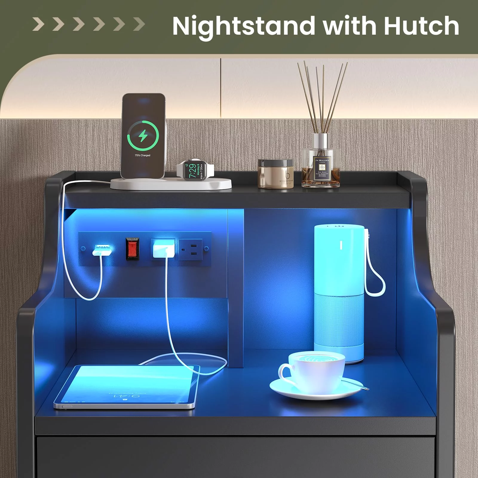 Home Square 2-Piece Set with Wooden Queen Platform Storage Bed & 1 Nightstand