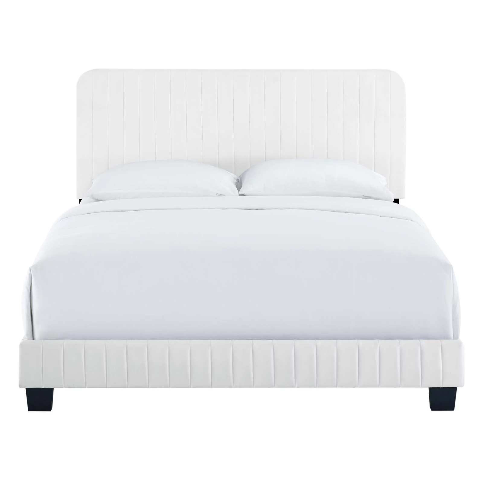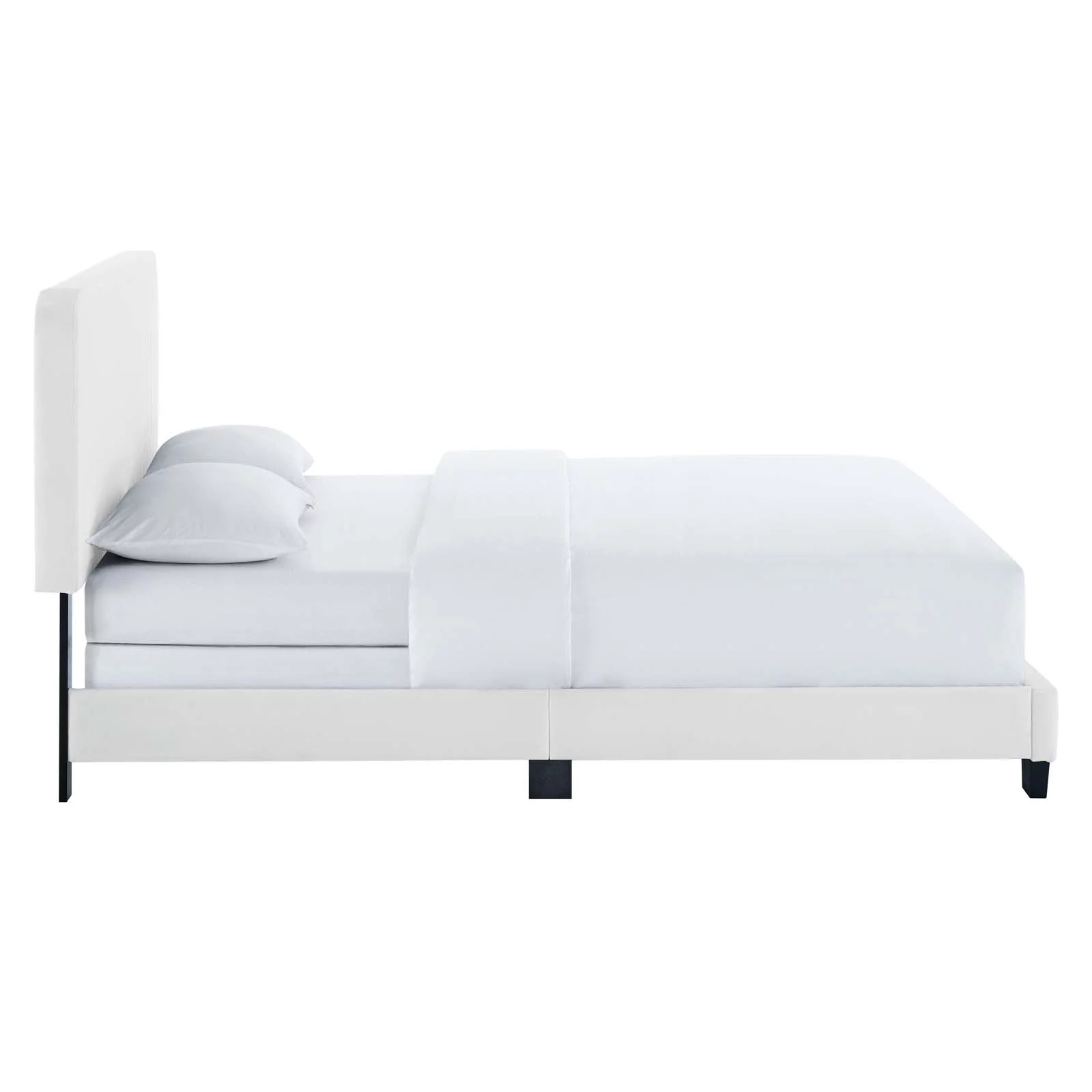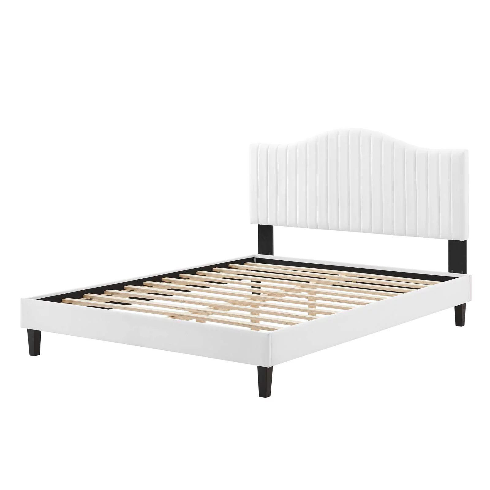 Tufted Platform Bed Frame, Twin Size, Velvet, White, Modern Contemporary Urban Design, Bedroom Master Guest Suite