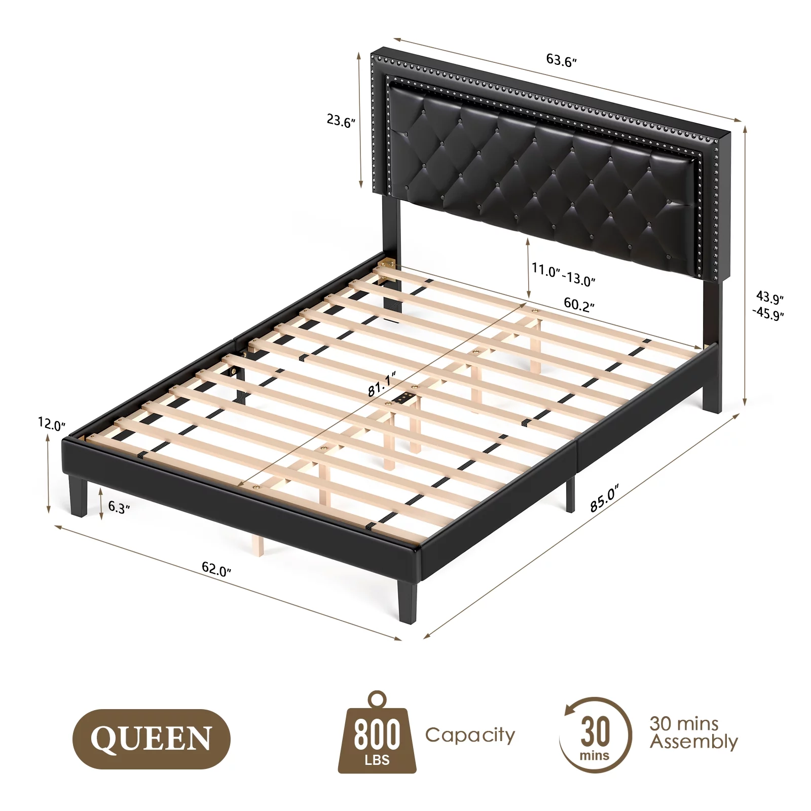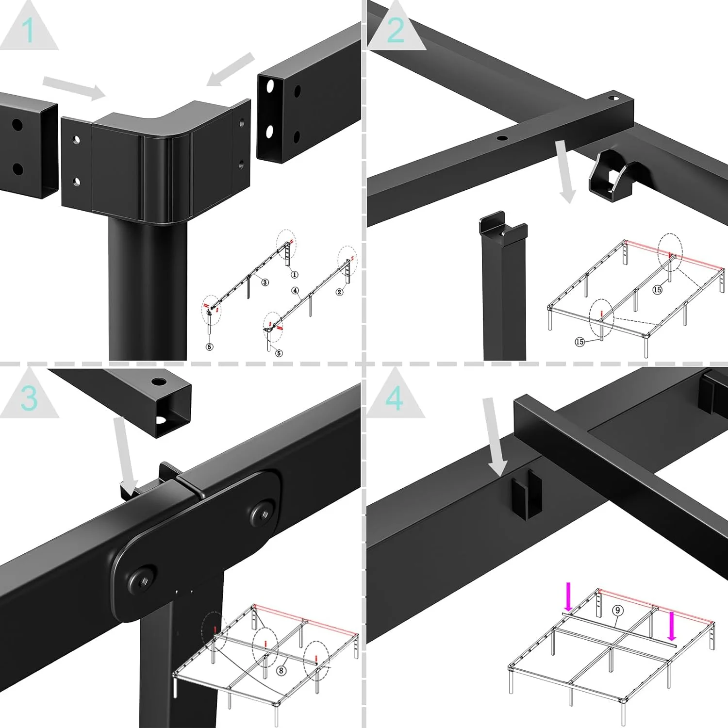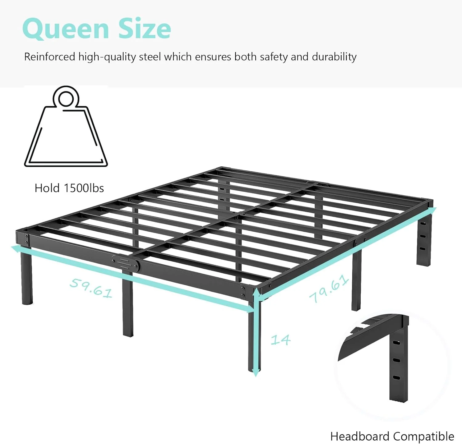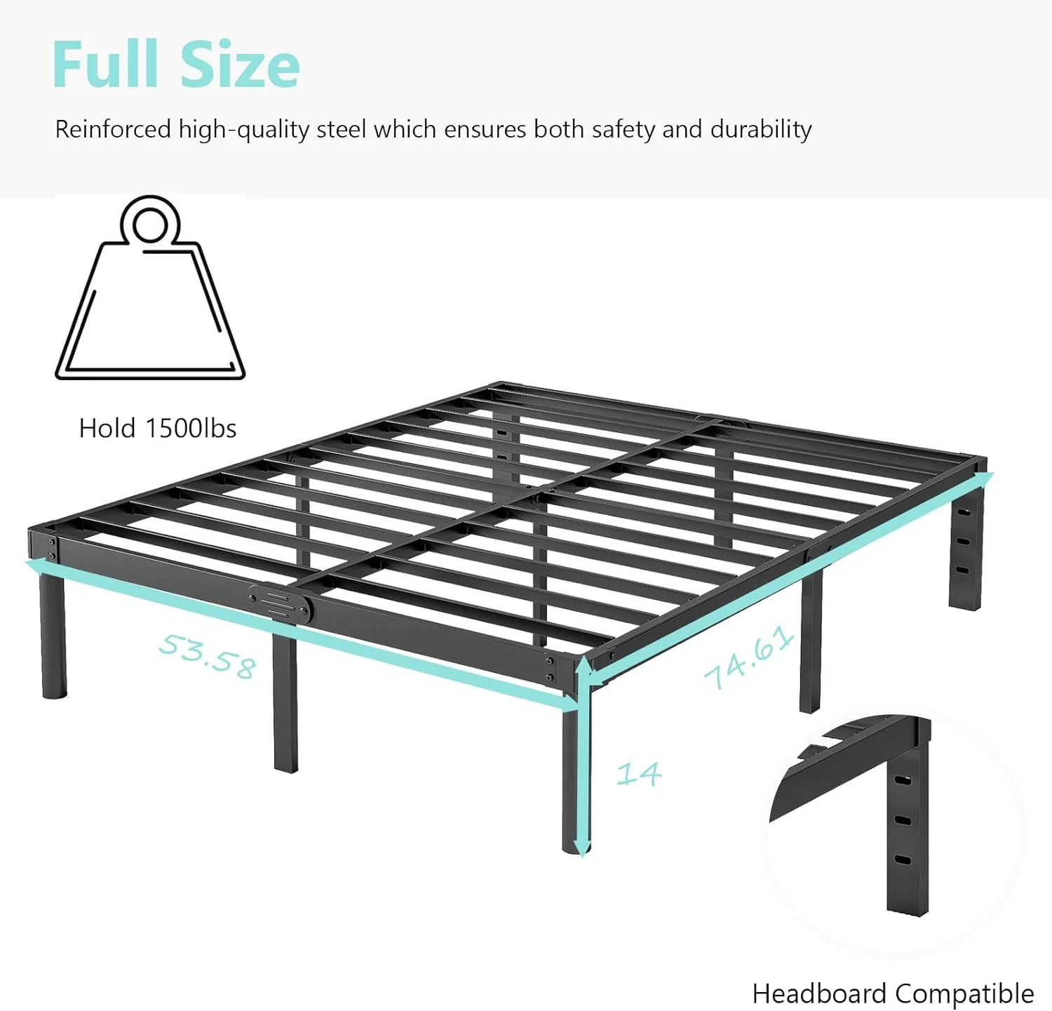 Full Size Bed Frame 14 Inch Metal Bed Frames Full No Box Spring Needed Heavy Duty Easy Assembly Noise Free 4003-14B