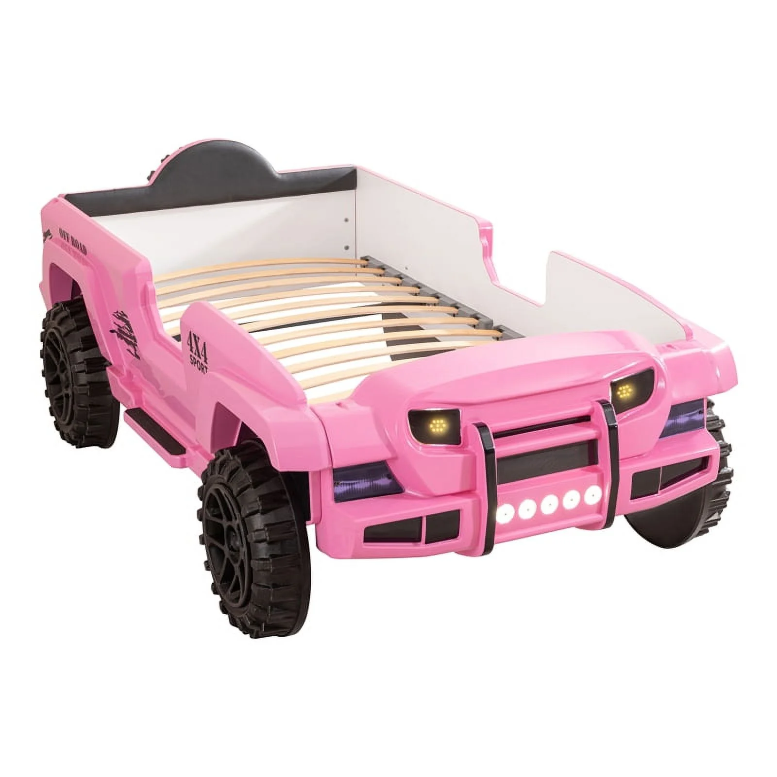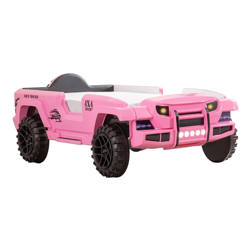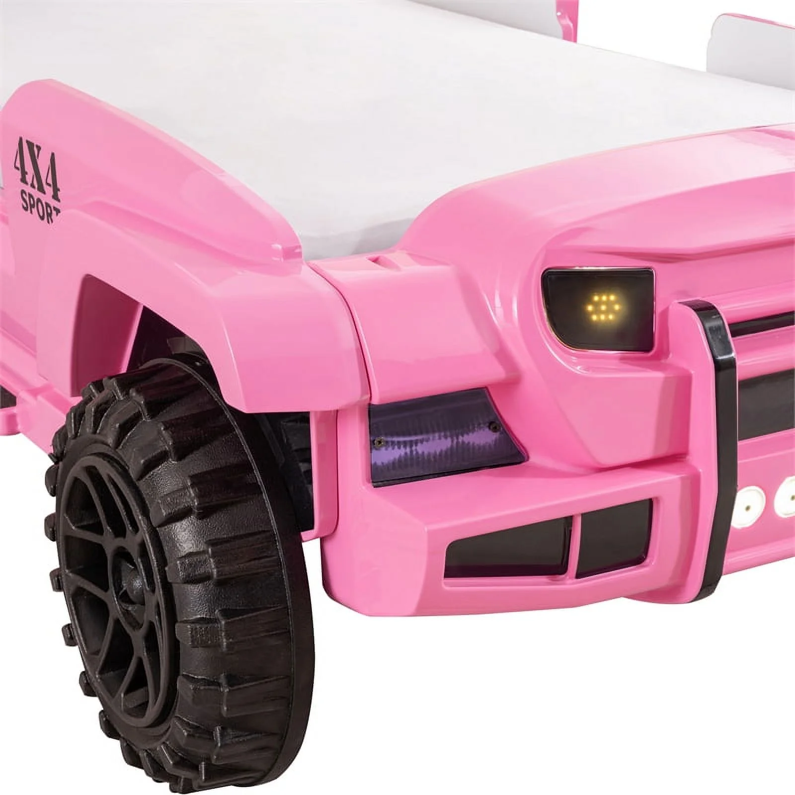 Furniture of America Abest Plastic Off Road Race Car Twin Kid's Bed in Pink