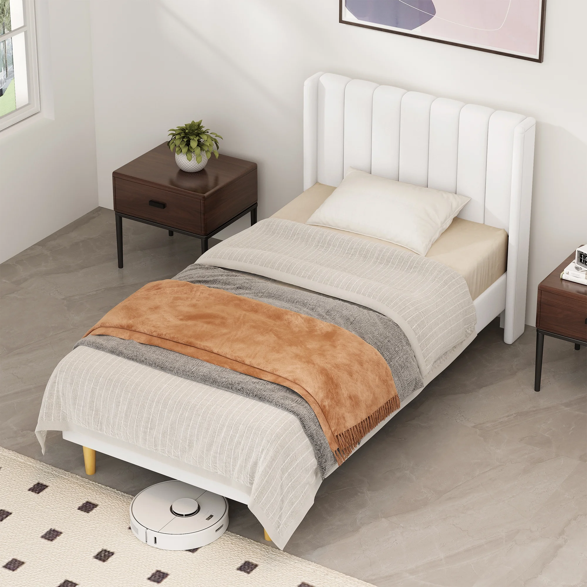Zanmintaobo Upholstered Platform Bed Frame with Tufted Wingback, Twin Size, Cream