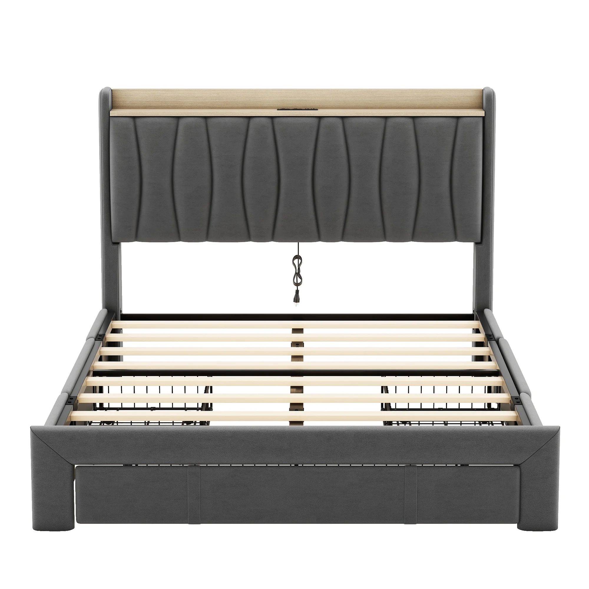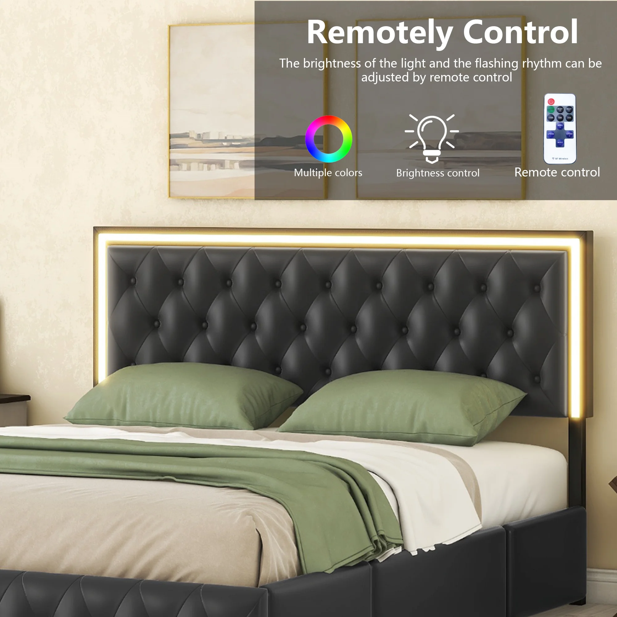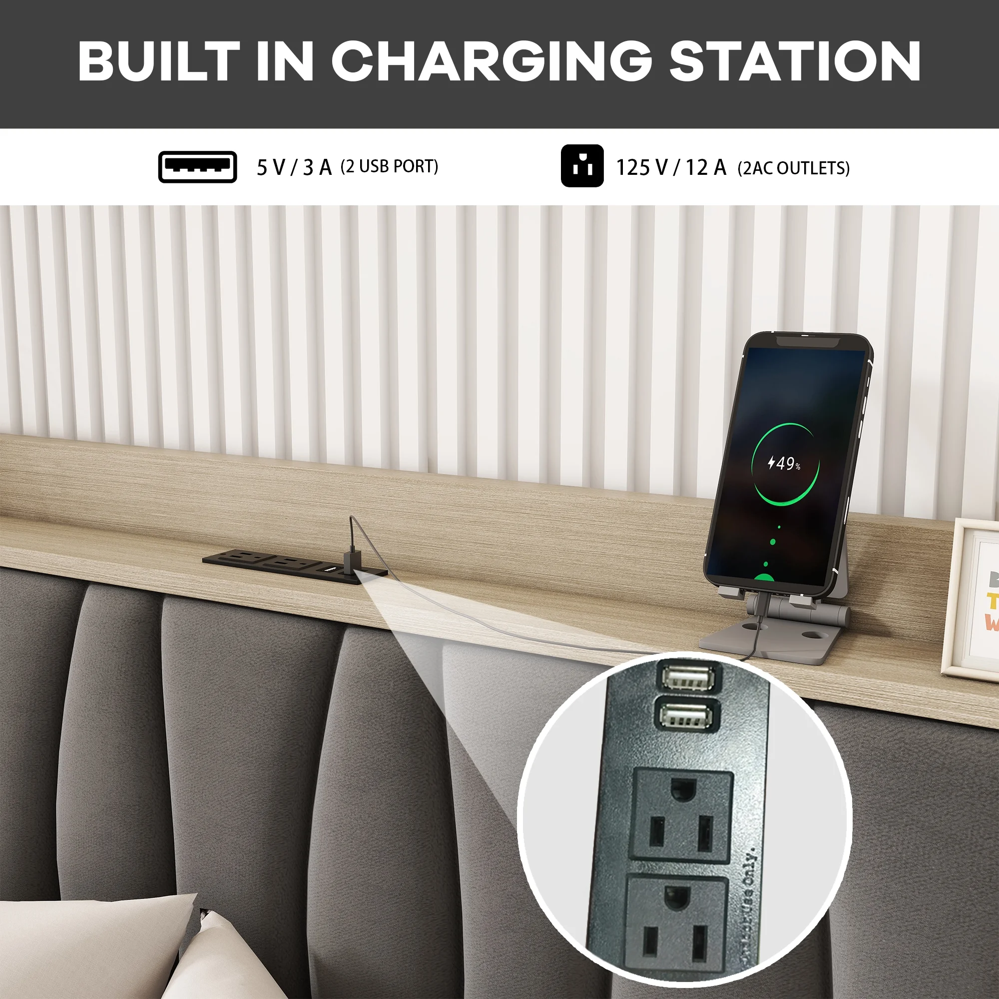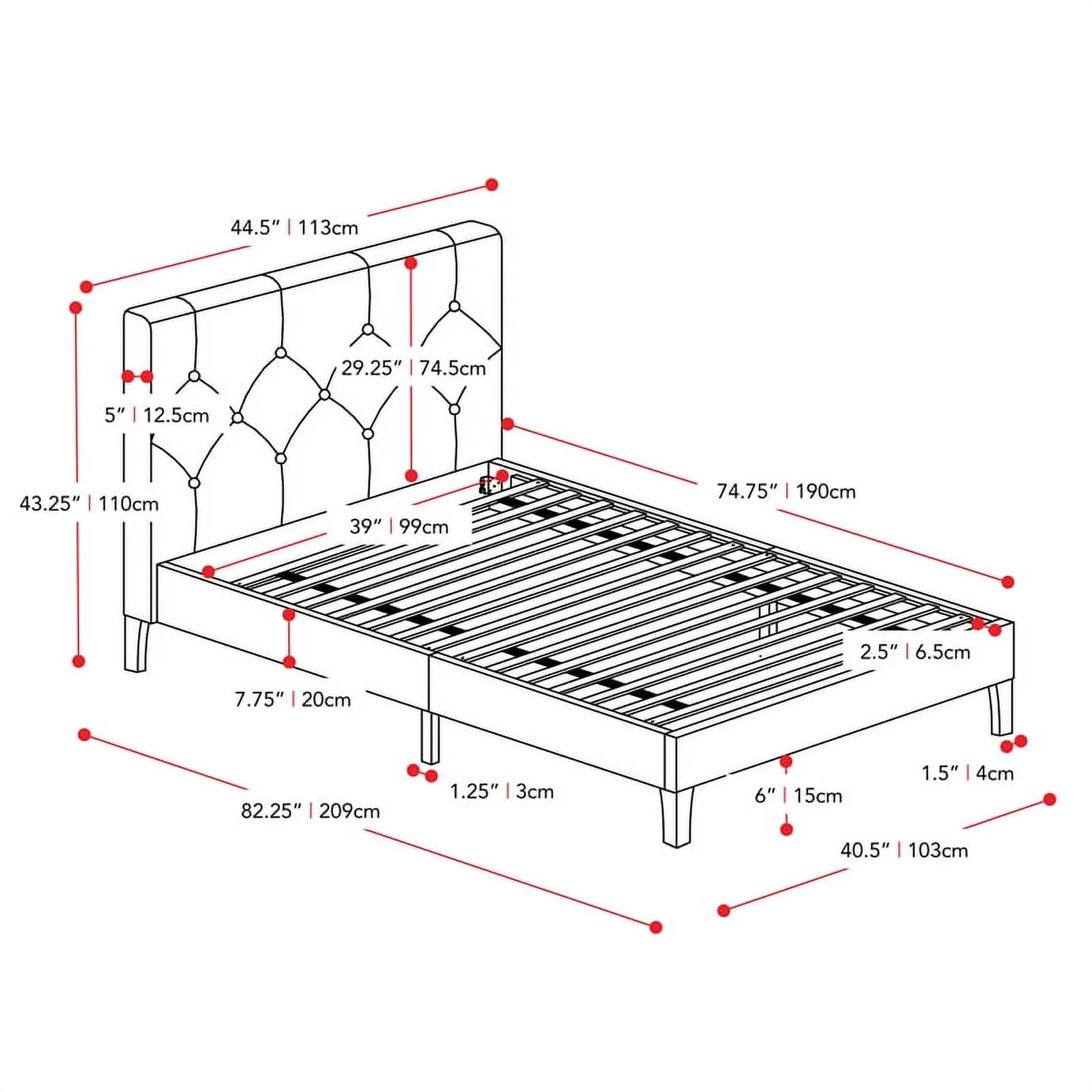 Atlin Designs Button-Tufted Headboard Fabric Twin/Single Bed Frame in Dark Gray